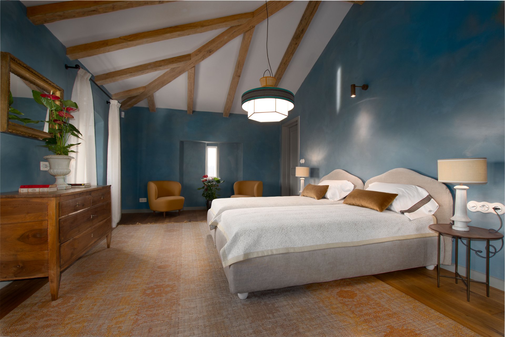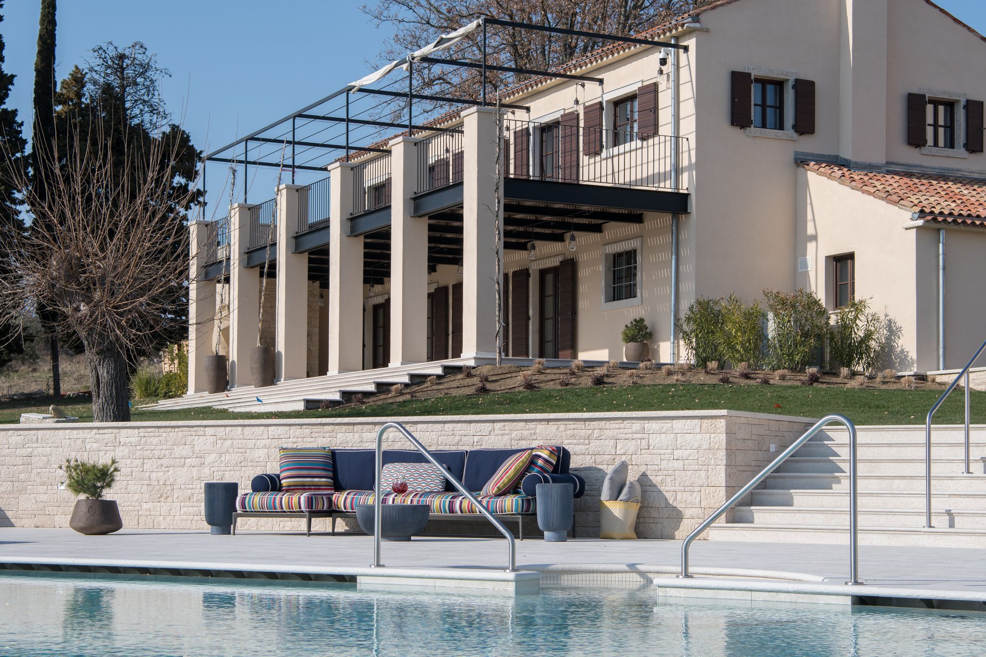 Located in the yard, guests can enjoy an outdoor heated pool with hydromassage and secluded among the many gardens. Summer terrace offers an outdoor covered fireplace, cocktail bar, and dining table for 20 guests.
