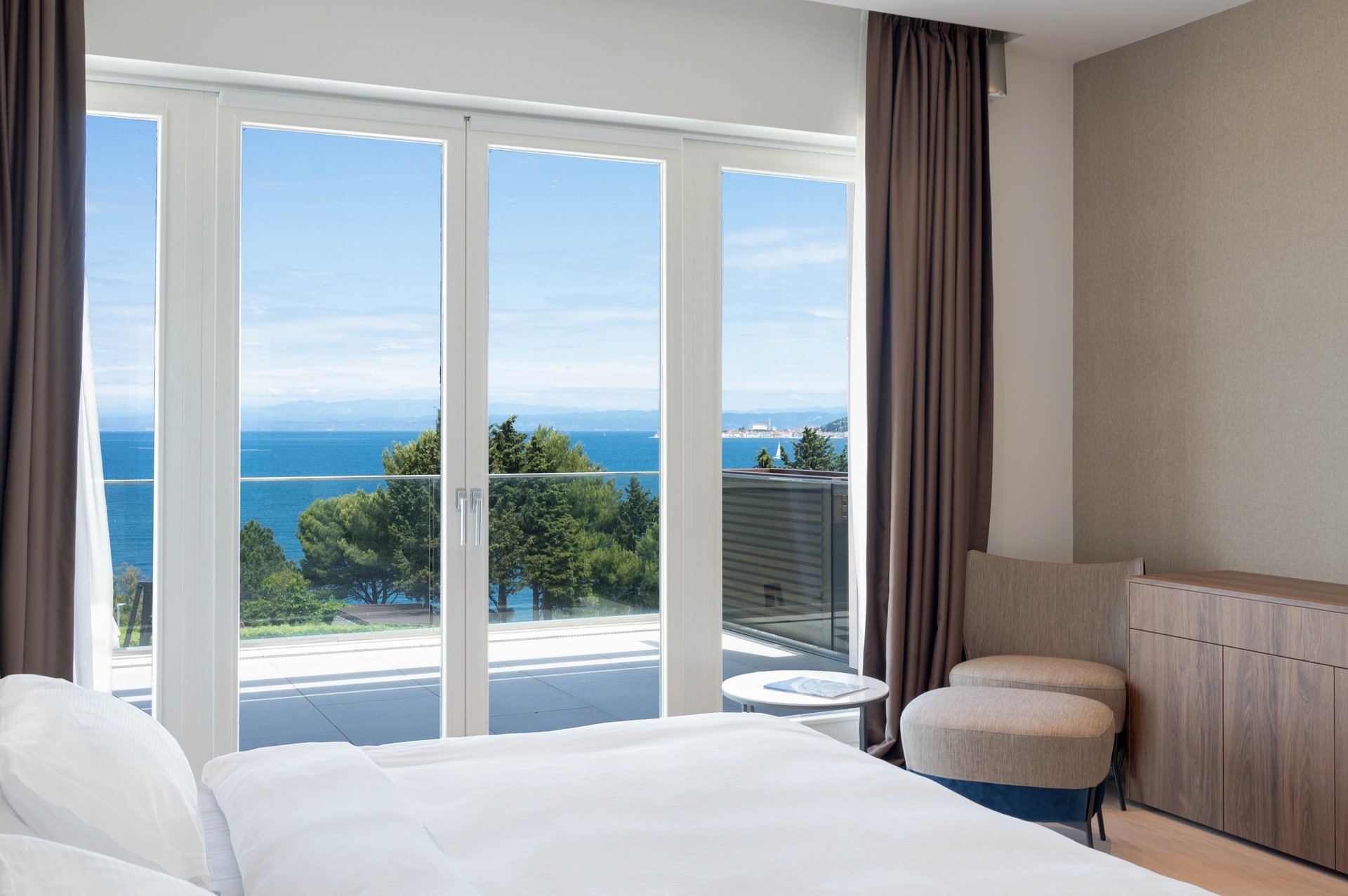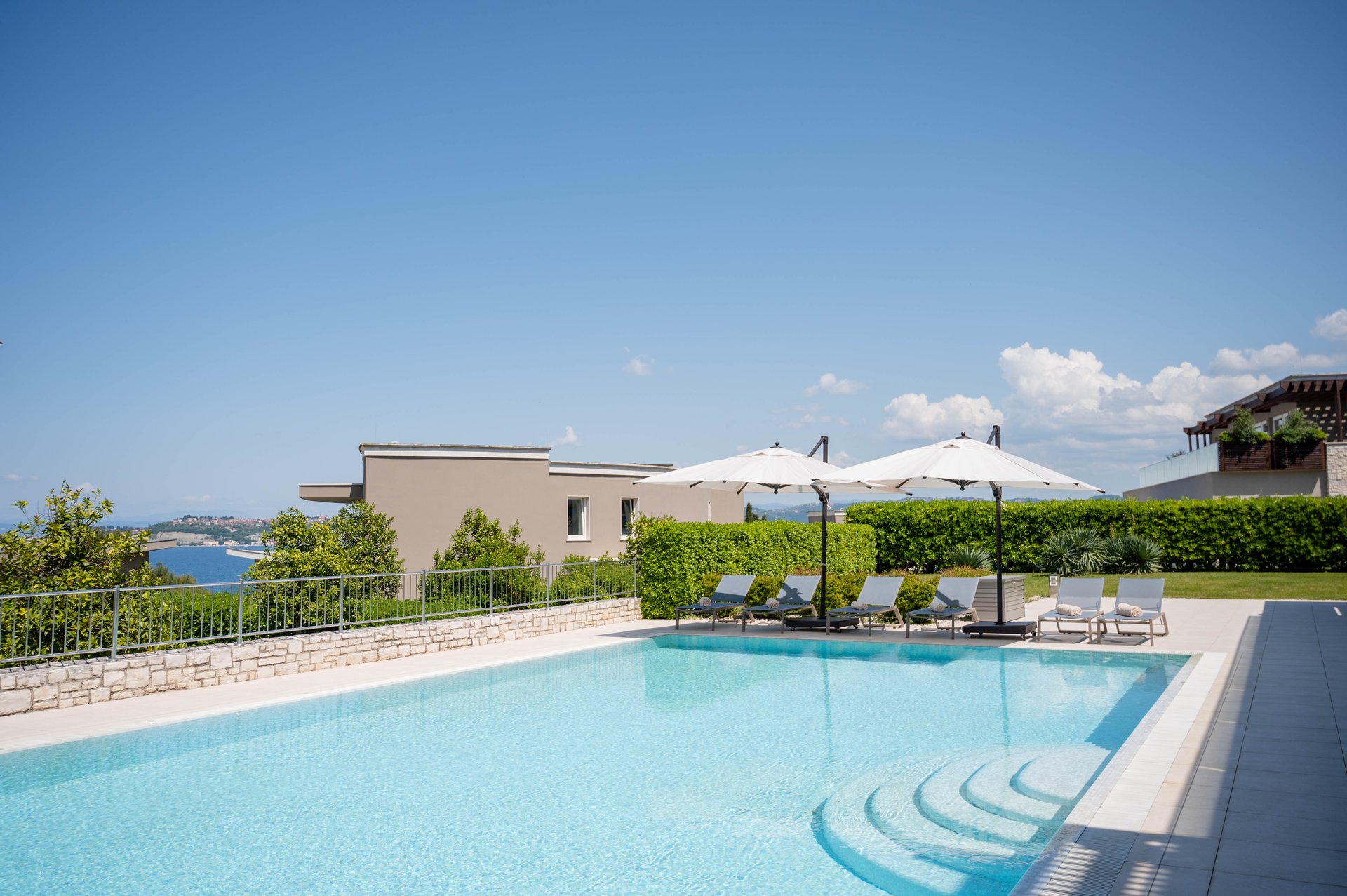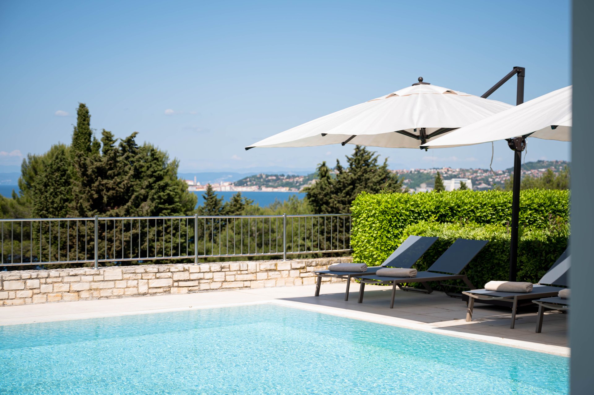 The Grand Villa Adriatic Resort A&B are situated within an exclusive, guarded community, offering the utmost privacy and peace of mind. Surrounded by lush vegetation and mature trees, the villas provide a secluded environment where you can enjoy complete seclusion, yet remain just moments away from world-class amenities and services. The panoramic views of the Adriatic Sea, complemented by breathtaking vistas of Portorož and Piran, offer an unparalleled setting for relaxation and reflection. Here, in this serene retreat, privacy and natural beauty seamlessly come together, creating a luxurious sanctuary that promises the ultimate escape for those who seek peace, elegance, and an extraordinary lifestyle.