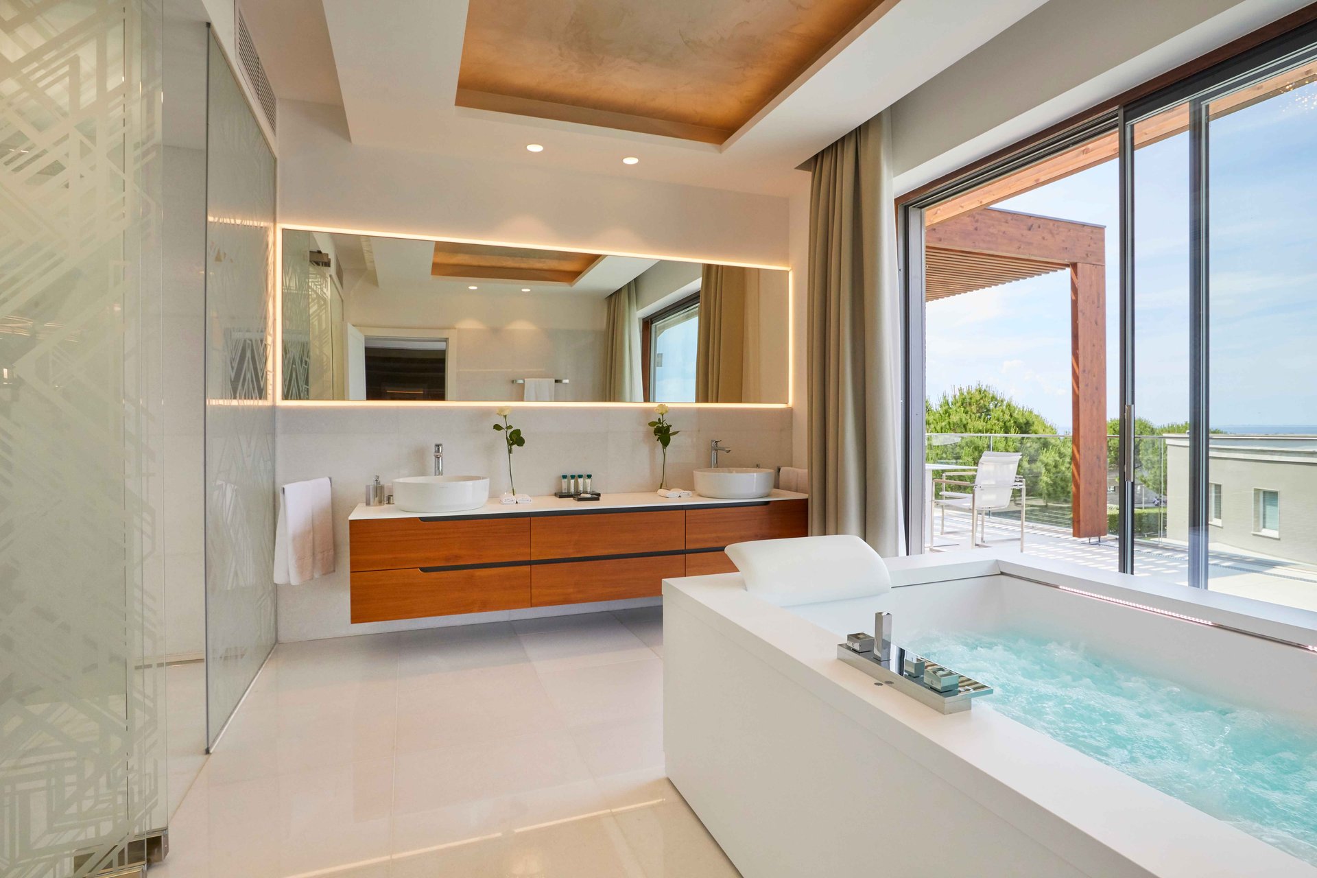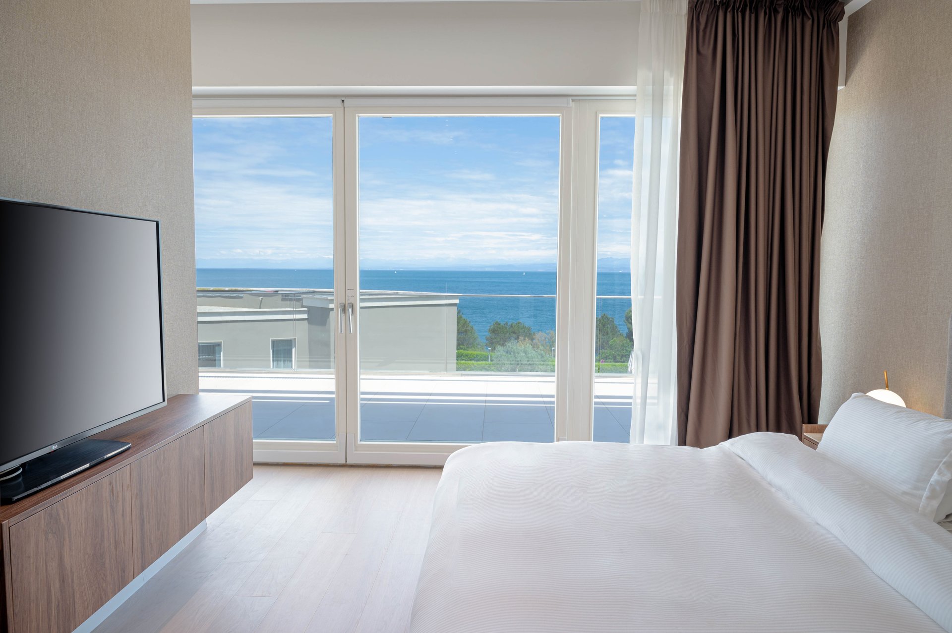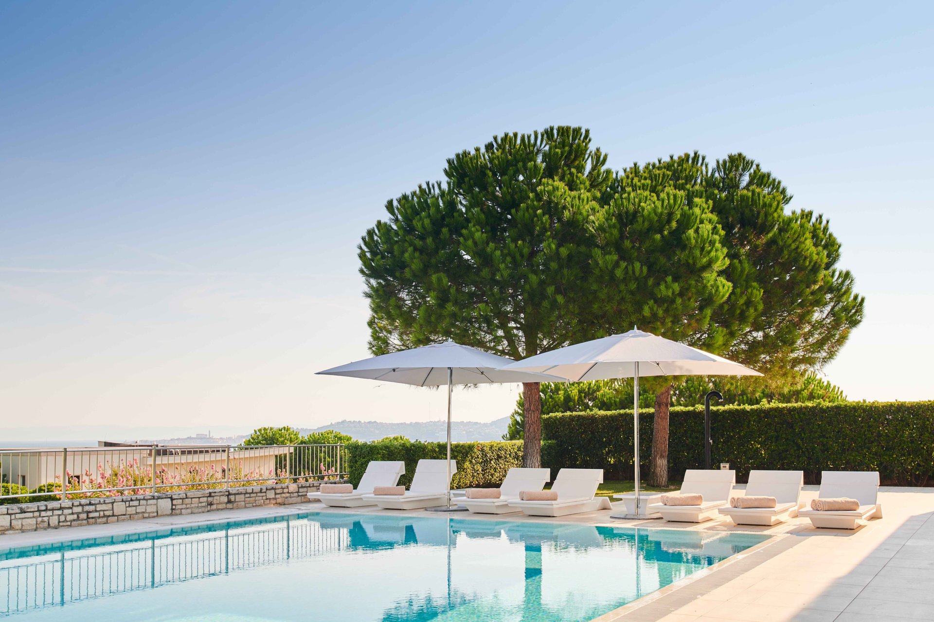 The Grand Villa Adriatic Resort A&B are situated within an exclusive, guarded community, offering the utmost privacy and peace of mind. Surrounded by lush vegetation and mature trees, the villas provide a secluded environment where you can enjoy complete seclusion, yet remain just moments away from world-class amenities and services. The panoramic views of the Adriatic Sea, complemented by breathtaking vistas of Portorož and Piran, offer an unparalleled setting for relaxation and reflection. Here, in this serene retreat, privacy and natural beauty seamlessly come together, creating a luxurious sanctuary that promises the ultimate escape for those who seek peace, elegance, and an extraordinary lifestyle.