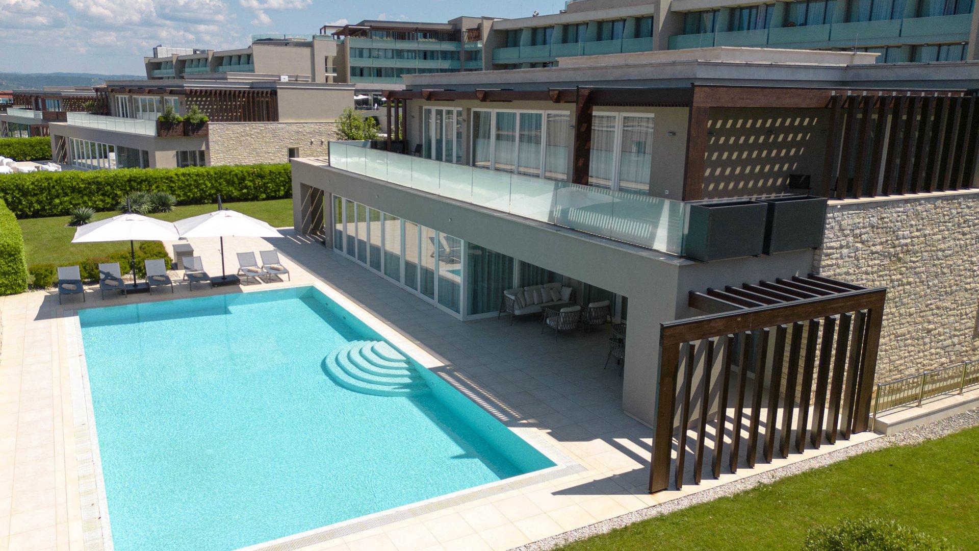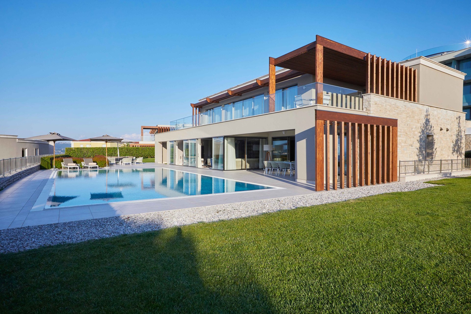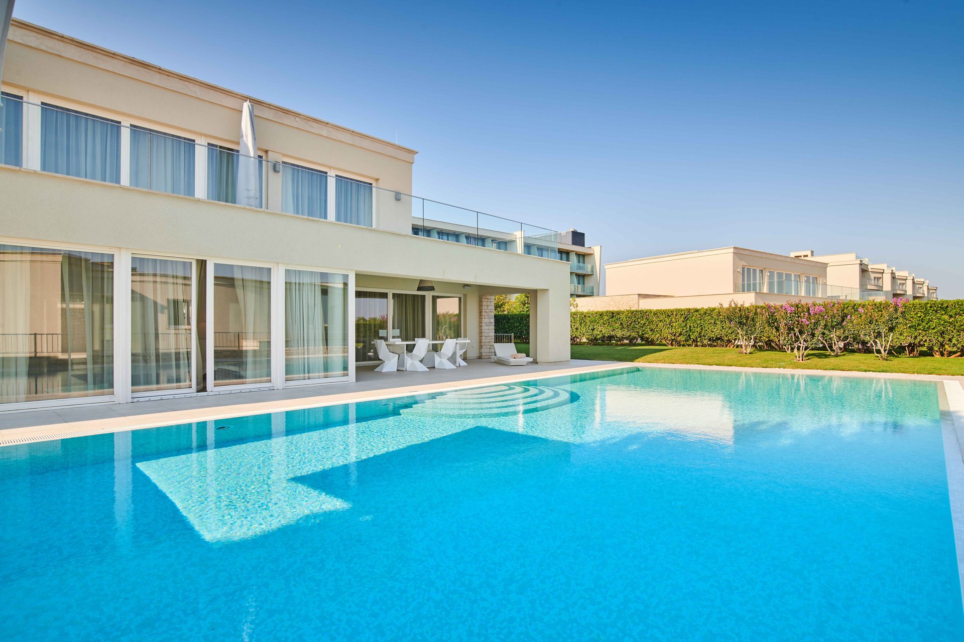 Nestled within this enchanting region, the Grand Villa Adriatic Resort A&B provide a warm and luxurious welcome. Located in an exclusive and peaceful community, these villas, with a size of approximately 800 sq m, are conveniently situated closest to the hotel, offering the perfect sanctuary to unwind and enjoy complete privacy, all while being just moments away from the best that Istria has to offer. Whether you seek relaxation, adventure, or a blend of both, the Grand Villa Adriatic Resort A&B offer the ideal setting for your next unforgettable experience.