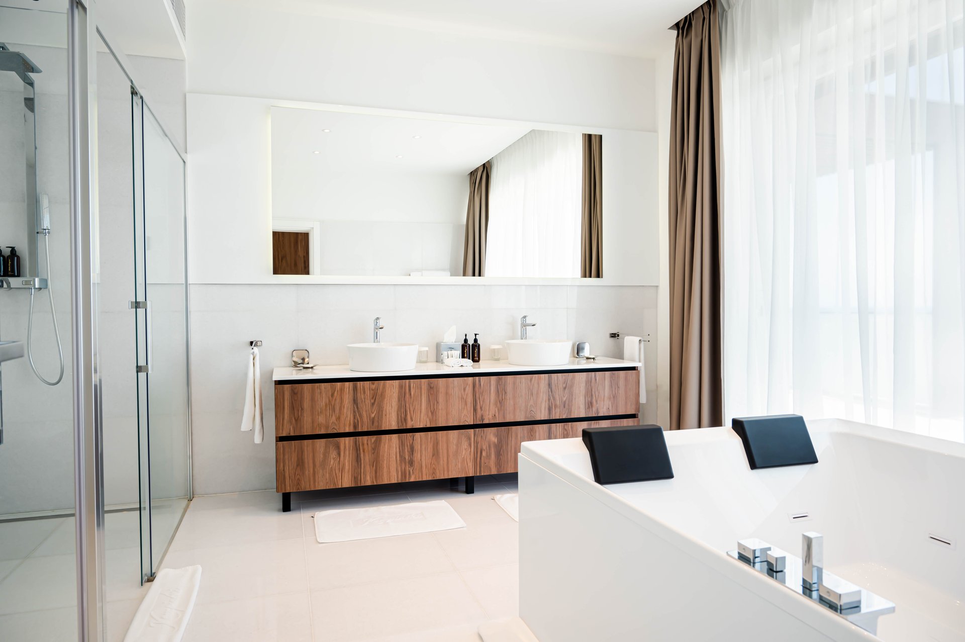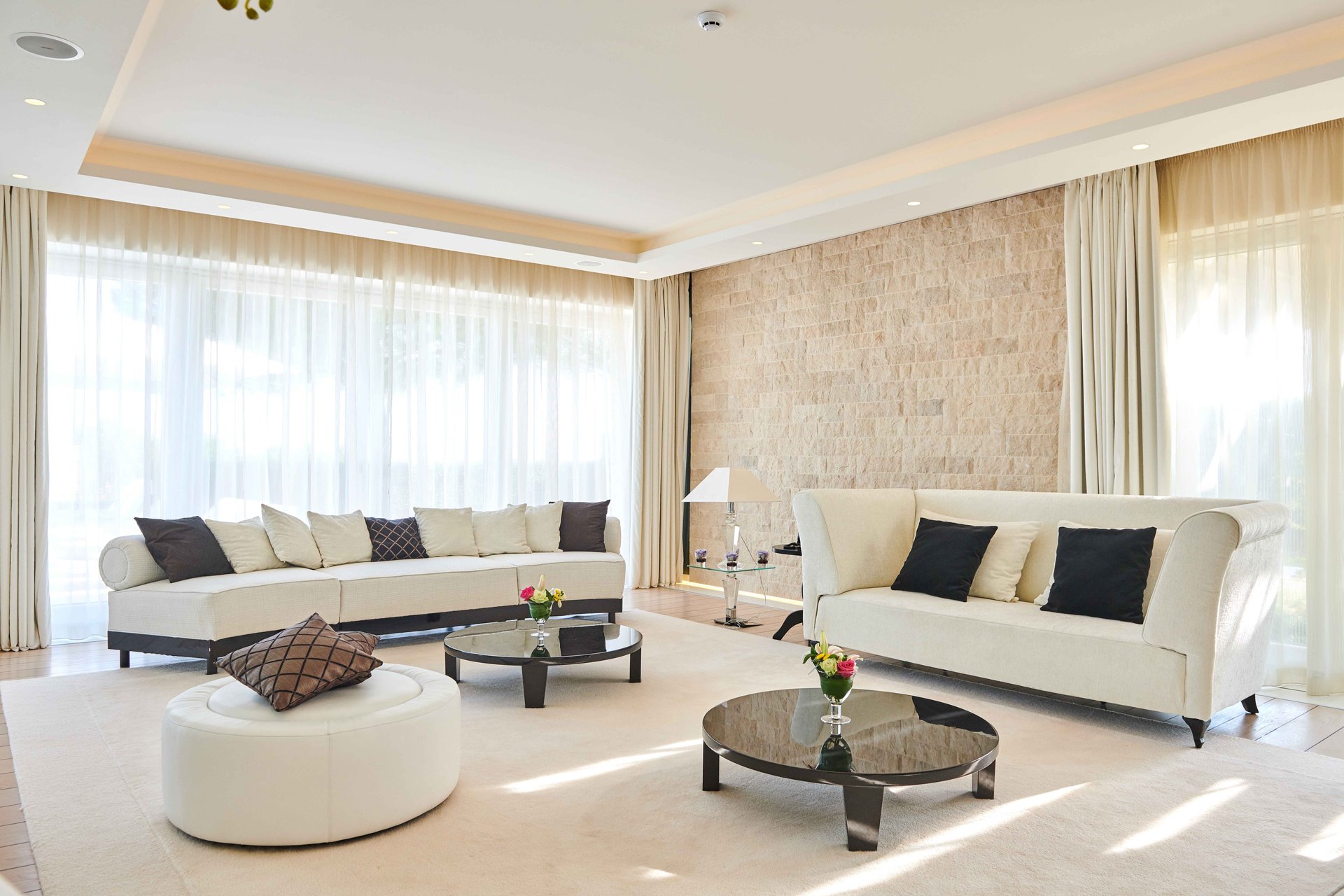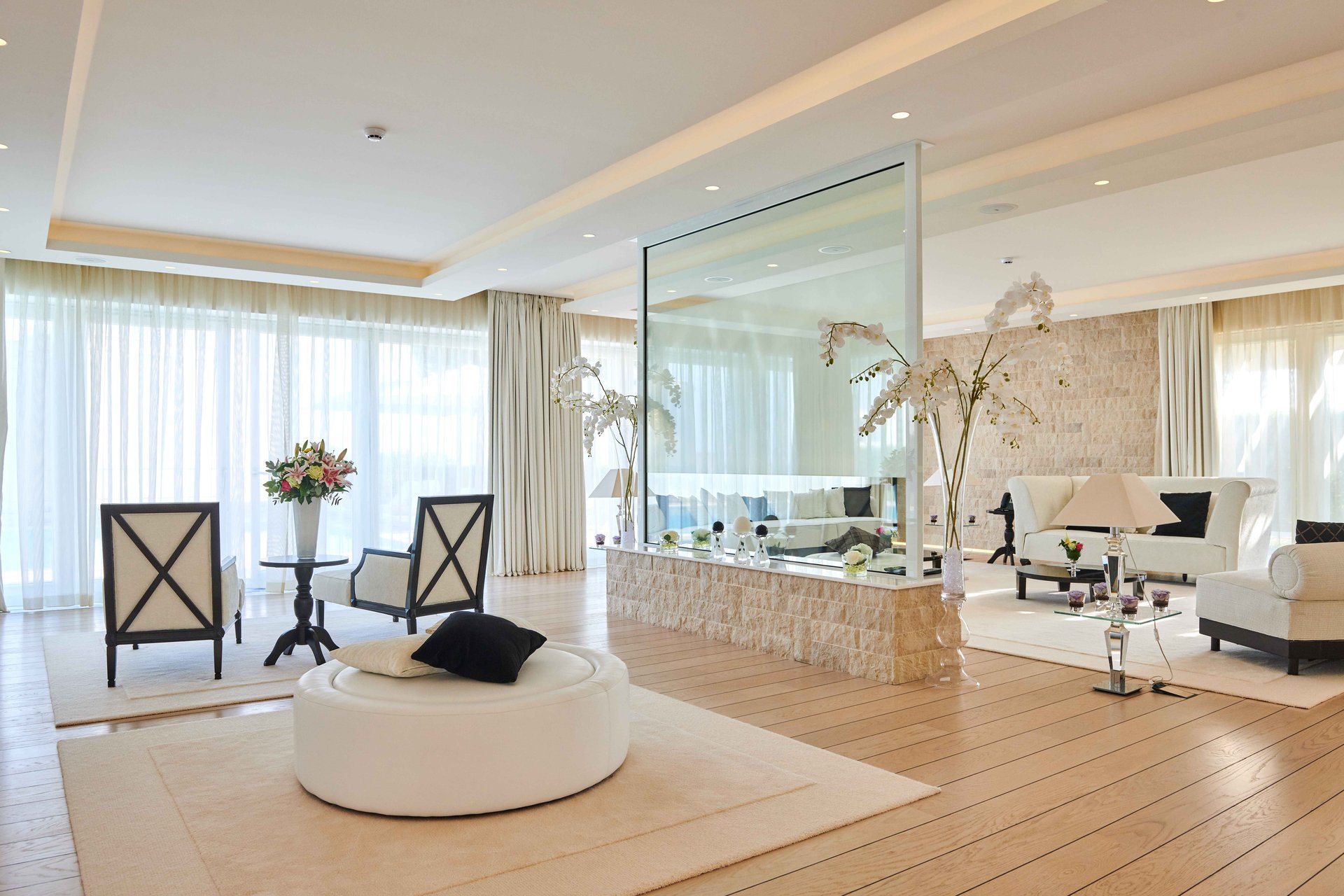 Each villa presents three exquisitely designed bedrooms, each with its own terrace and stunning views of the Adriatic coastline, offering a serene and luxurious retreat, perfect for relaxation after a day of exploring or unwinding in privacy. Additionally, the villa includes two staff apartments, each featuring a bedroom and bathroom, ensuring your stay is supported by the highest level of comfort and convenience.