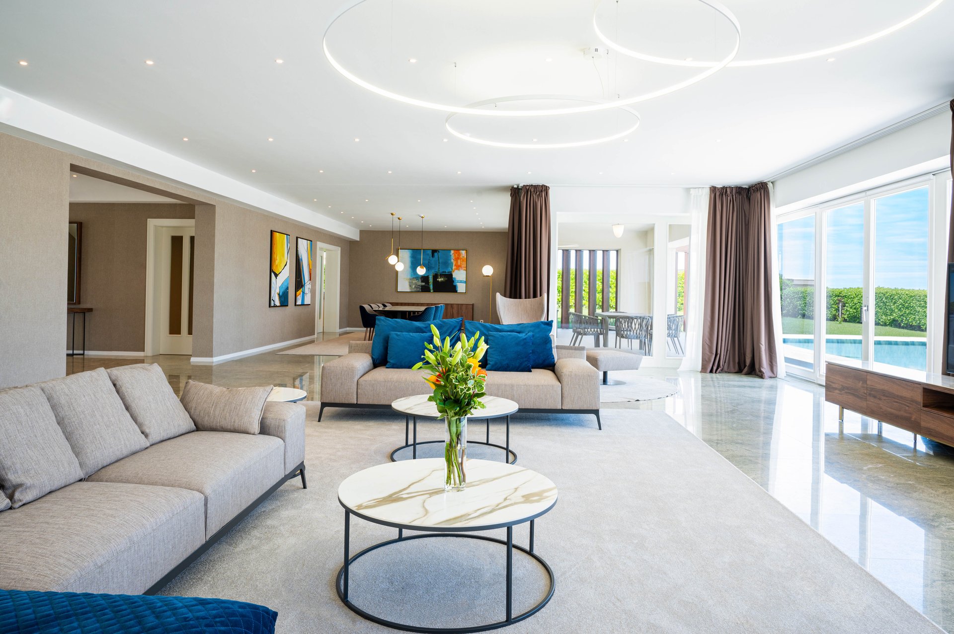 The expansive interior layout is thoughtfully crafted, achieving a perfect balance between modern sophistication and welcoming warmth. Every moment spent indoors is designed to be as comfortable as it is luxurious, allowing you to fully enjoy the villa’s beautiful surroundings in complete privacy.