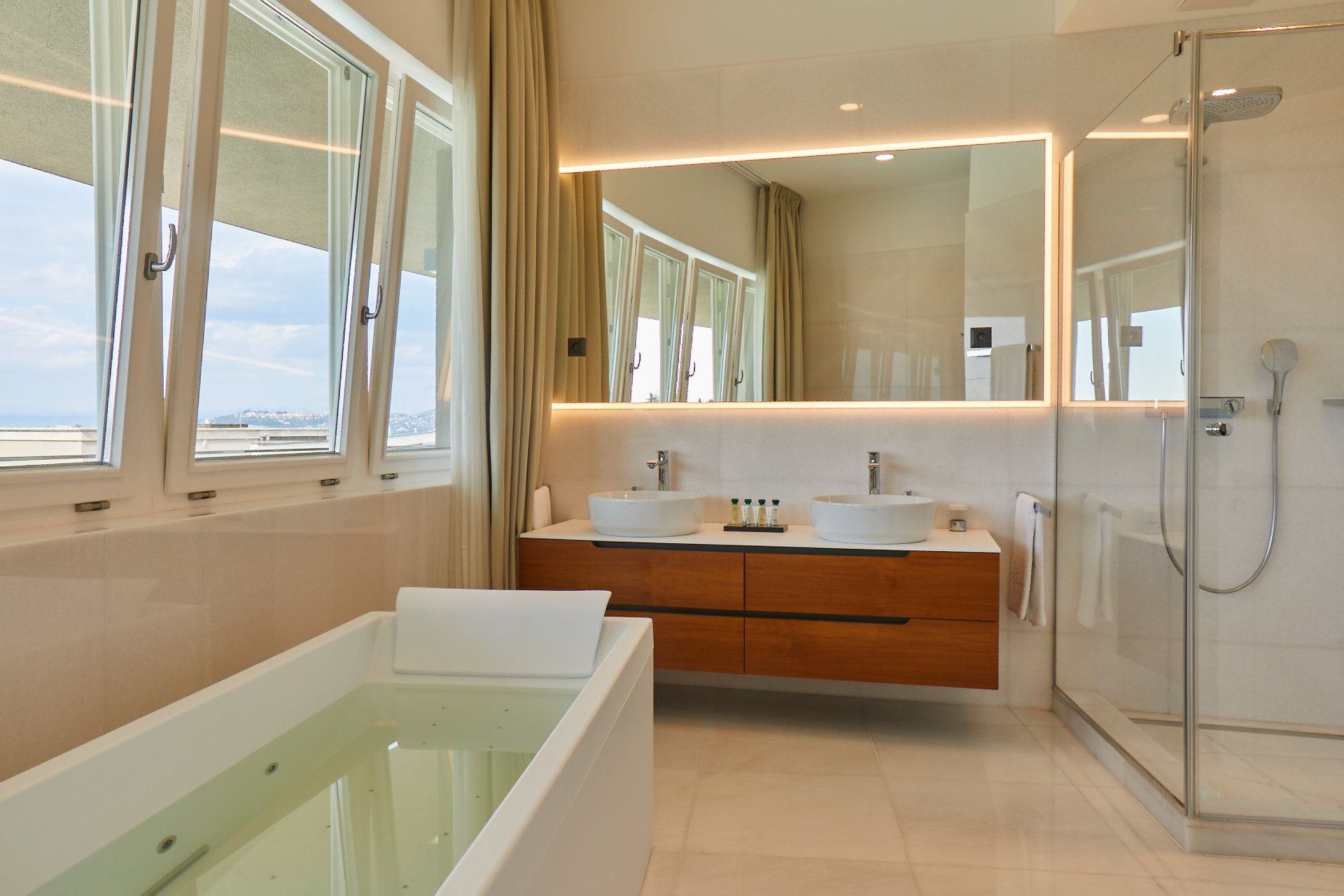 This beautiful villa offers three luxurious bedrooms, each with breathtaking views of the Adriatic coastline and access to private terraces. It’s the perfect place to unwind in peace and privacy. The bedrooms are paired with three spacious ensuite bathrooms, designed with modern touches and high-quality finishes to ensure your comfort and relaxation.