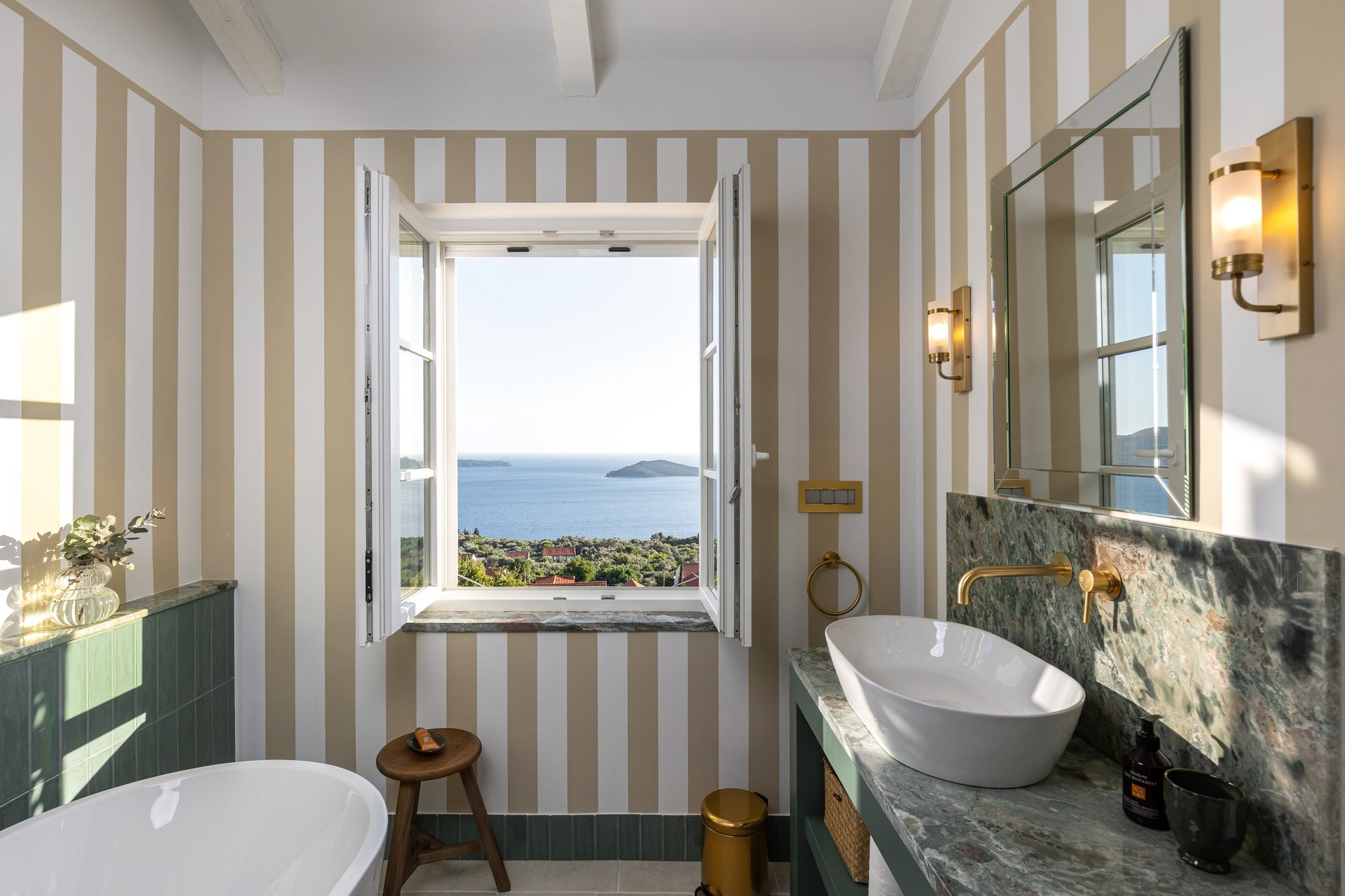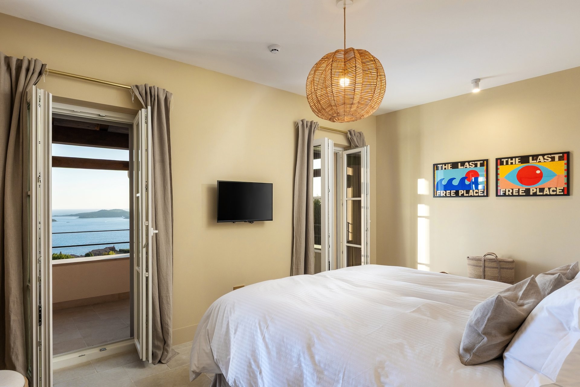 Designed to accommodate up to eight guests, the villa offers four beautifully appointed king-size bedrooms, each with its own elegant en-suite bathroom and direct access to a terrace overlooking the sea. With a total of six bathrooms, including two additional guest toilets, comfort and privacy are guaranteed for every guest.
