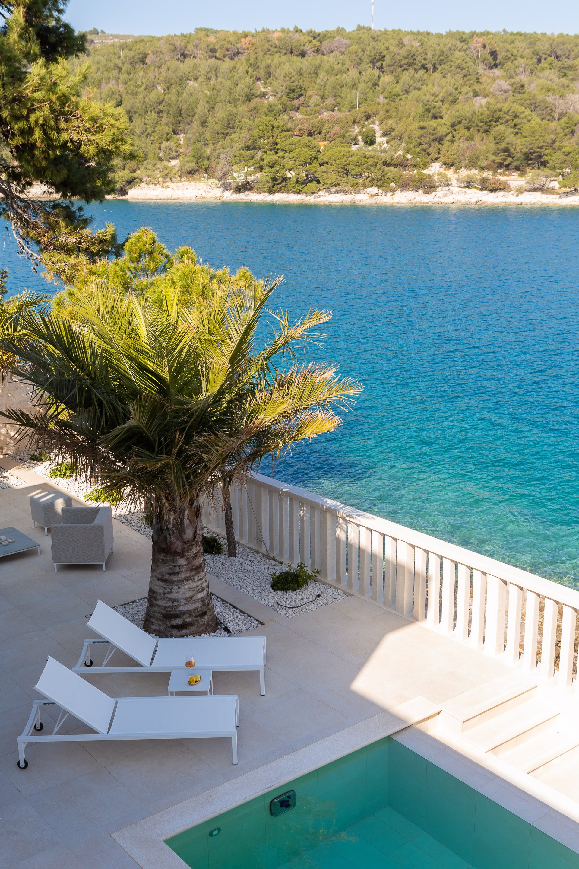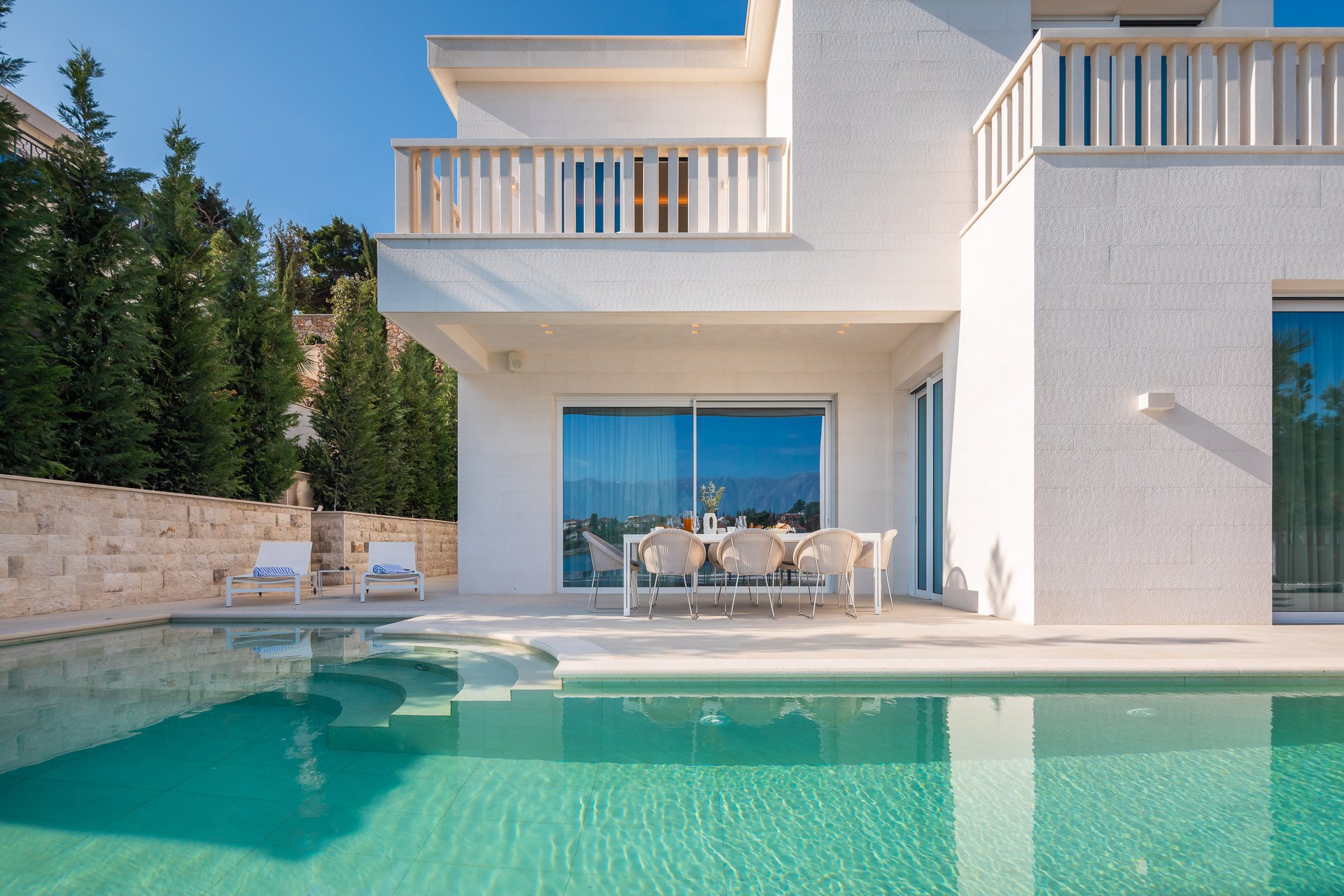 The layout is perfect for families or large groups. Designed with great attention to detail by a Croatian architect, Villa Azula combines local materials, like the famous Brač stone and top-quality furniture from all over the world in order to create a nice ambience for its guests. The generous use of glass and sliding window doors ensure the breath-taking sea view is preserved in every room.