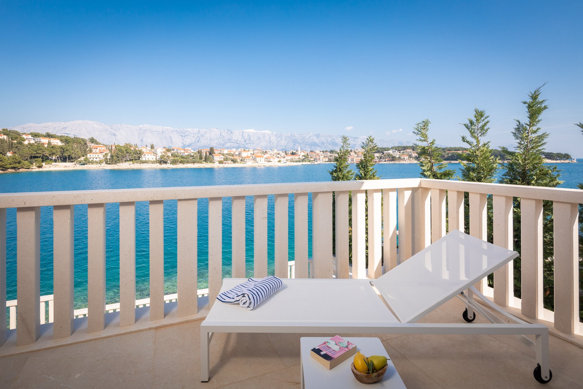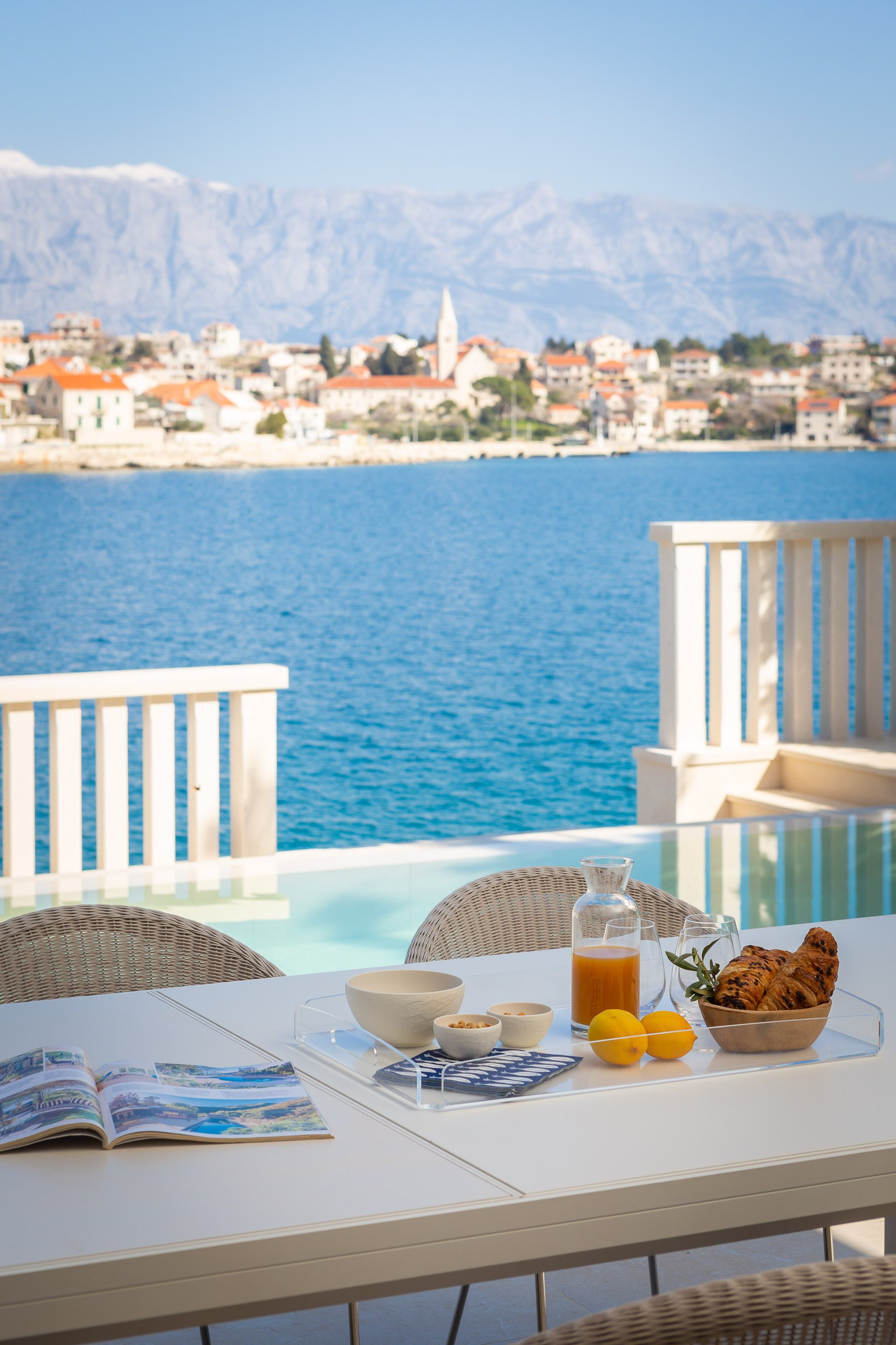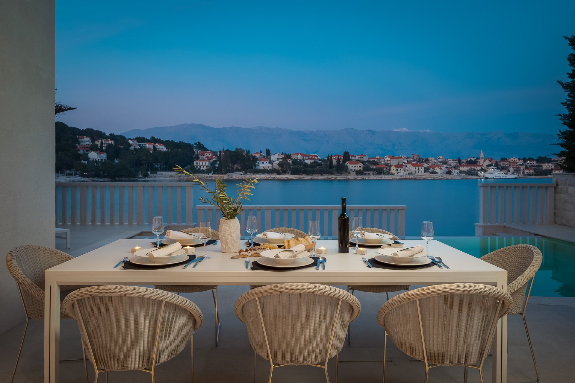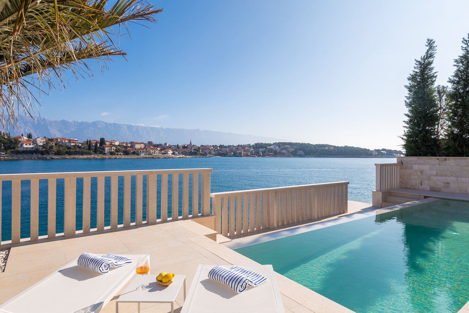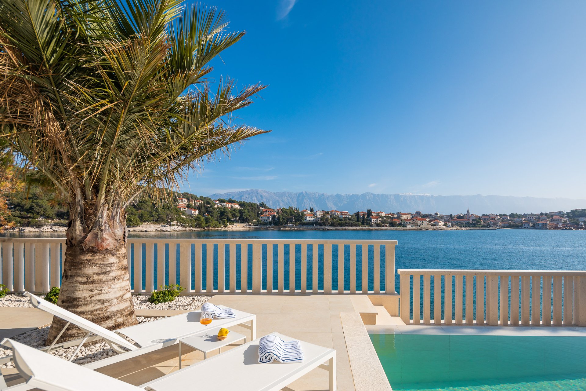 This newly built modern waterfront villa with a living area of 370 square meters offers stupendous scenery of the traditional fishing village of Sumartin.