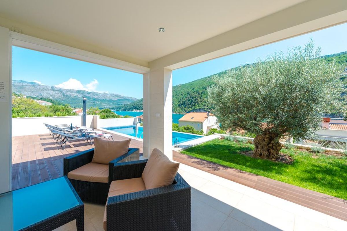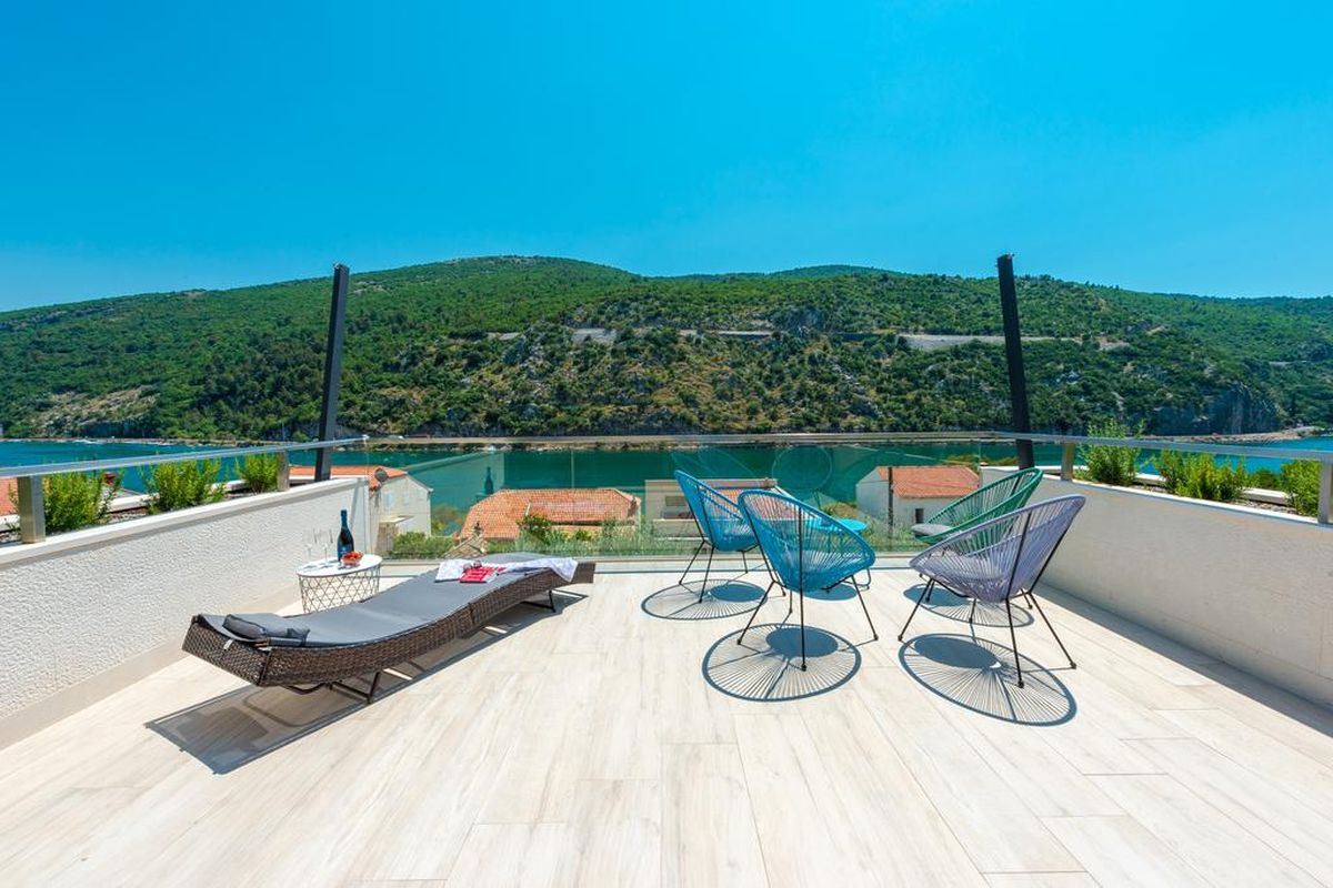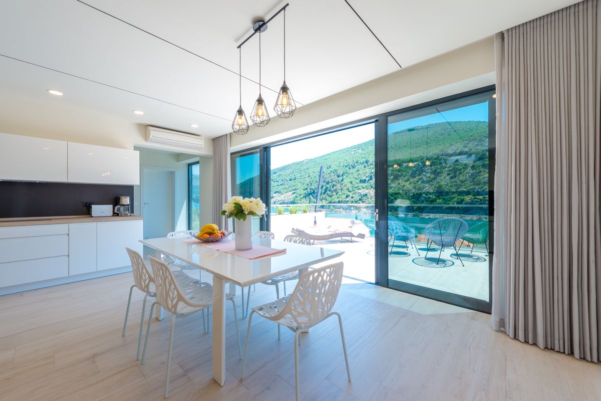 is a modern villa built in 2017. It is placed in South Croatia in a beautiful part of Dubrovnik - Mokošica, where the river Ombla flows into the sea. Completely modern decorated with big glass walls with a magnificent sea view.