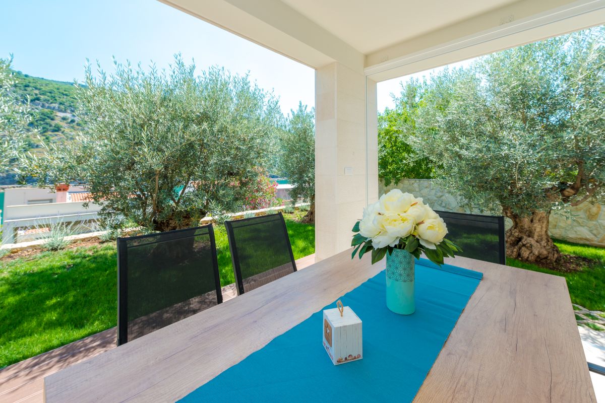 Each room has its own bathroom, TV and air condition. Villa is completely covered by WI-FI. Villa plot is on 950 m2 with a parking place, outdoor summer kitchen, outdoor lounge and dining area, a beautiful lawn with 200 years old Olive trees, a barbecue fireplace and 26 m2 pool.