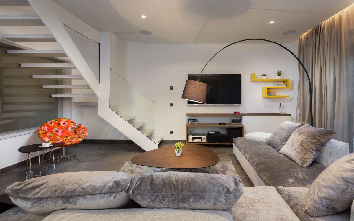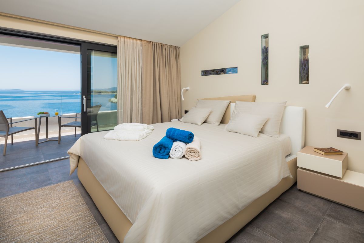 There are four uniquely designed double bedrooms accommodating up to 8 guests. Two additional guests can be accommodated in the living room. Each room was named after one of the islands visible from the terrace of the house and designed in the spirit of the visual identity of the island it was named after.