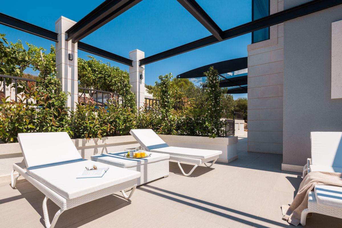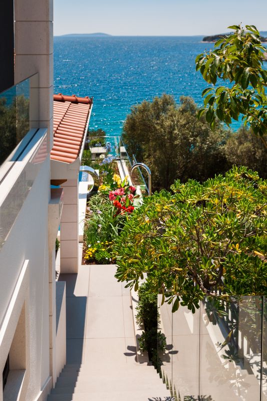 Location of the villa Bua creates perfect oasis for the guests because it is surrounded with five islands; island of Čiovo, near the ancient city of Trogir, where villa Bua is located, and the islands of Drvenik, Hvar, Brač and Šolta, clearly visible from the terrace. Its magnificent beach, along with a spectacular view of the sea, makes villa Bua an ultimate sanctuary for a holiday of a lifetime.