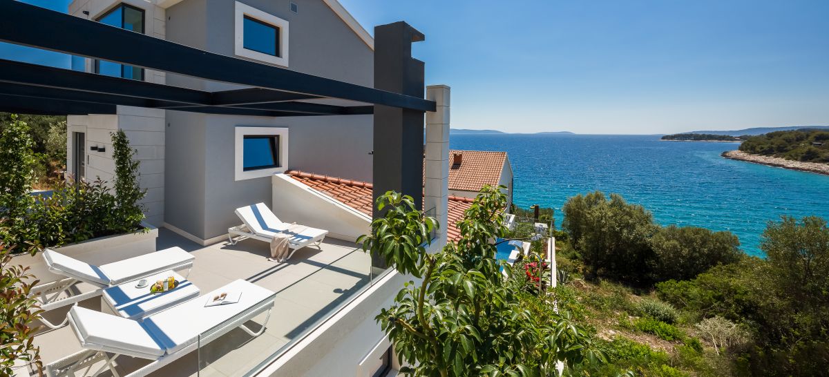 Villa Bua is located in a small bay of Tatinje, an idyllic oasis where the clear blue Adriatic Sea kisses the amazing skyline of the island of Čiovo. It is named after latin name of the island of Čiovo.
