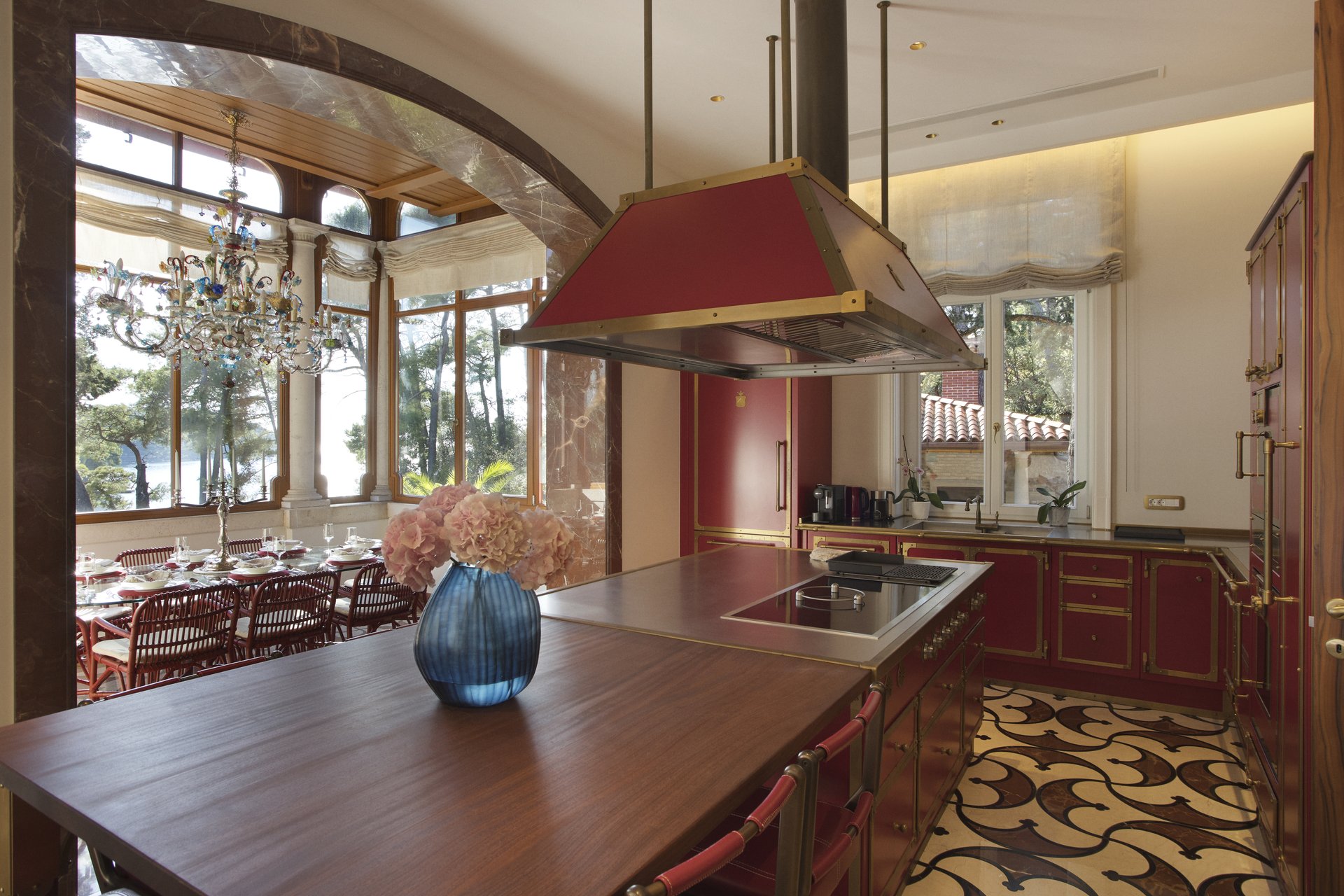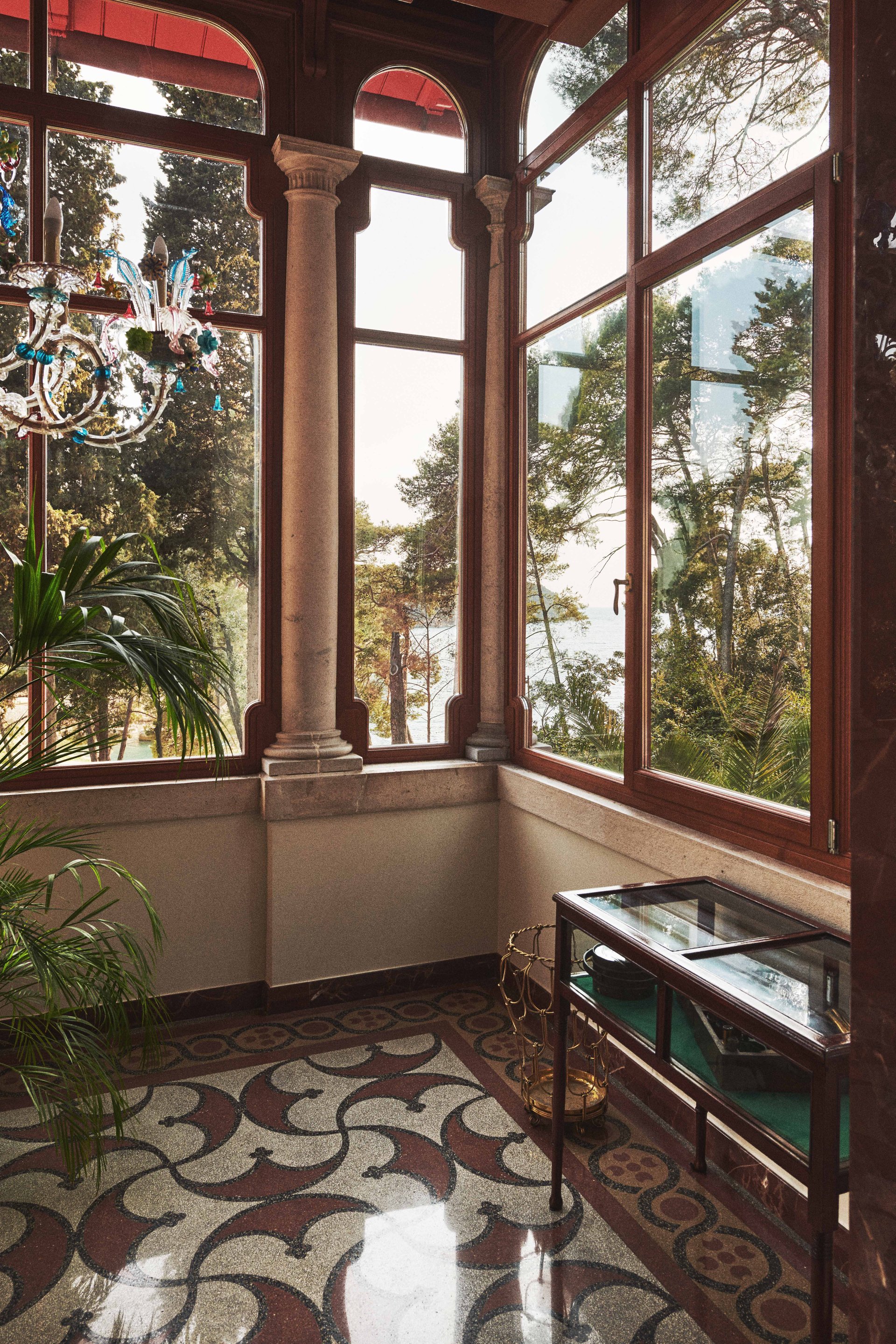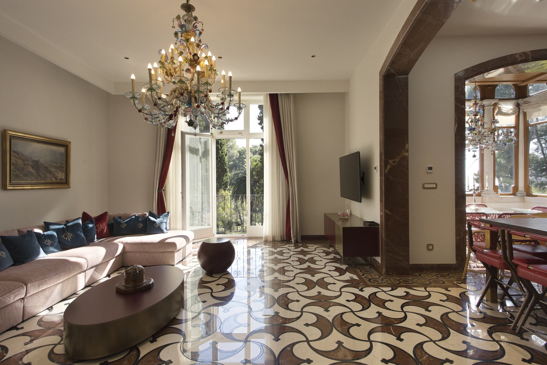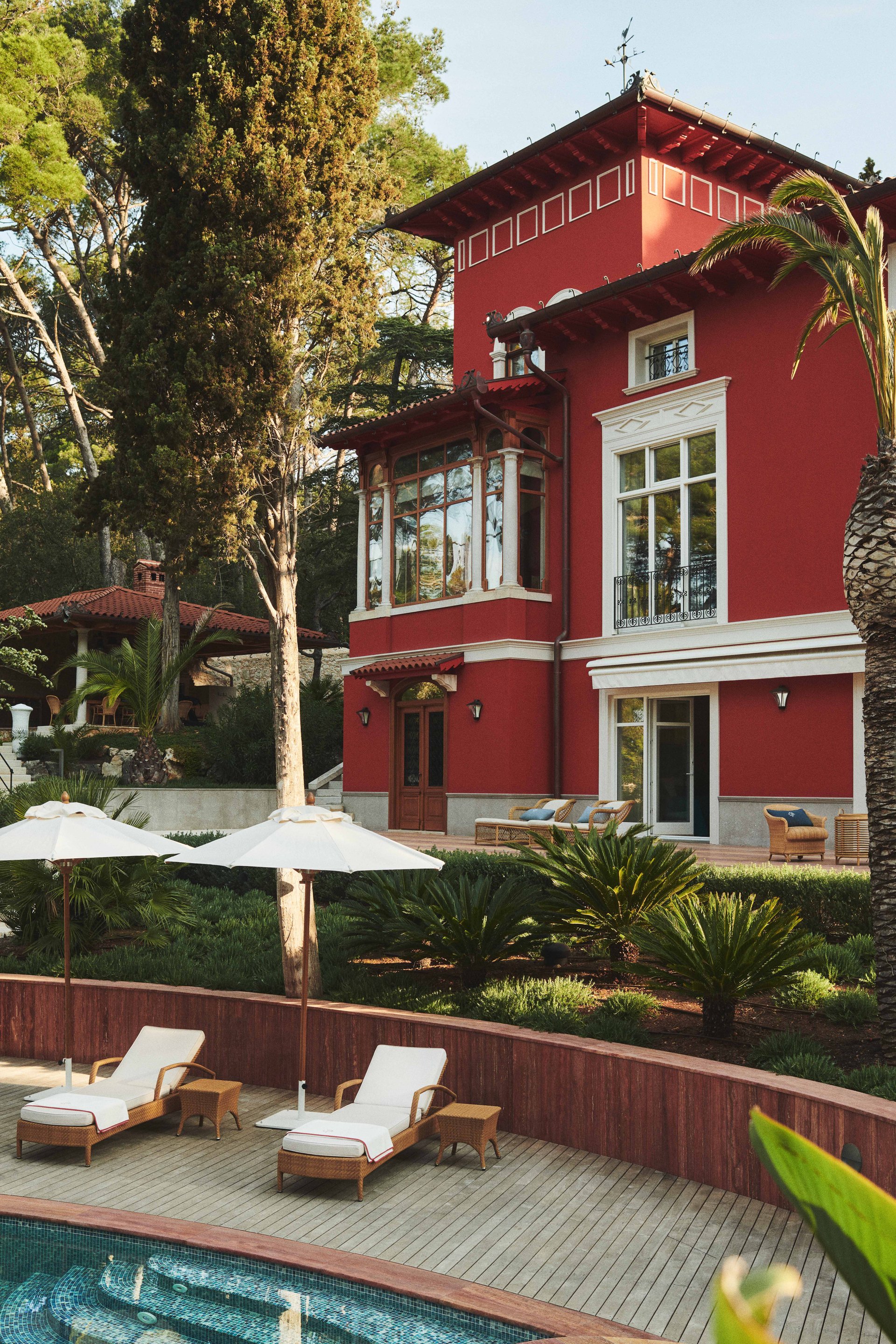 Step back in time to Lošinj's storied Austrian past with a stay at Captain’s Villa rouge, a stunning seven-suite residence designed by the esteemed Viennese architect, Friedrich Sigmund. Preserved in its original splendour, this villa offers a seamless blend of historical elegance and modern luxury. A lush Mediterranean garden surrounds the property, featuring a wraparound terrace shaded by lemon trees, where guests can bask in tranquillity. The expansive pool, nestled amidst vibrant greenery, offers a serene escape. Indulge in an exquisite dining experience with a private chef, preparing gourmet meals in an outdoor kitchen, while the vintage-patterned terrazzo floors and the glowing Murano glass chandeliers transport you to another era.