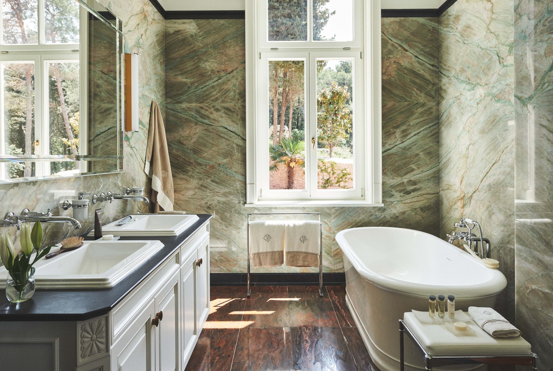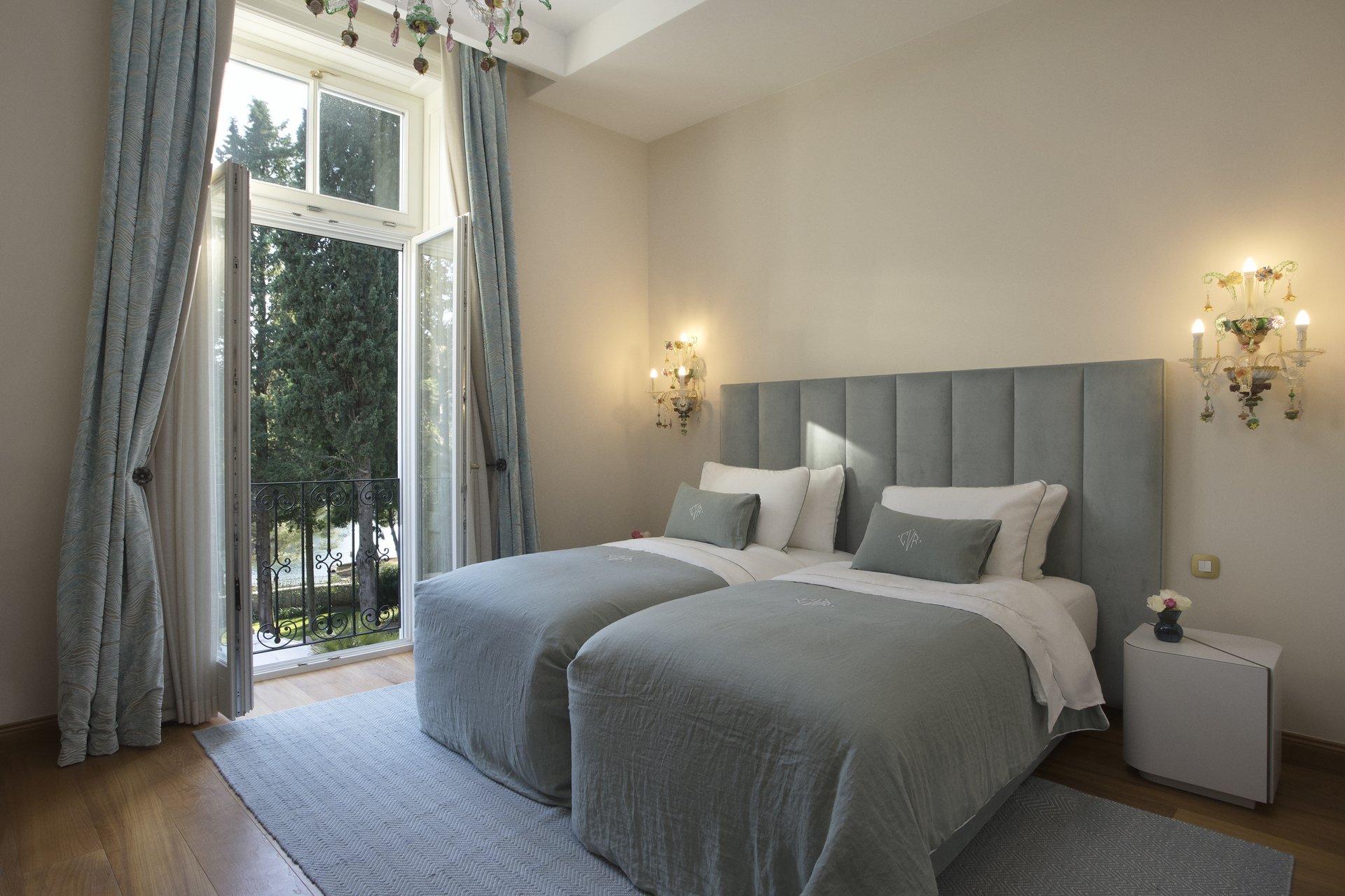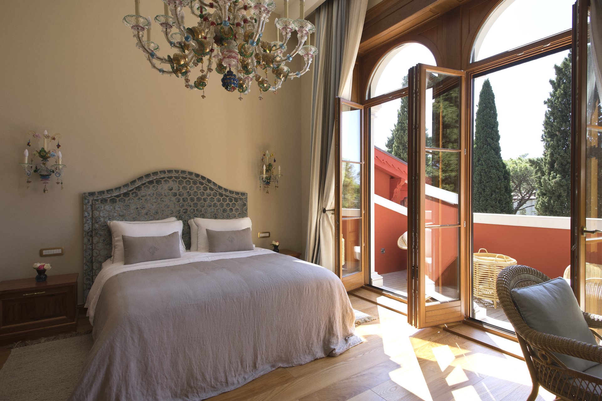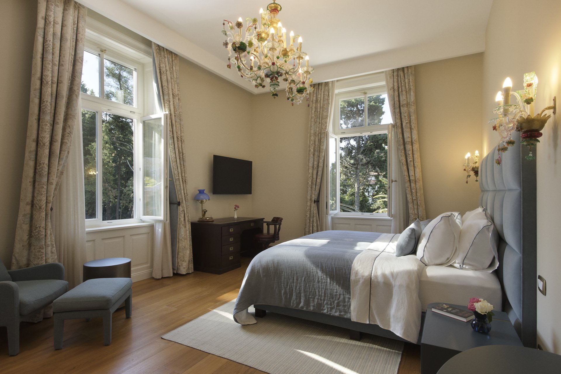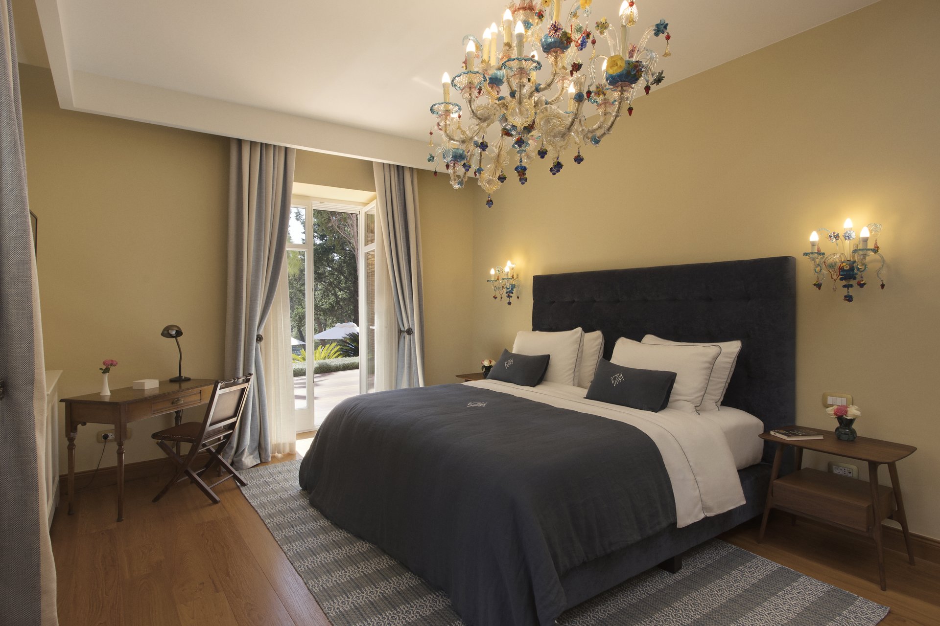 Step back in time to Lošinj's storied Austrian past with a stay at Captain’s Villa rouge, a stunning seven-suite residence designed by the esteemed Viennese architect, Friedrich Sigmund. Preserved in its original splendour, this villa offers a seamless blend of historical elegance and modern luxury. A lush Mediterranean garden surrounds the property, featuring a wraparound terrace shaded by lemon trees, where guests can bask in tranquillity. The expansive pool, nestled amidst vibrant greenery, offers a serene escape. Indulge in an exquisite dining experience with a private chef, preparing gourmet meals in an outdoor kitchen, while the vintage-patterned terrazzo floors and the glowing Murano glass chandeliers transport you to another era.