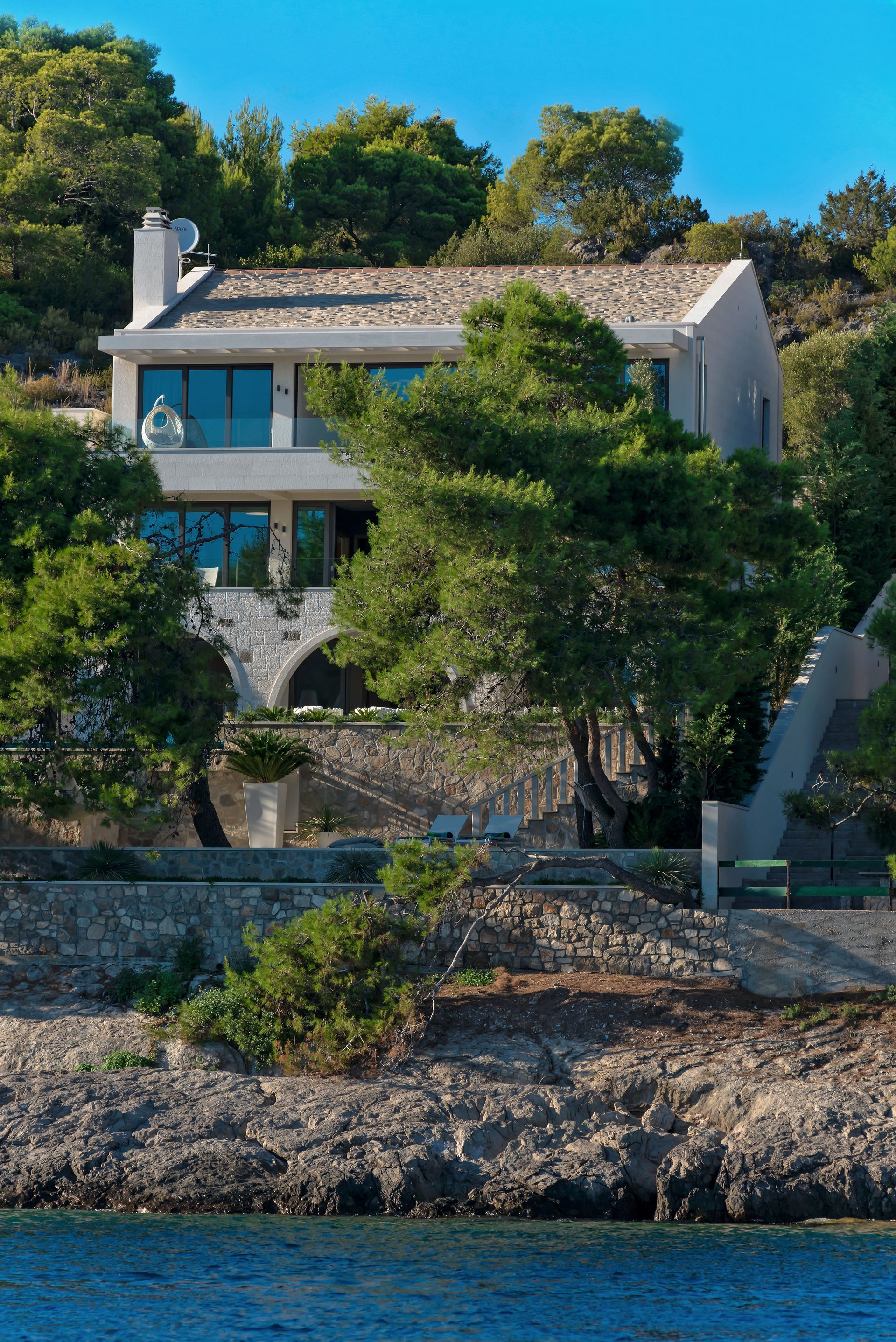 The property of Villa Coral is enriched with cascading terraces, ideal for relaxing and enjoying the sea view.