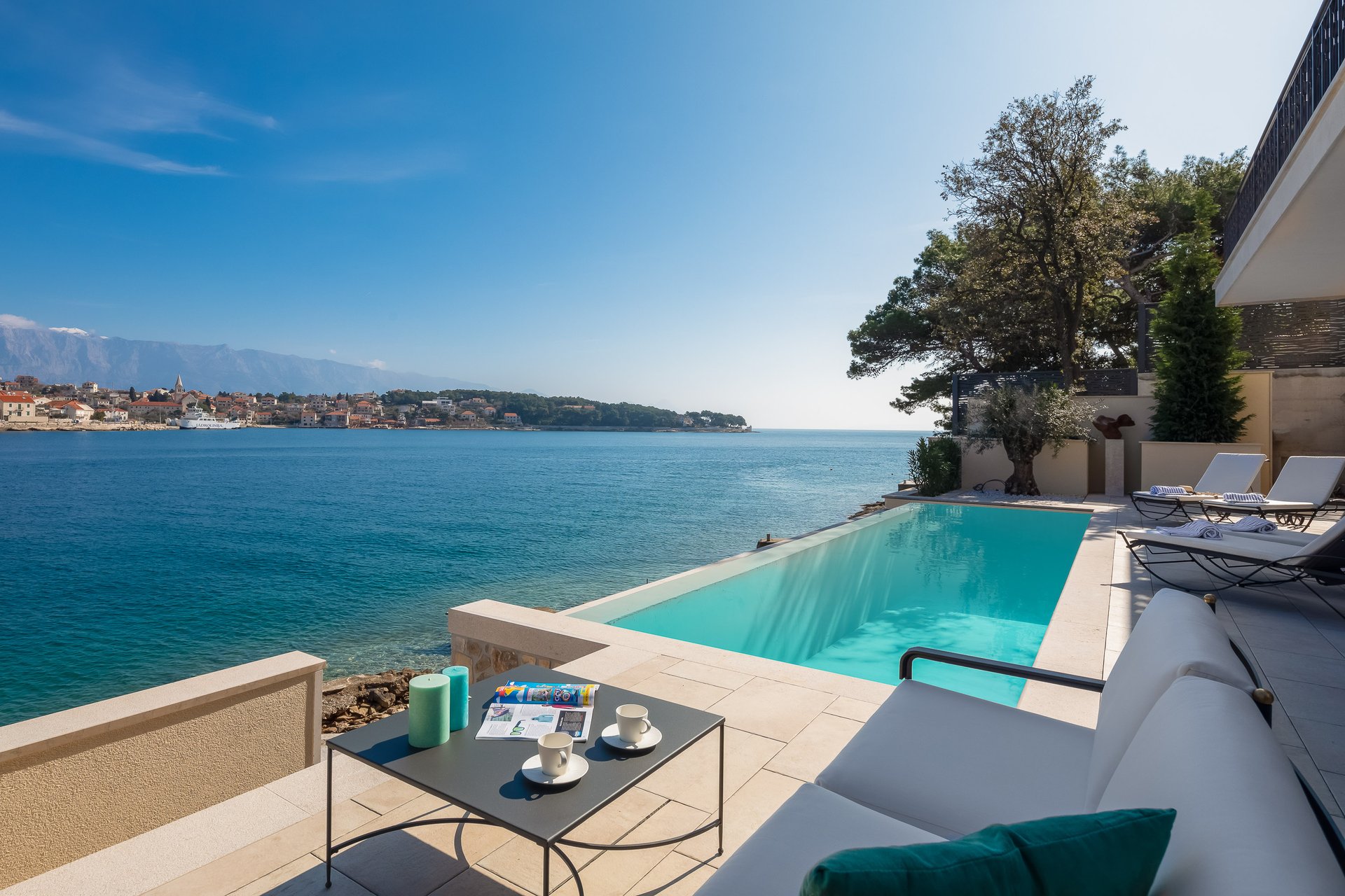 Villa Gloss is a newly built modern waterfront villa completed in 2023 with a living area of 420 square meters. It faces the stupendous scenery of the traditional fishing village of Sumartin. With Sumartin in front and Biokovo mountains in the background its view is priceless. With 4 bedrooms this 5-star villa can accommodate up to 8 guests.
