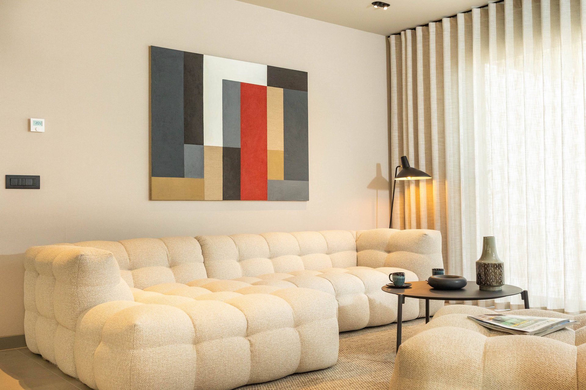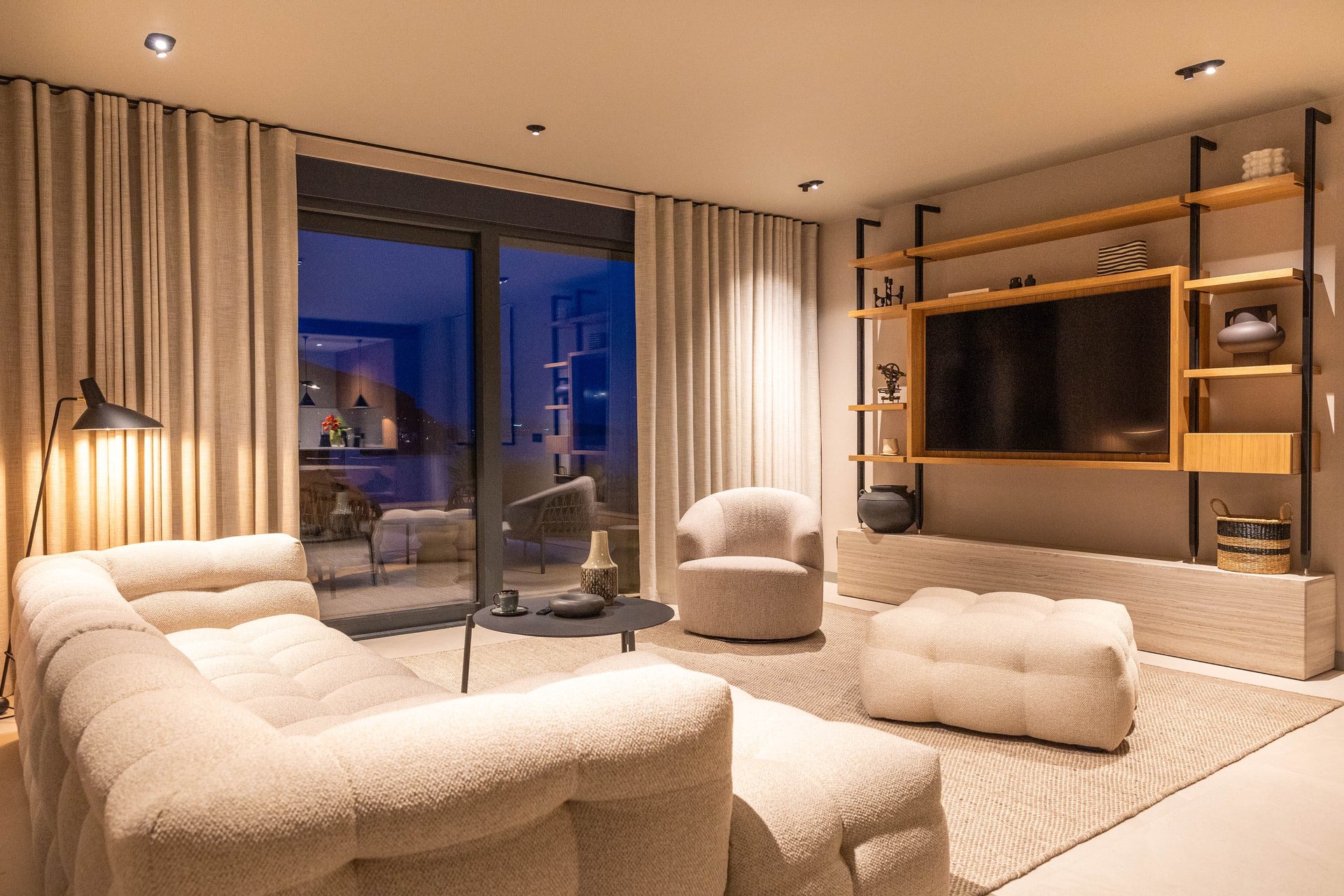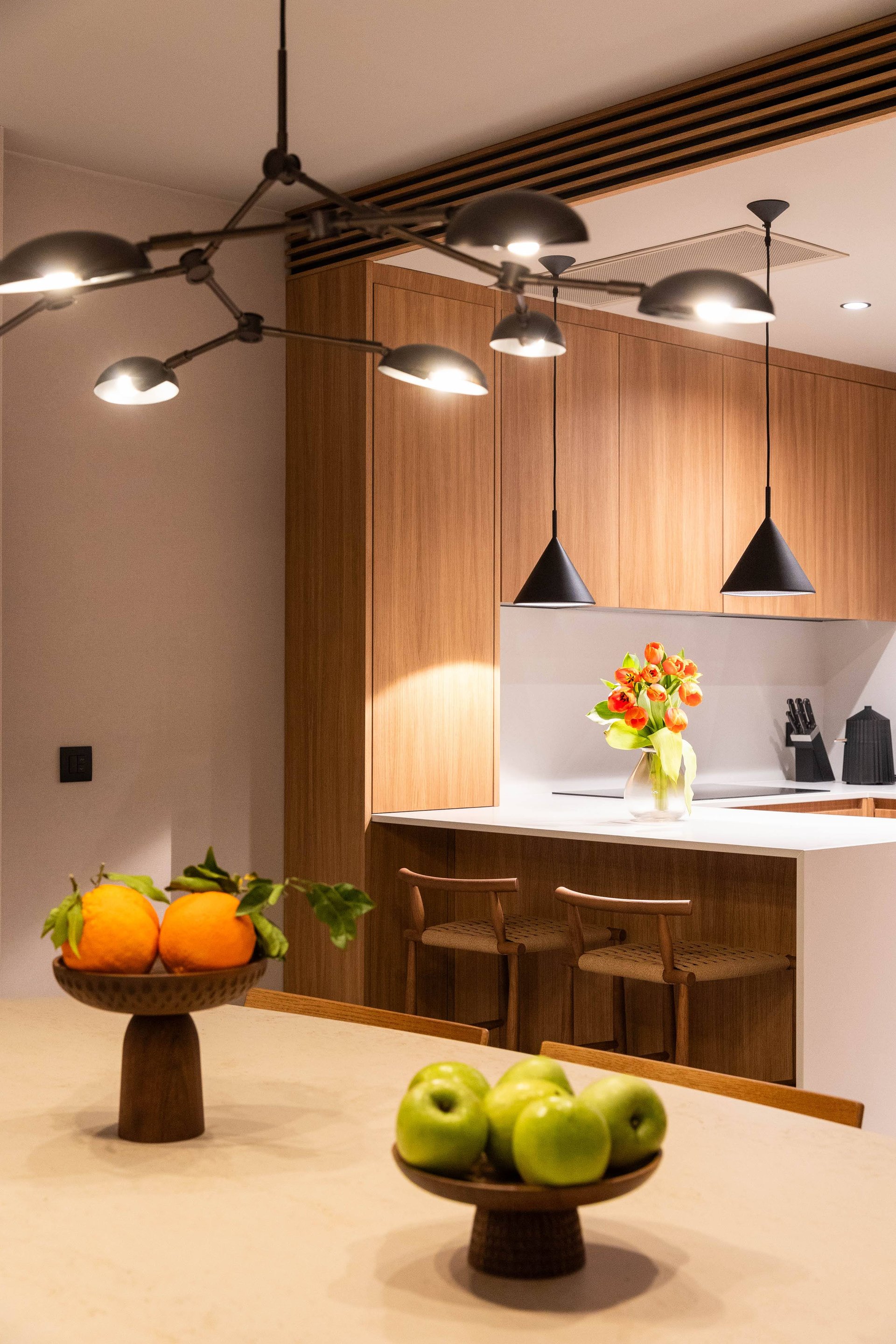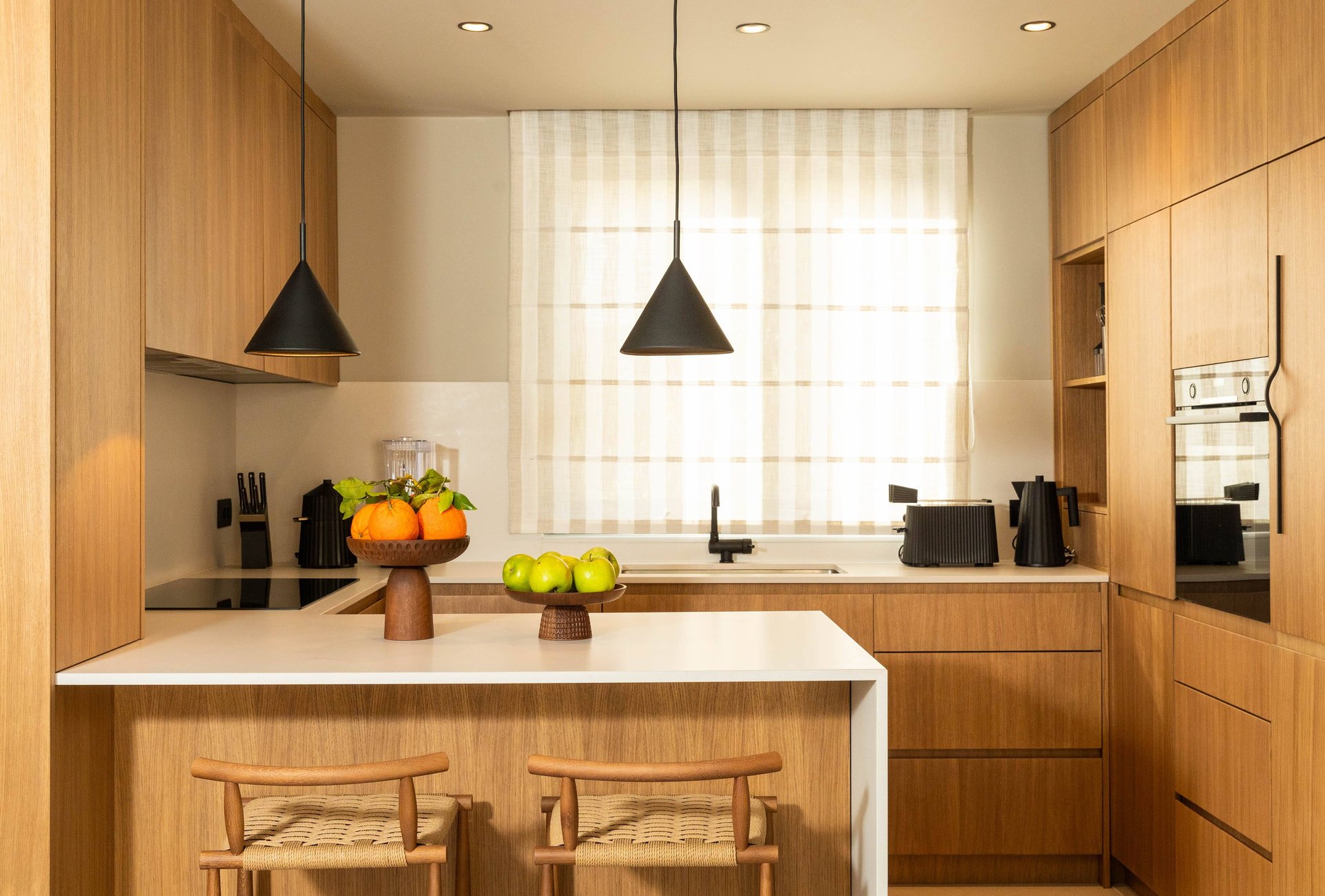 Inside, the villa continues to impress with its airy, light-filled design. Large glass walls allow natural sunlight to flood the interiors and ensure that the sea is never out of sight. The main living space is both sophisticated and inviting, offering the ideal place to unwind after a day of exploration. Decorated with a modern yet warm aesthetic, it reflects a perfect balance of elegance and functionality. The fully equipped kitchen is a culinary haven, complete with a refrigerator, freezer, oven, stove, dishwasher, coffee maker, smoothie blender, kitchen hood, and all the utensils needed for preparing gourmet meals or simple family dinners. A stylish dining table for eight guests adds to the villa's inviting atmosphere, whether you’re enjoying a leisurely breakfast or a candlelit dinner.