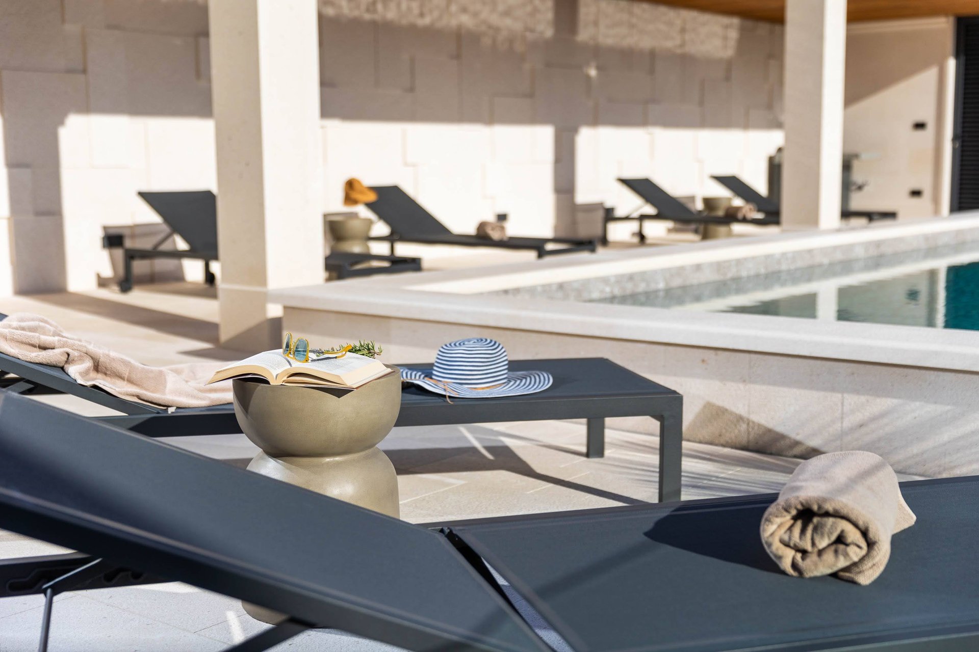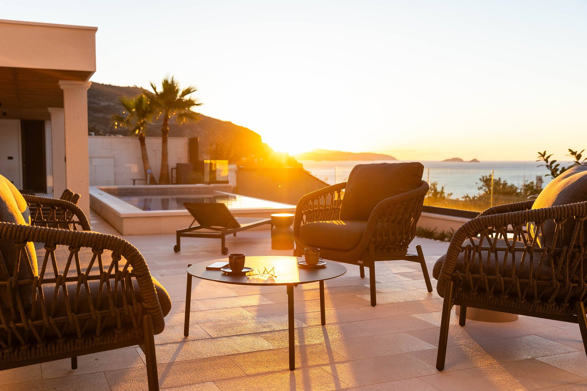 From the moment you arrive, the villa welcomes you with its striking position above the Adriatic Sea, offering a breathtaking panoramic view that stretches across the crystal-clear waters and scattered islands beyond. The heart of the property is its expansive private terrace, where the line between sky and sea seems to disappear. Here, you can relax on elegant outdoor furniture, enjoy long meals at the alfresco dining table, and immerse yourself in the serenity of your surroundings. The stunning infinity pool—appearing to melt into the azure horizon—adds a magical touch, creating the perfect setting for morning swims, sunset cocktails, or simply soaking in the beauty of the Dalmatian coast.