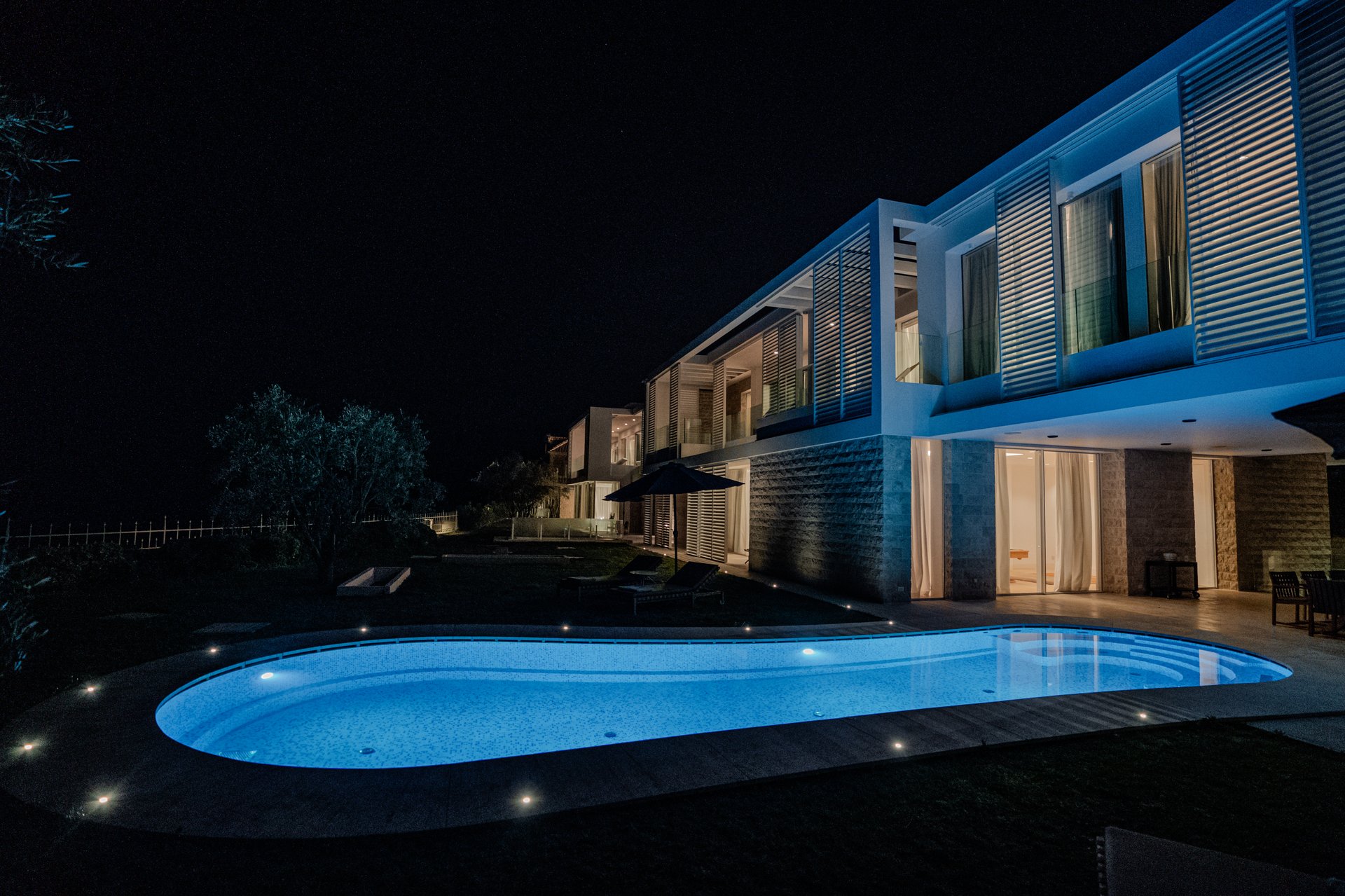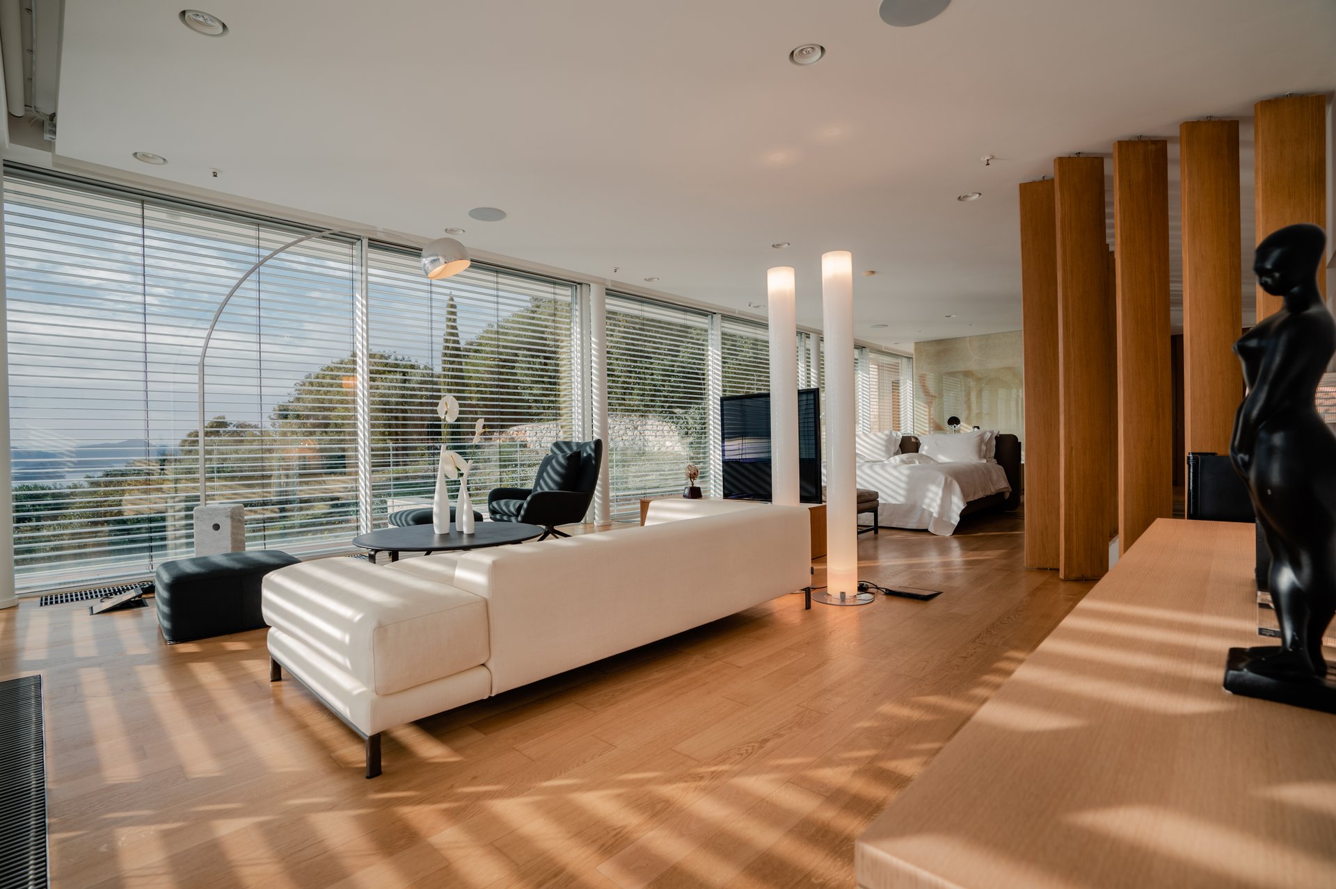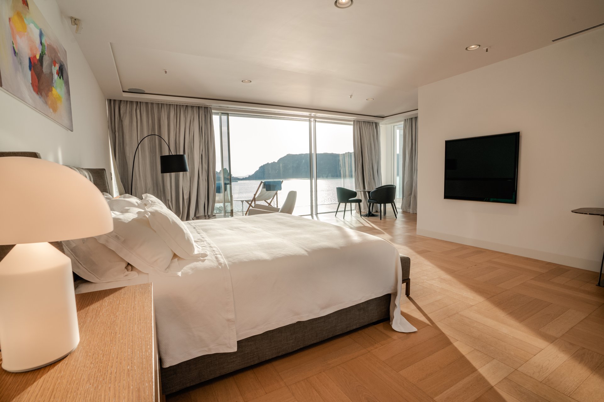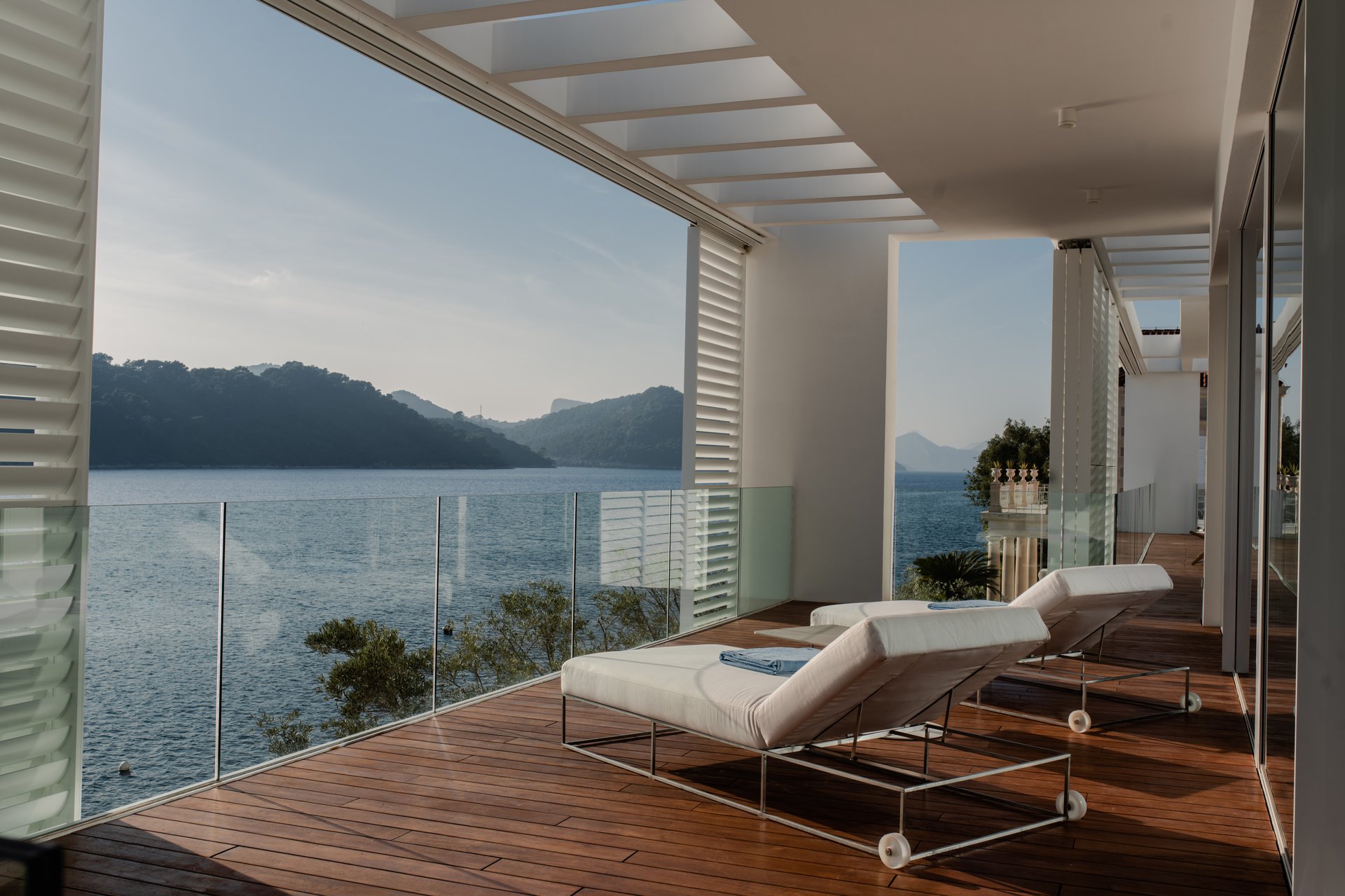Each bedroom across the estate offers a private retreat, complete with spacious balconies furnished with elegant outdoor seating, sun loungers, and parasols. Whether you’re enjoying a peaceful sunrise, an afternoon book, or an unforgettable Adriatic sunset, every moment is framed by beauty and tranquility. Interiors are bathed in natural light, thoughtfully styled with soft tones, rich textures, and clean lines that invite rest and reflection.