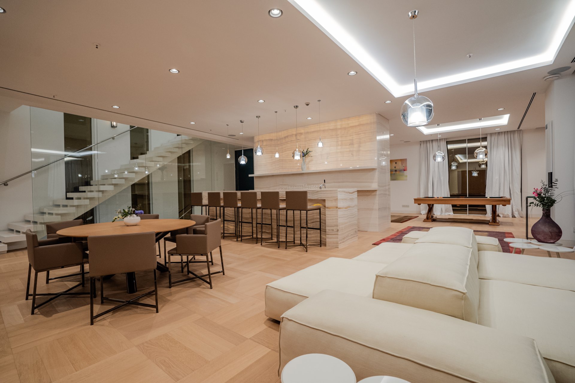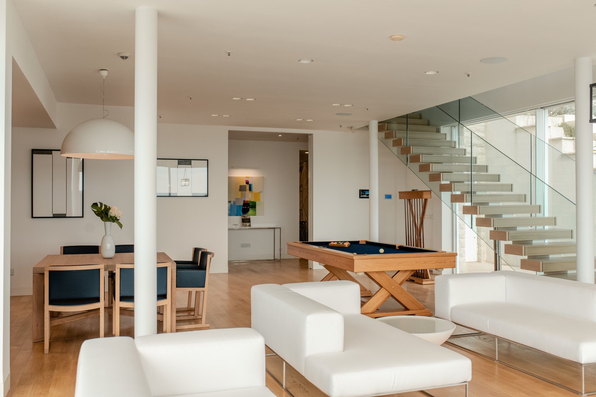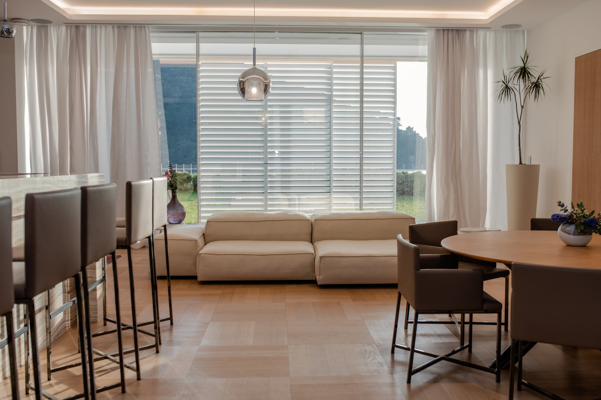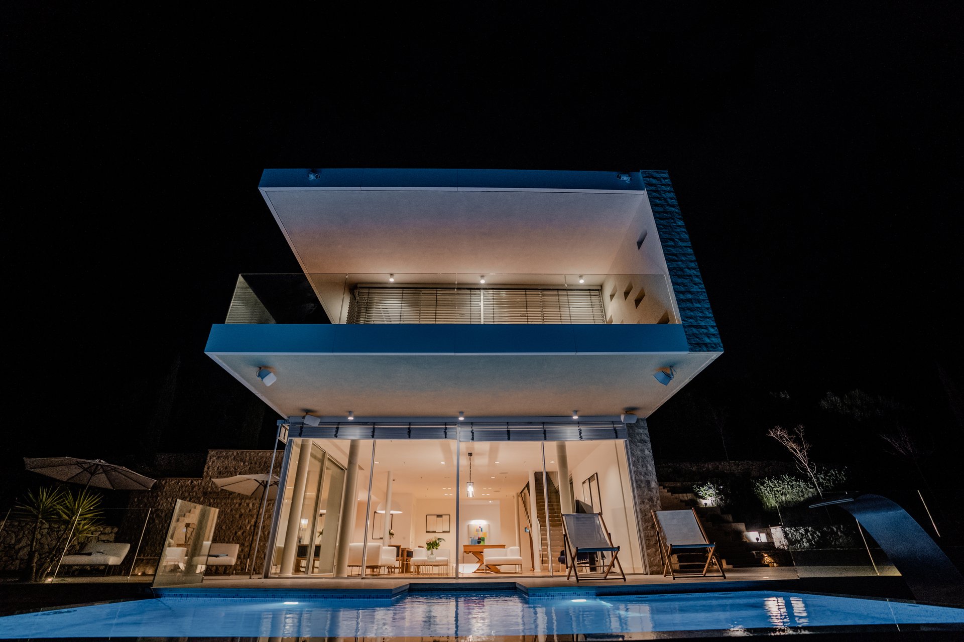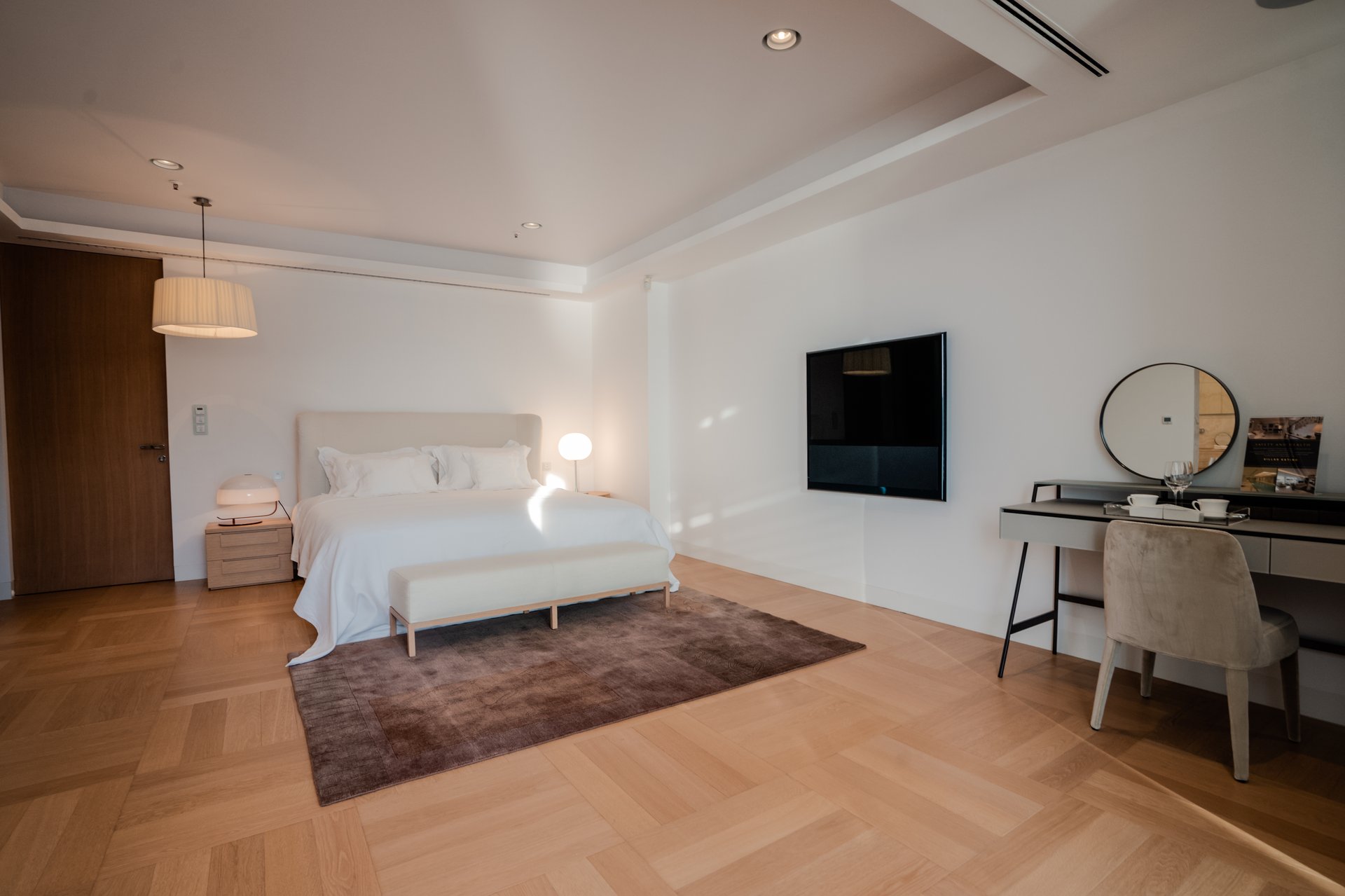 Each bedroom across the estate offers a private retreat, complete with spacious balconies furnished with elegant outdoor seating, sun loungers, and parasols. Whether you’re enjoying a peaceful sunrise, an afternoon book, or an unforgettable Adriatic sunset, every moment is framed by beauty and tranquility. Interiors are bathed in natural light, thoughtfully styled with soft tones, rich textures, and clean lines that invite rest and reflection.