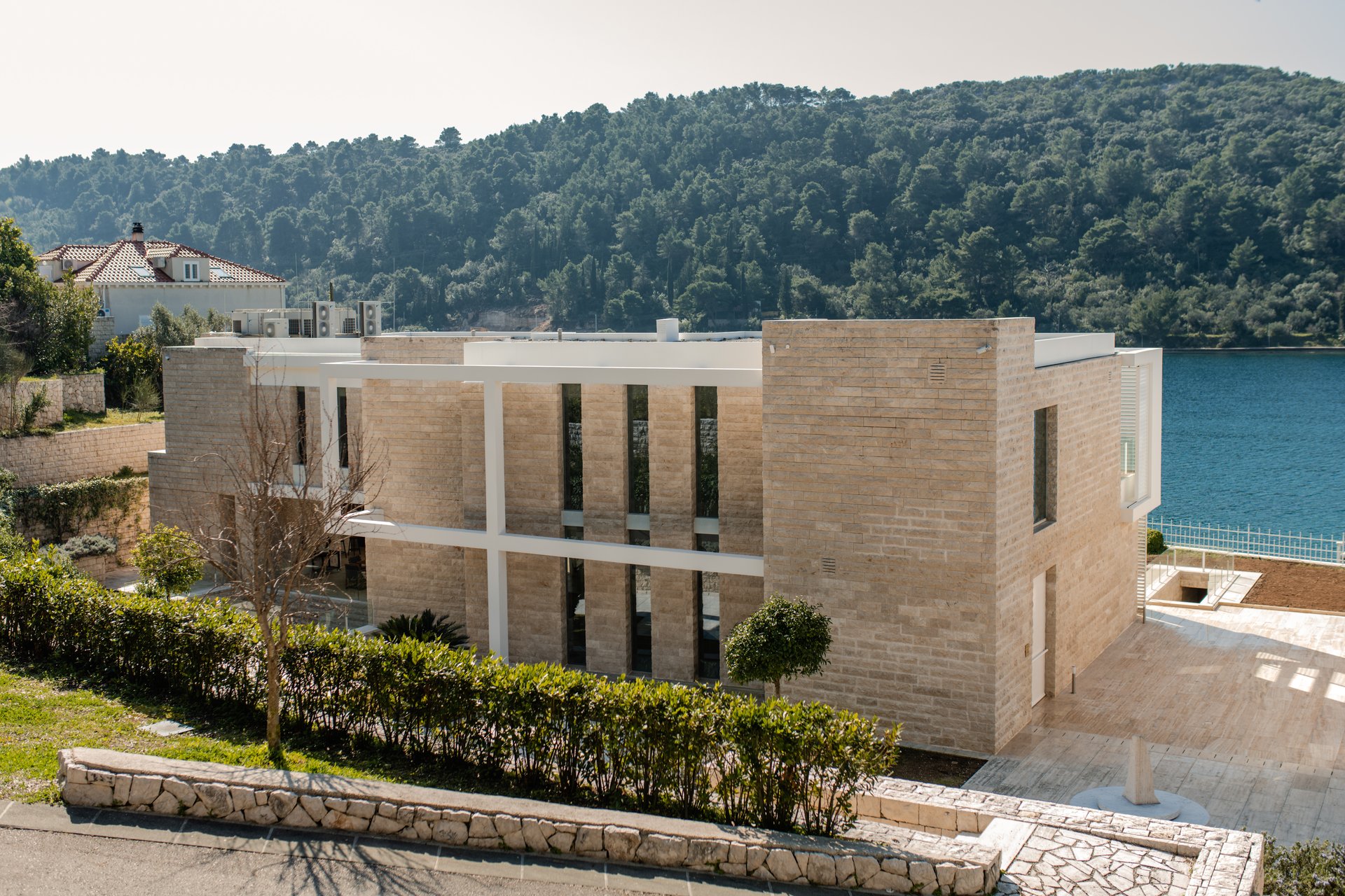 At the heart of the property lies the original stone mansion, now lovingly restored to preserve its authentic façade and historic charm. Surrounding it are three newly built villas, each with its own interior concept, enriched by bespoke furniture, artistic lighting installations, and original works by Croatian artists. The design of every space reflects a seamless blend of the traditional and the contemporary, allowing guests to experience both the legacy of the past and the comfort of modern living.