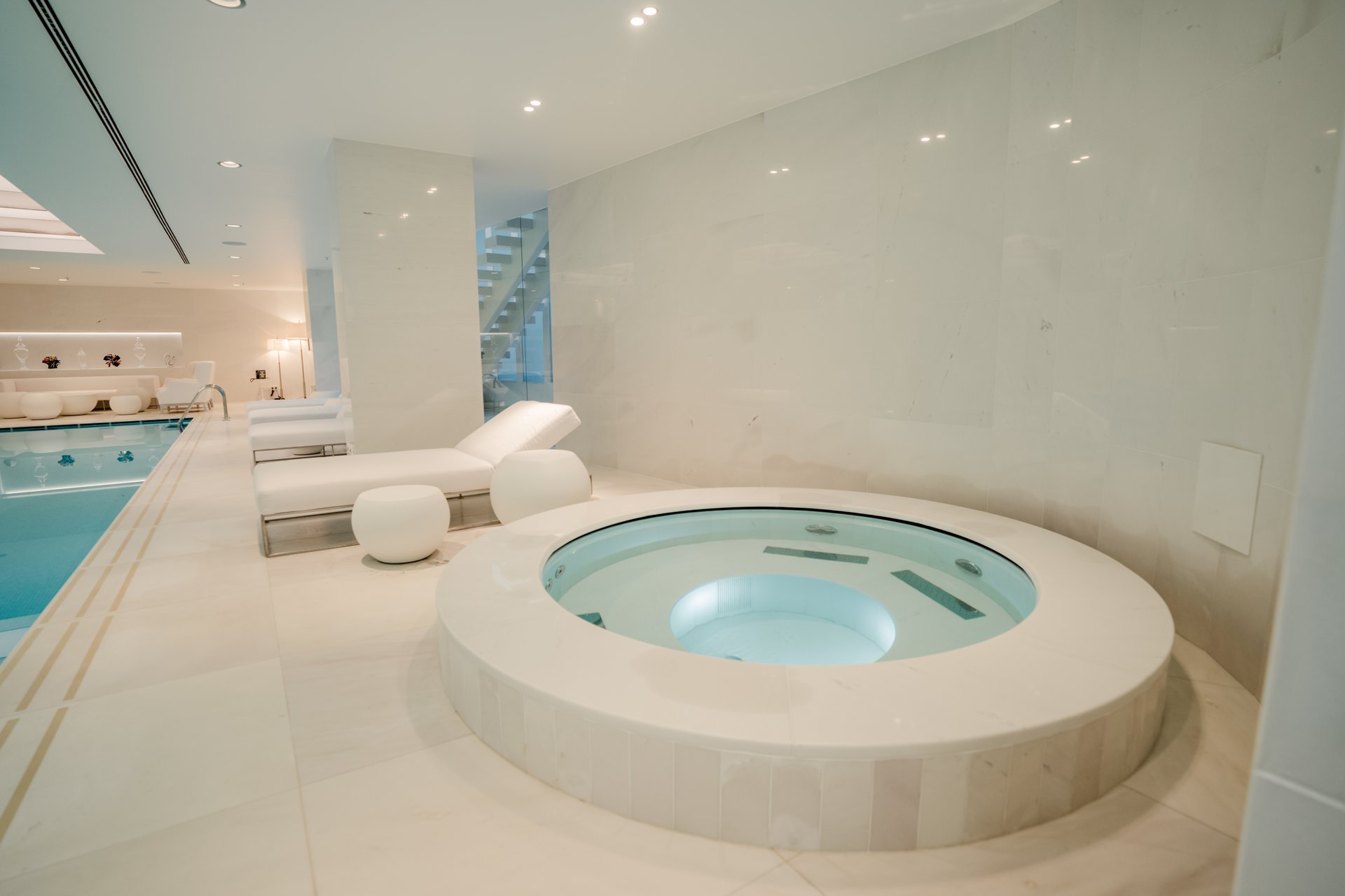 Beyond the accommodations, Villa Katino offers an exceptional range of wellness and leisure experiences. Guests have access to three swimming pools (two outdoors and one indoor) ranging from 8 to 25 meters in length and equipped with features like counter-current jets, cascading waterfalls, and underwater massage systems. The estate also includes two saunas, steam rooms, and spa-style showers for total relaxation, as well as a 100 m² professional gym outfitted with the latest TechnoGym equipment. A private massage room and in-house salon are available for personalized wellness and beauty treatments.