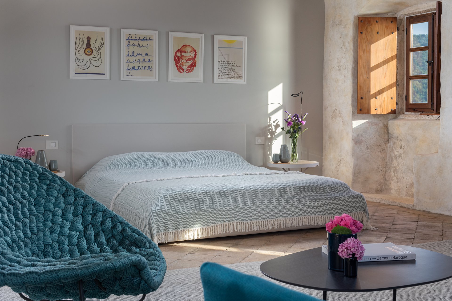 The villa’s bedrooms are all individually designed, offering a blend of historical character and modern comfort. Each bedroom is spacious, featuring king-sized beds, fine linens, and en-suite bathrooms equipped with high-end fixtures, rain showers, and freestanding bathtubs. Many of the rooms also offer balconies or terraces, allowing guests to enjoy unobstructed views of the Mediterranean landscape. The villa is designed to offer a perfect balance of communal and private spaces, with multiple living rooms, a library, and a gourmet kitchen that’s ideal for both casual and fine dining.