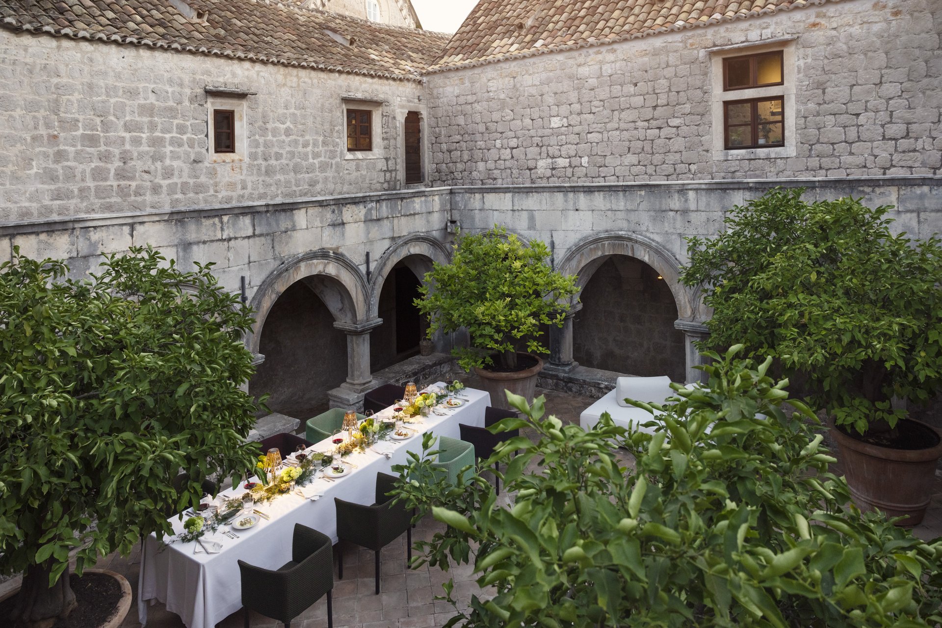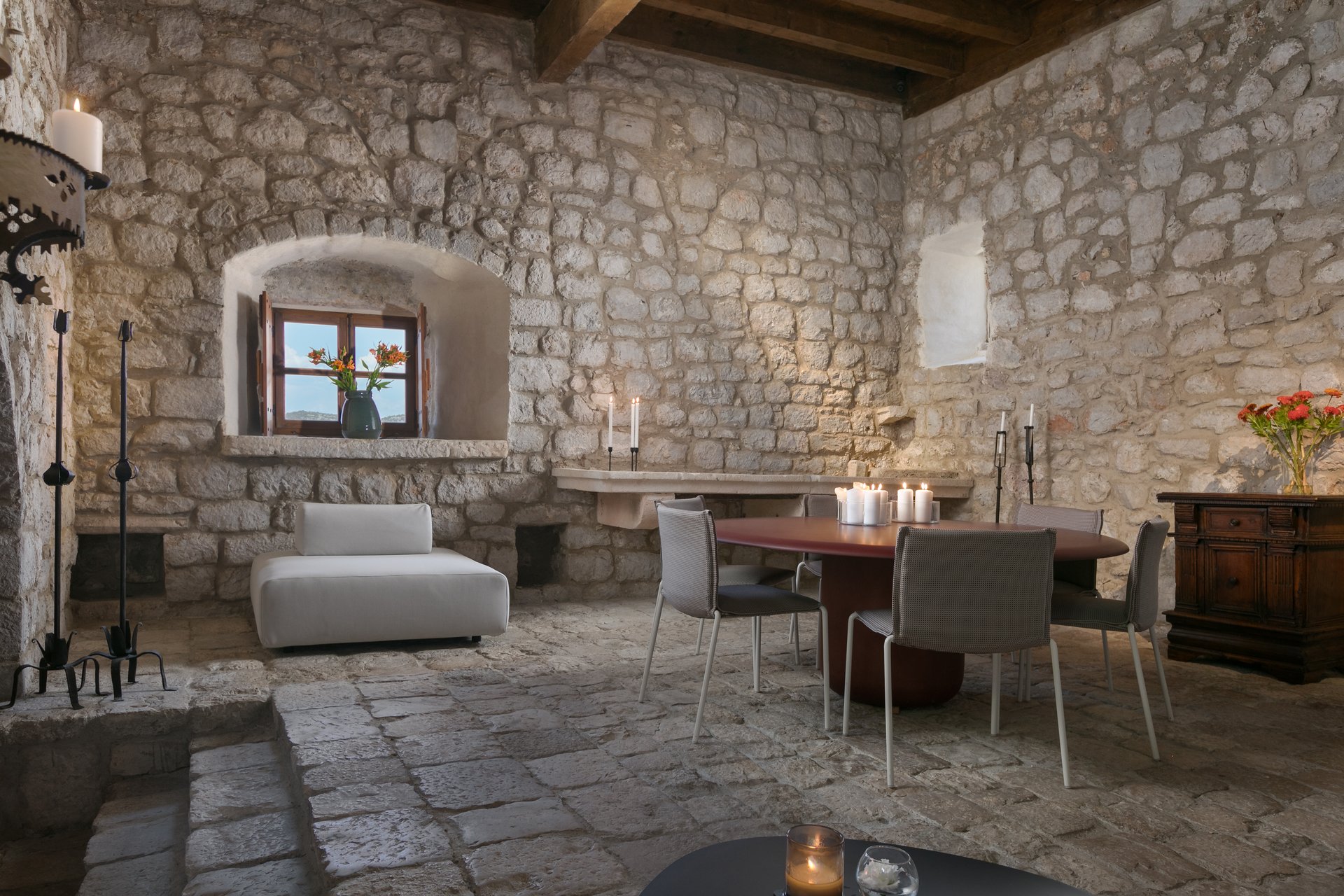 The history of the villa is deeply tied to its origins as a Dominican monastery founded in 1483. Over the centuries, the building has been altered and adapted, but it has always maintained its religious and cultural significance. In the early 2000s, the property was purchased and meticulously restored by Croatian art collector Branko Bebić, who sought to preserve the monastery’s medieval charm while updating it for modern luxury. The restoration successfully maintained the building's Gothic and Renaissance architectural features, such as its original stone walls, vaulted ceilings, and religious frescoes. The renovation brought a contemporary, minimalist aesthetic into the space, allowing the villa to seamlessly blend ancient stonework with sleek modern design.