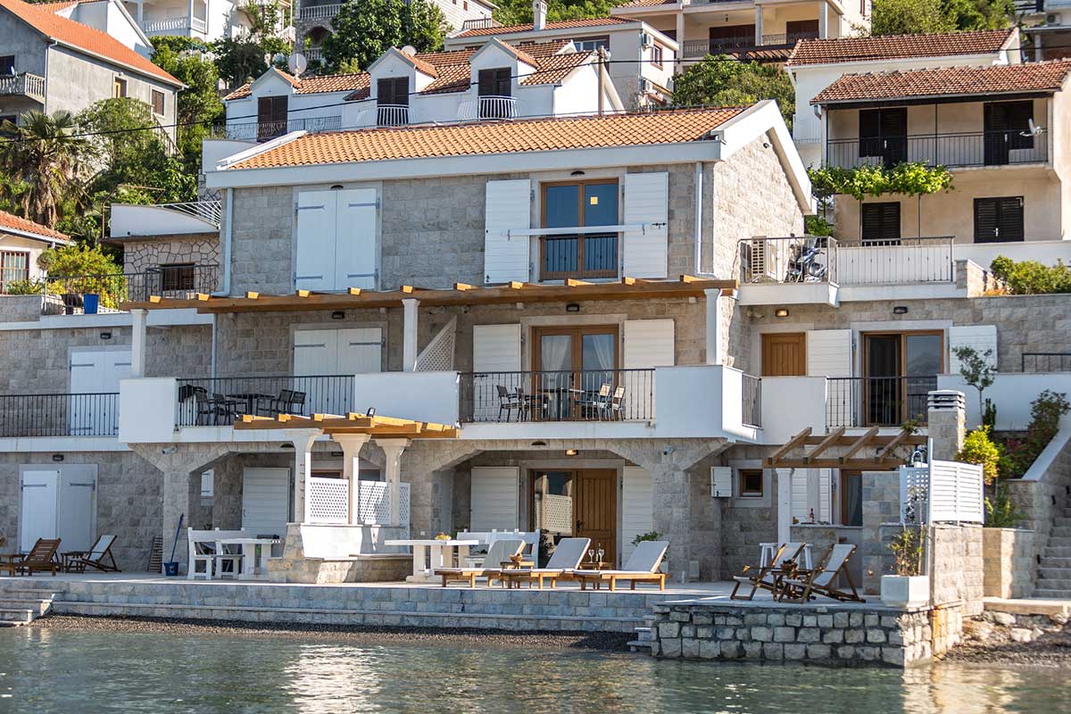 This brand new deluxe estate accommodates up to 8 guests in 3 bedrooms and 2 more on the pull-out sofa. Traditional Montenegrin materials like stone and wood create a warm environment with a touch of modern.