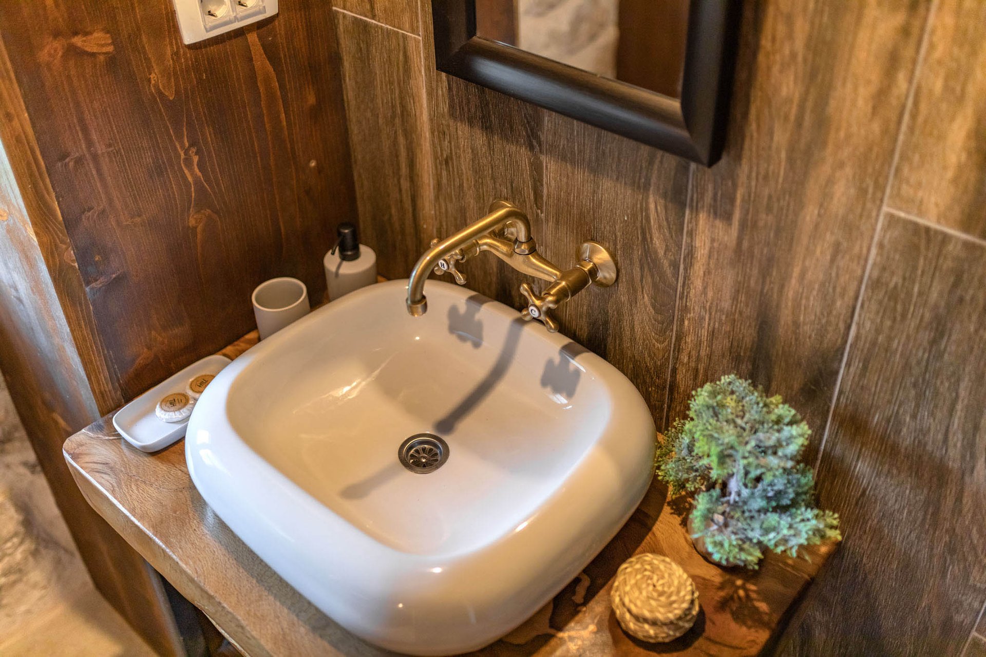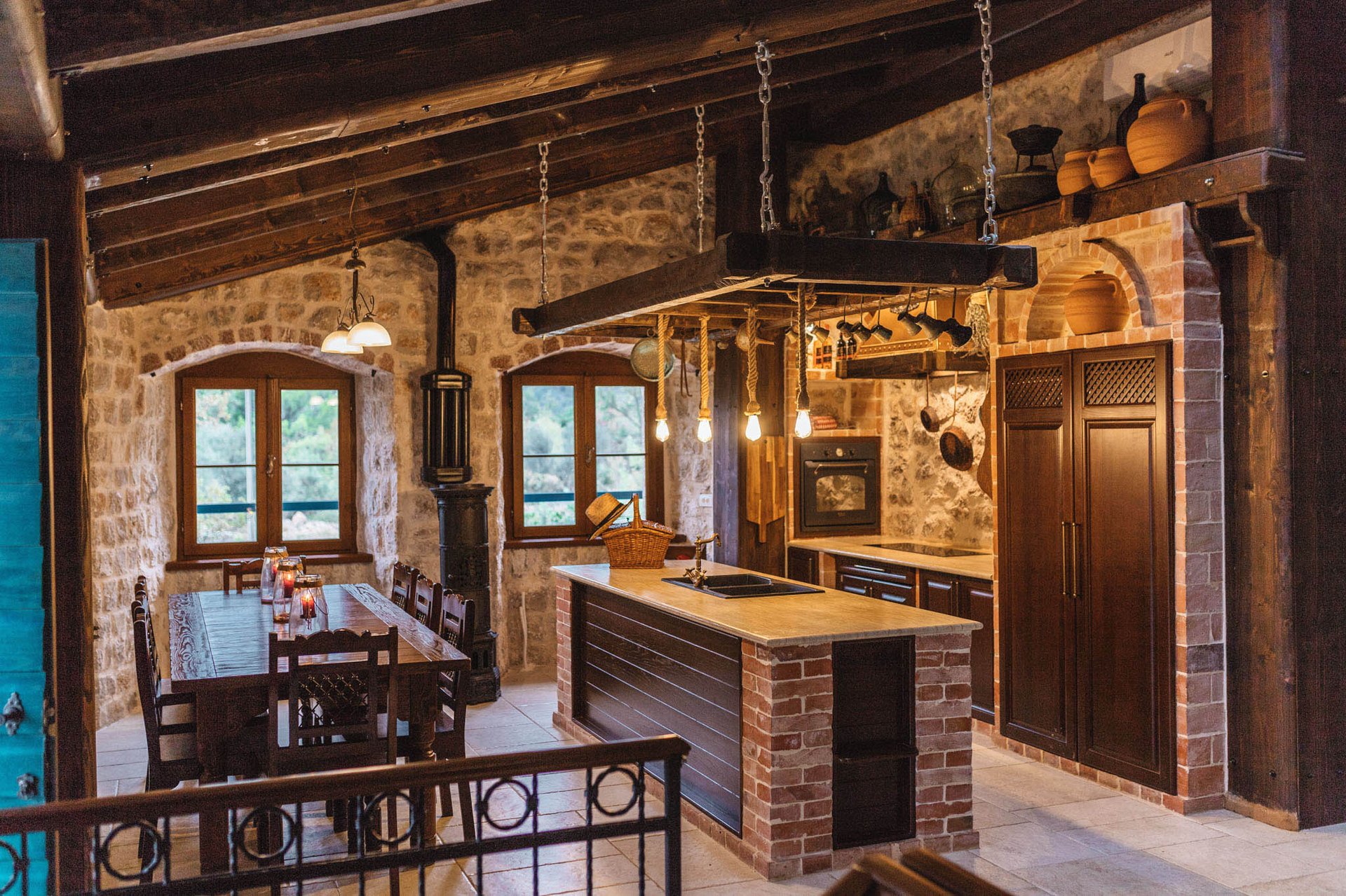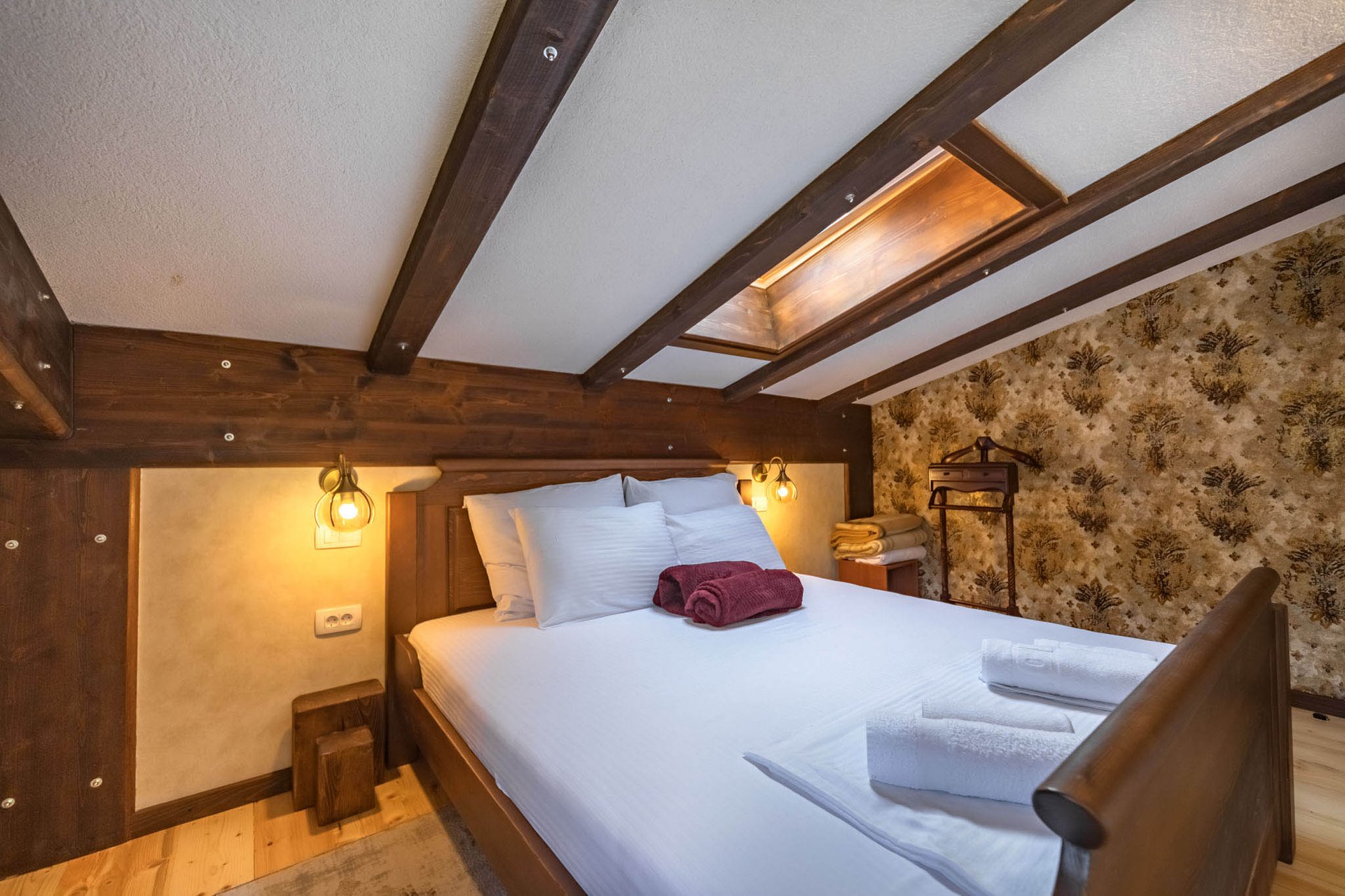 All rooms come with tile floors, stone walls, wood paneled ceilings, air conditioning and a work desk. There are two sleeping rooms with en-suite bathrooms which are fitted with a rain shower and/or massage tub and include a hairdryer and towels. Additional double bed is on the gallery above living room.