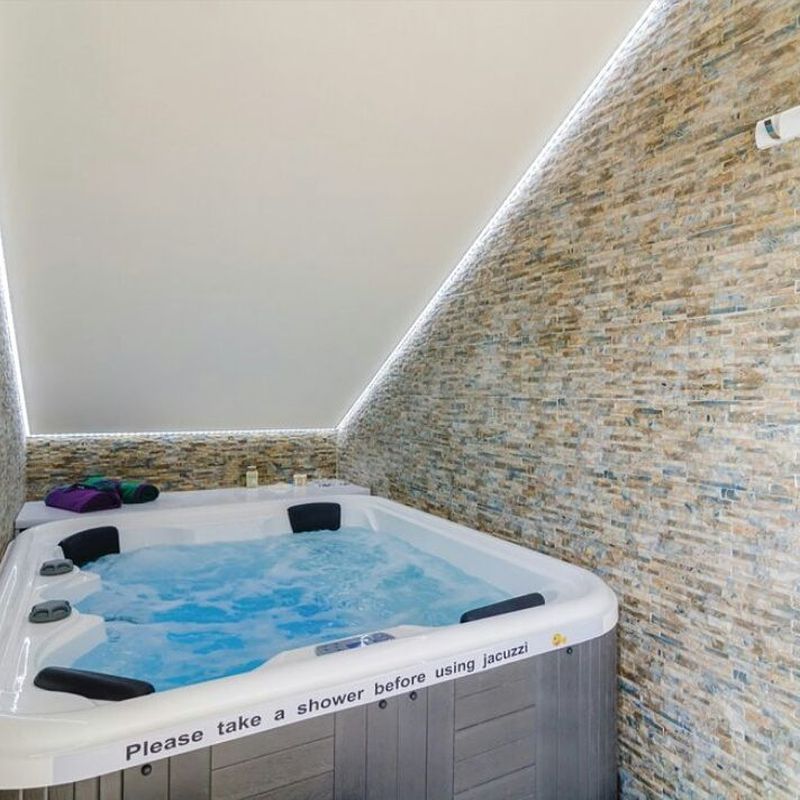 The interior of the house is split between two levels connected by an external staircase, and each can function as a separate whole, making this property ideal for two families or two close groups travelling together. The stairs also conceal a hidden gem to be shared between the two floors – a large Jacuzzi for up to 5 persons!