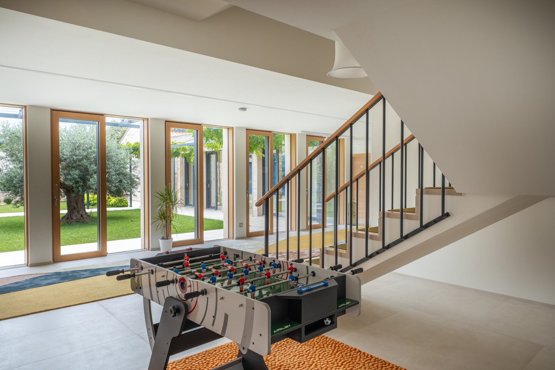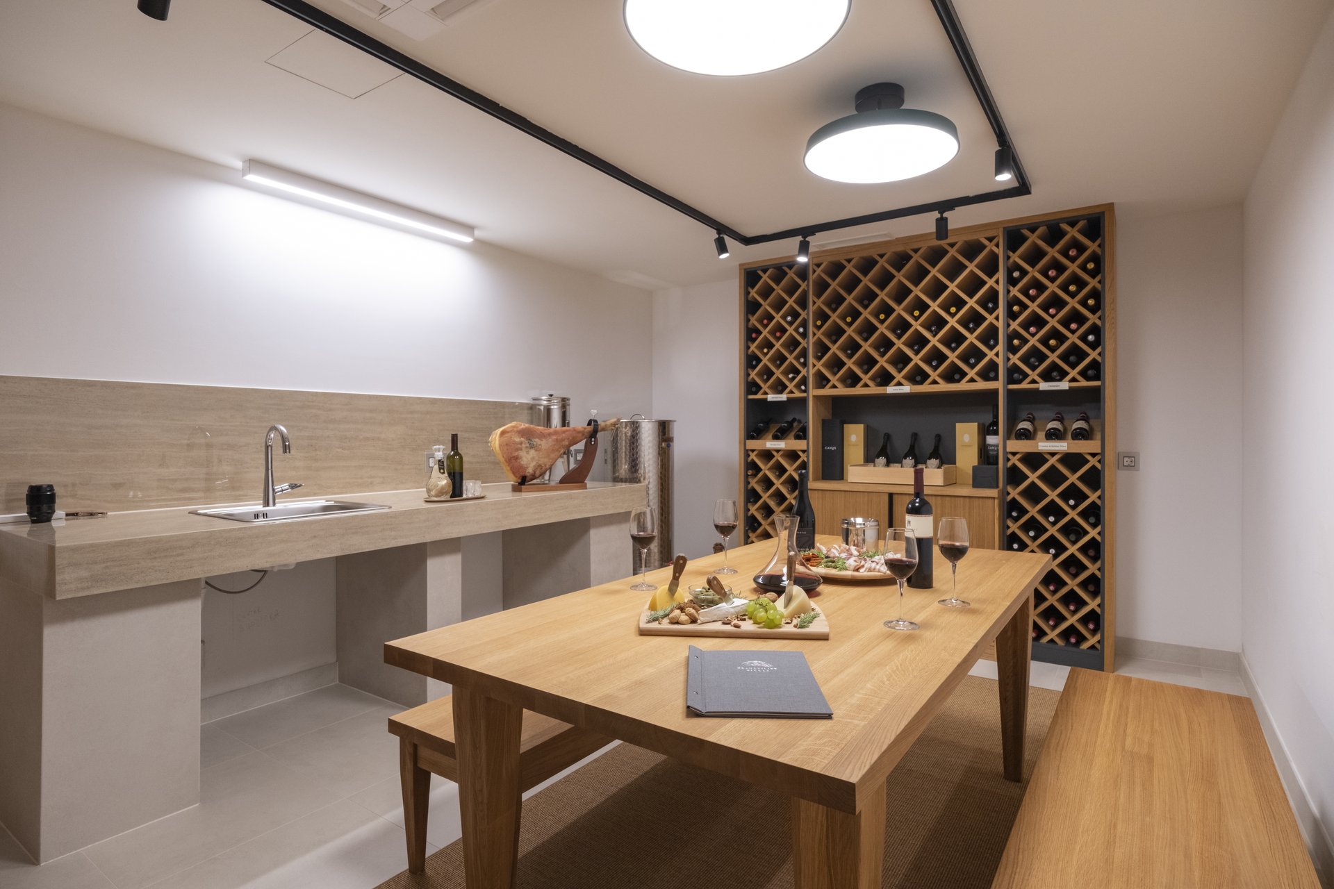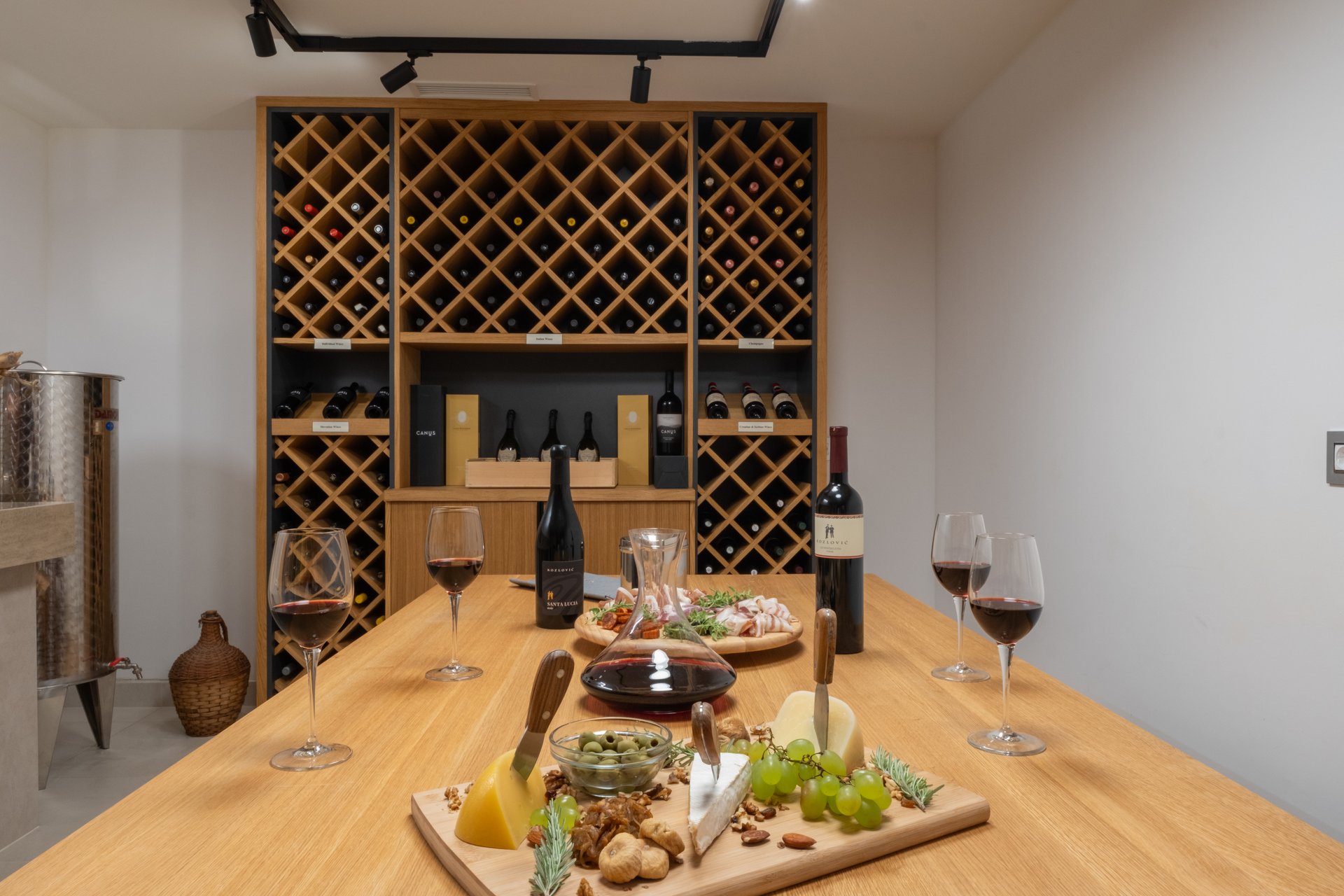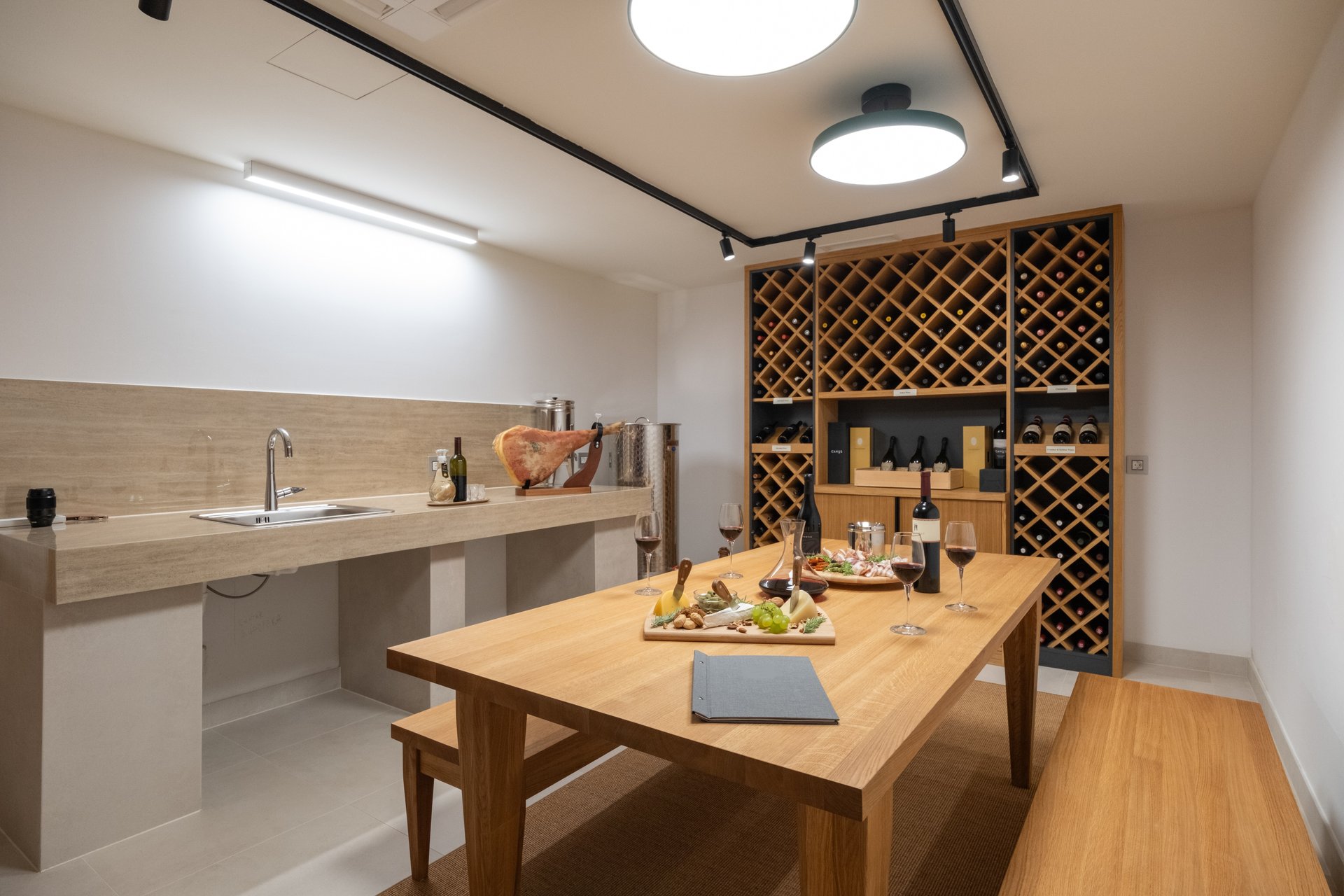 For a relaxing indoor feeling guests can enjoy a library that serves as a media room with a fireplace. On the lower ground floor, accessible by elevator or stairs, guests can enjoy wine tasting in their private Wine & Olive oil cellar of 25 sqm.