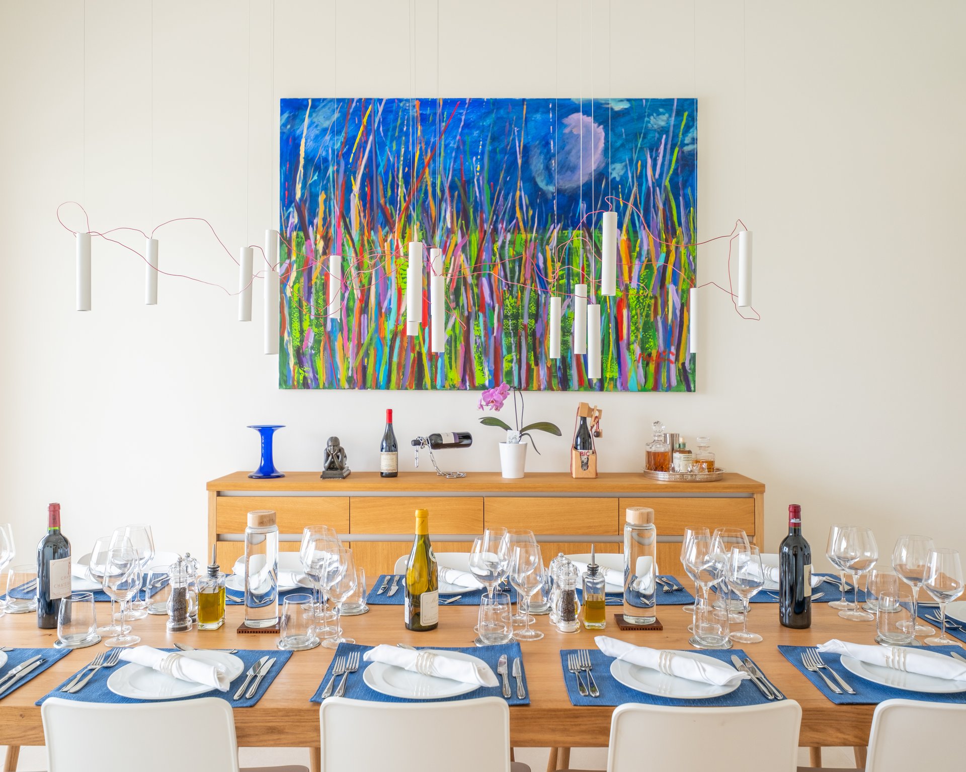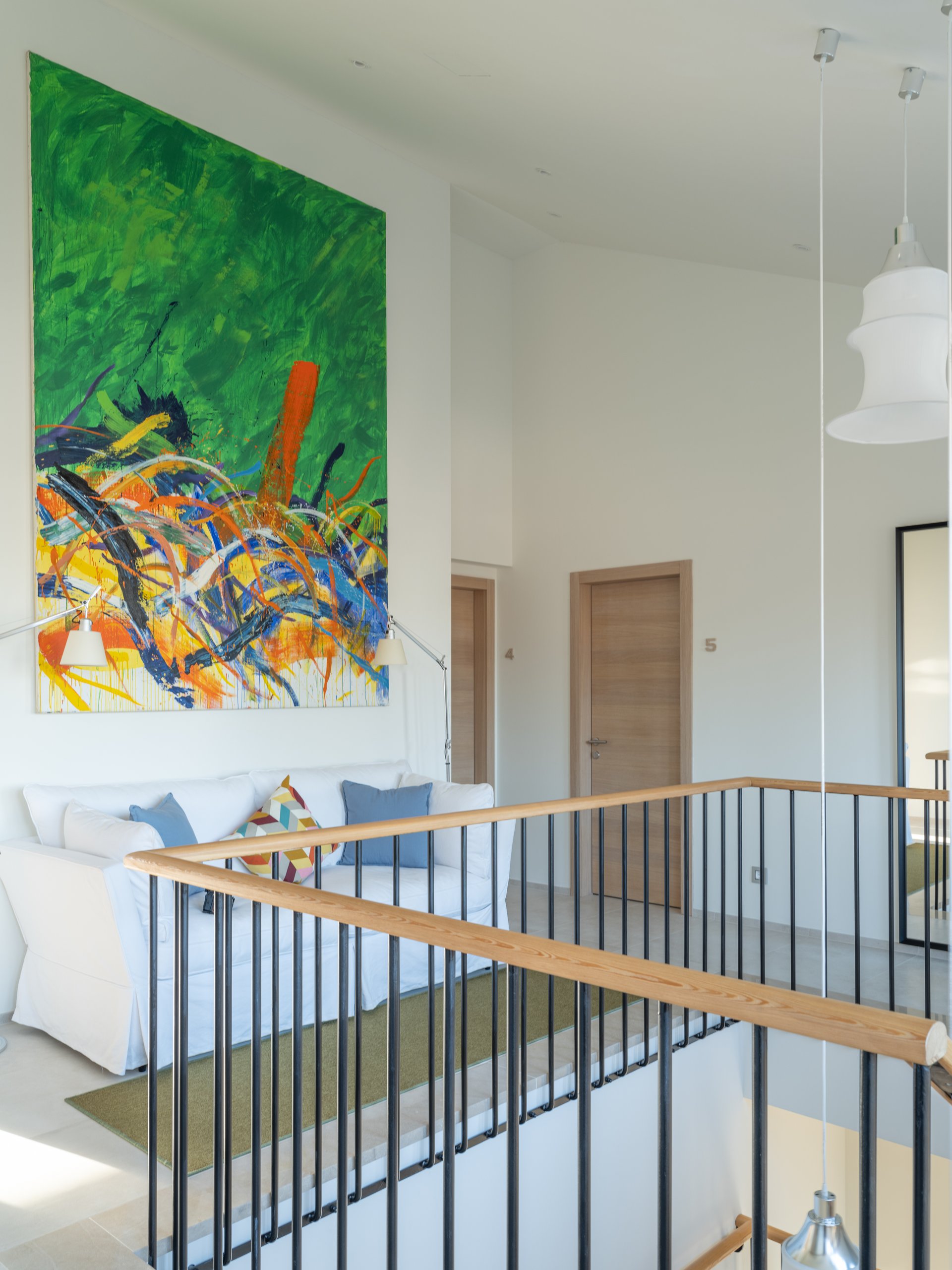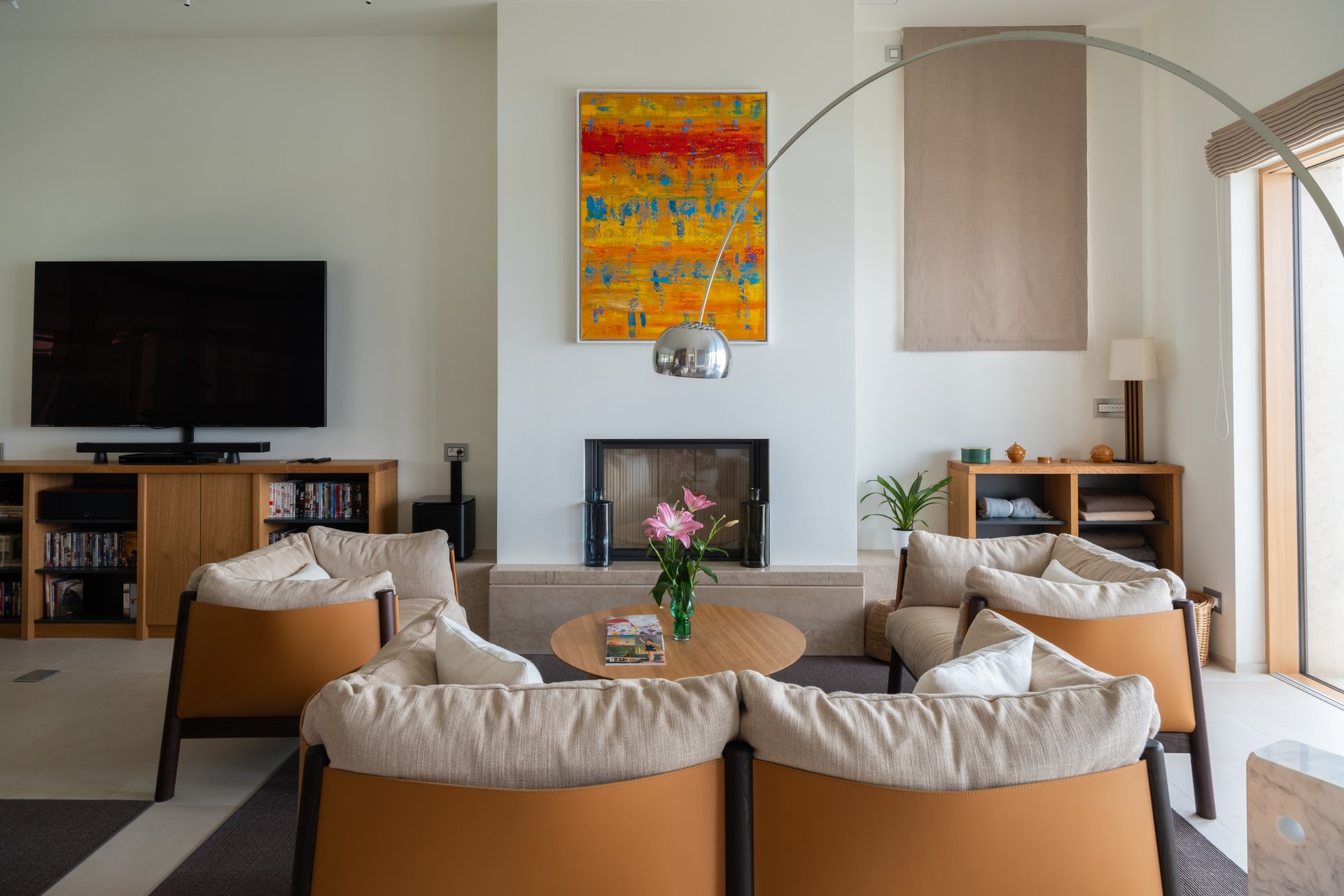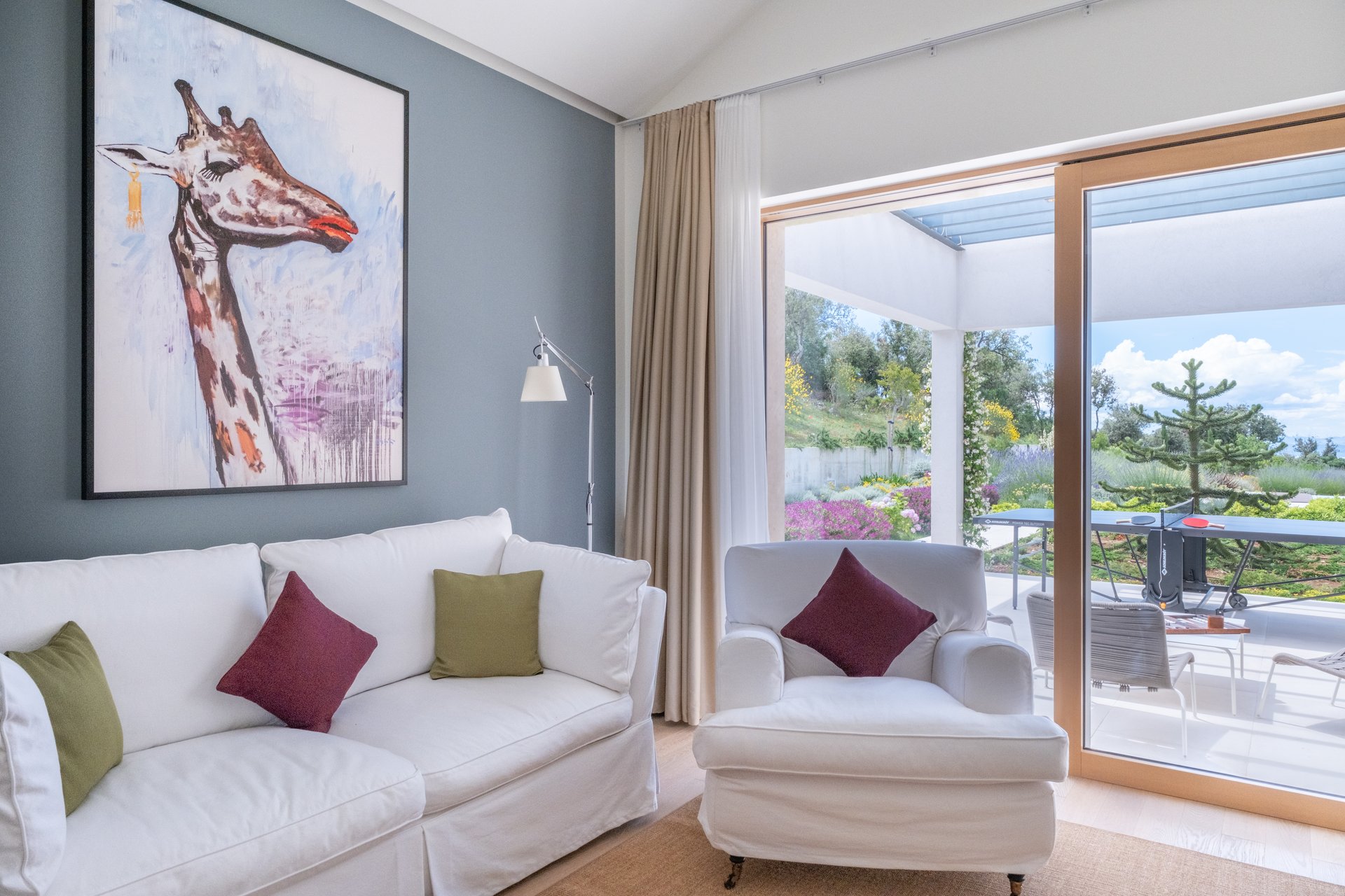 For a relaxing indoor feeling guests can enjoy a library that serves as a media room with a fireplace. On the lower ground floor, accessible by elevator or stairs, guests can enjoy wine tasting in their private Wine & Olive oil cellar of 25 sqm.