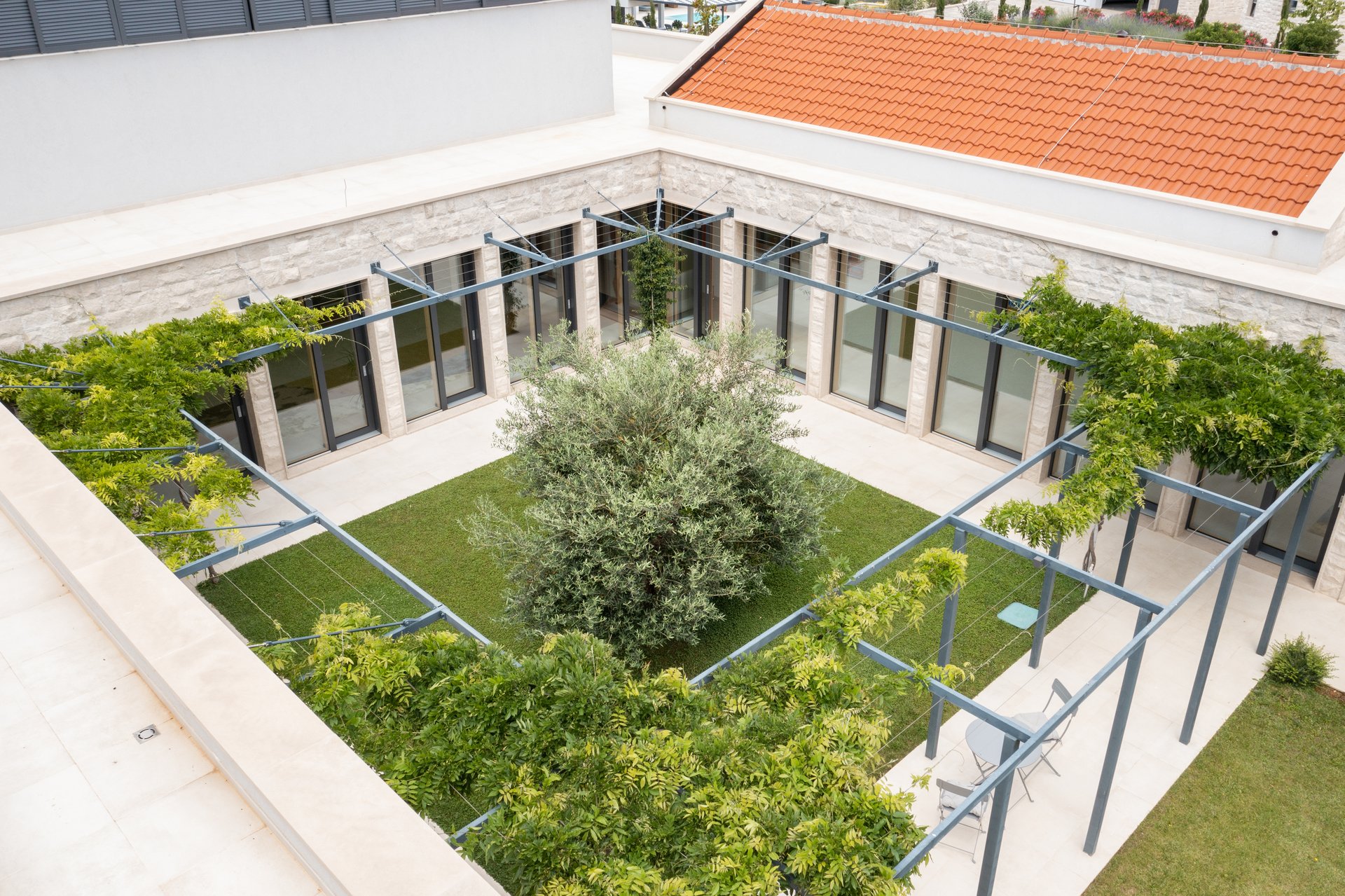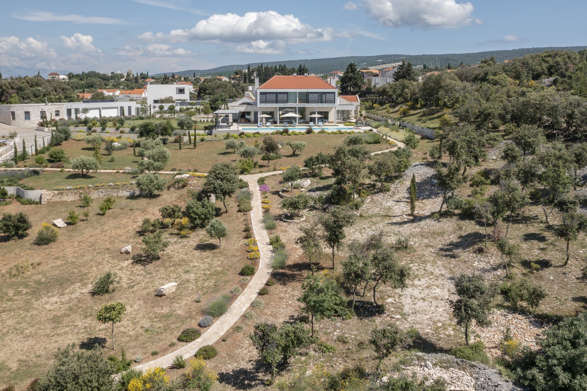 Located about 1,5 kilometers from the sea, the villa offers a coastal feel while at night, the entire lights of Split and mountains behind sparkle in the distance.