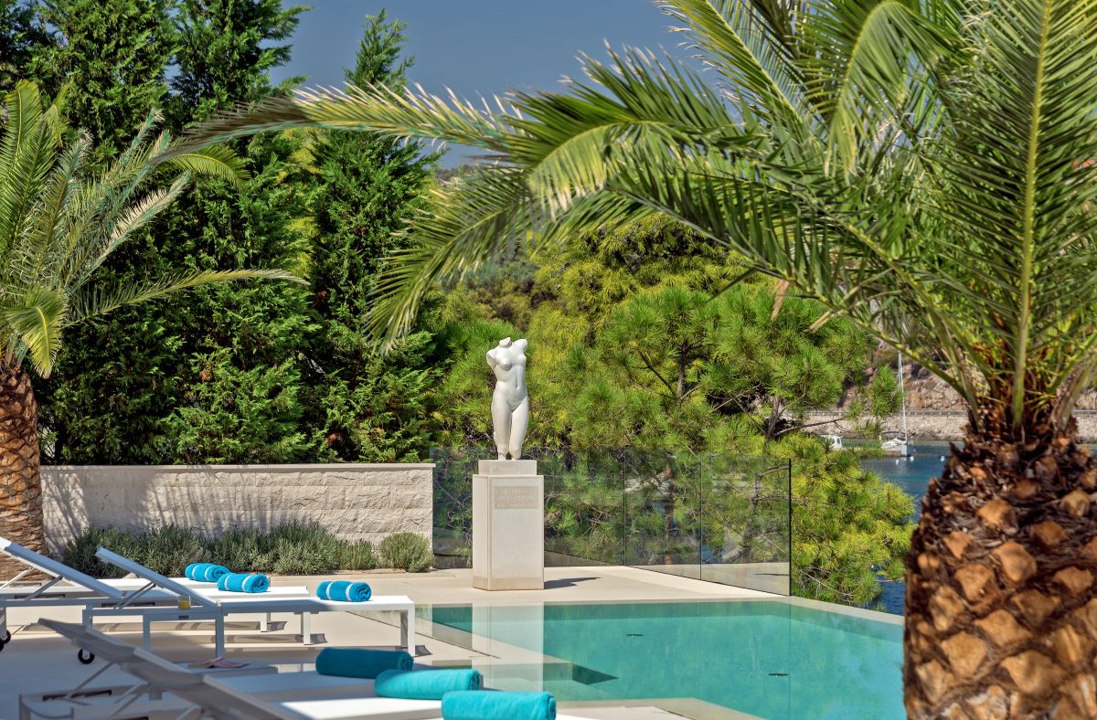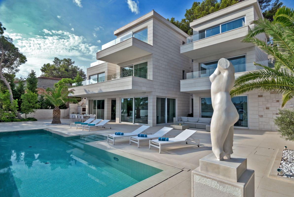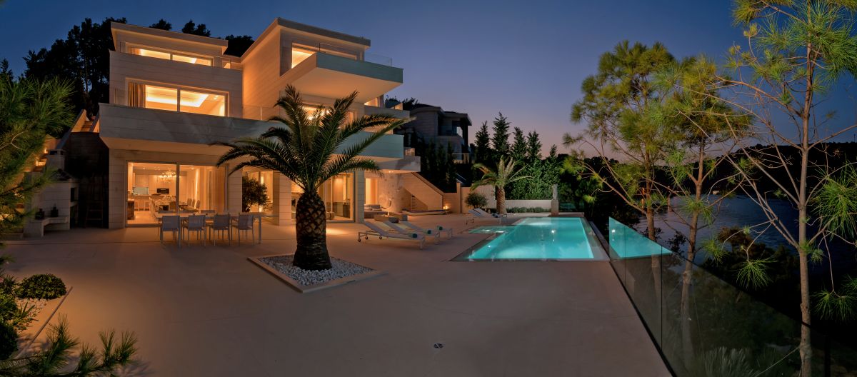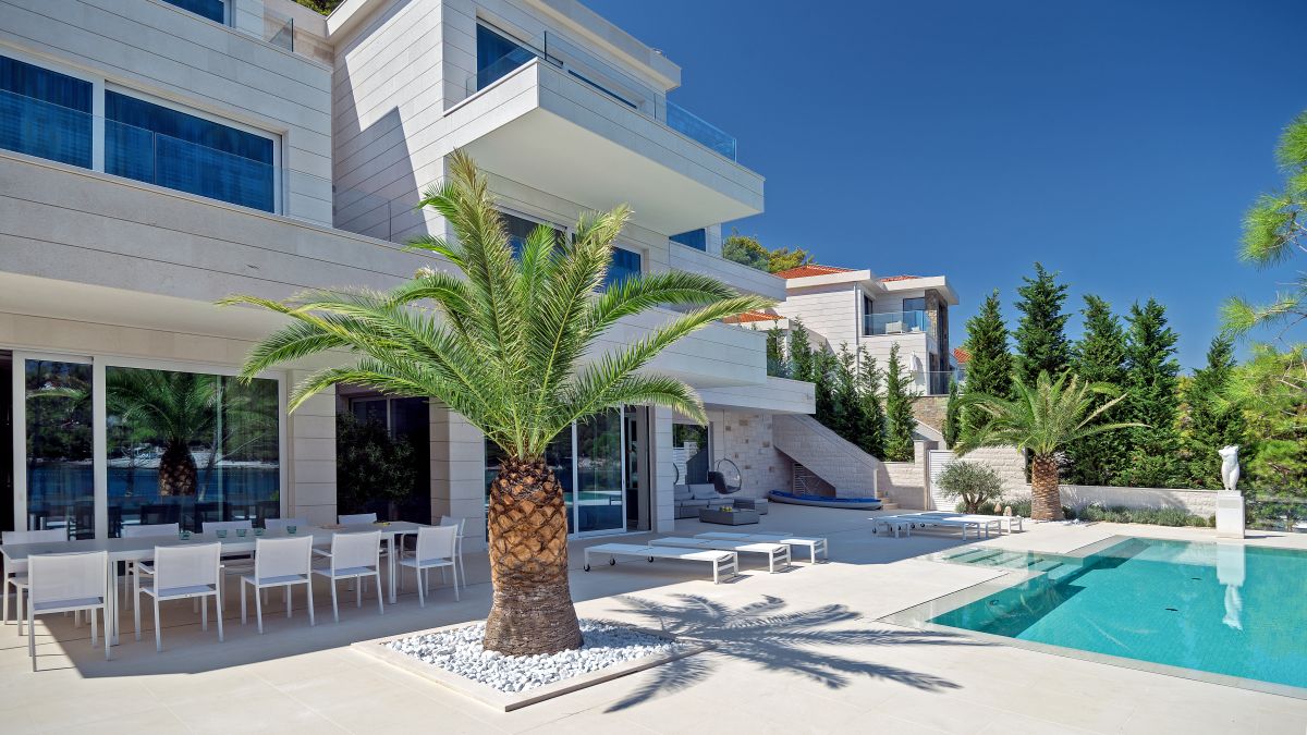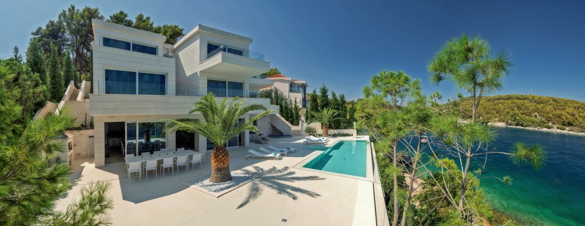 A landscape gardener created a very private atmosphere using mostly endemic plants. The villa is entirely built out of the famous white Brač stone and it is covered by a traditional old stone roof. It has a vast terrace of 350 square meters with an 11-meter-long infinity edge pool.