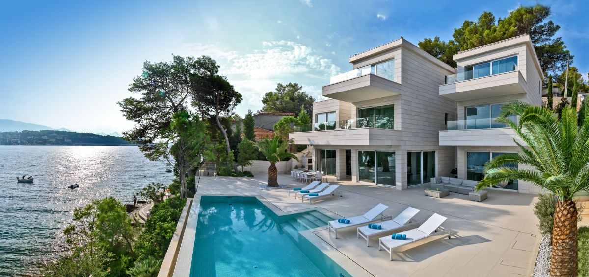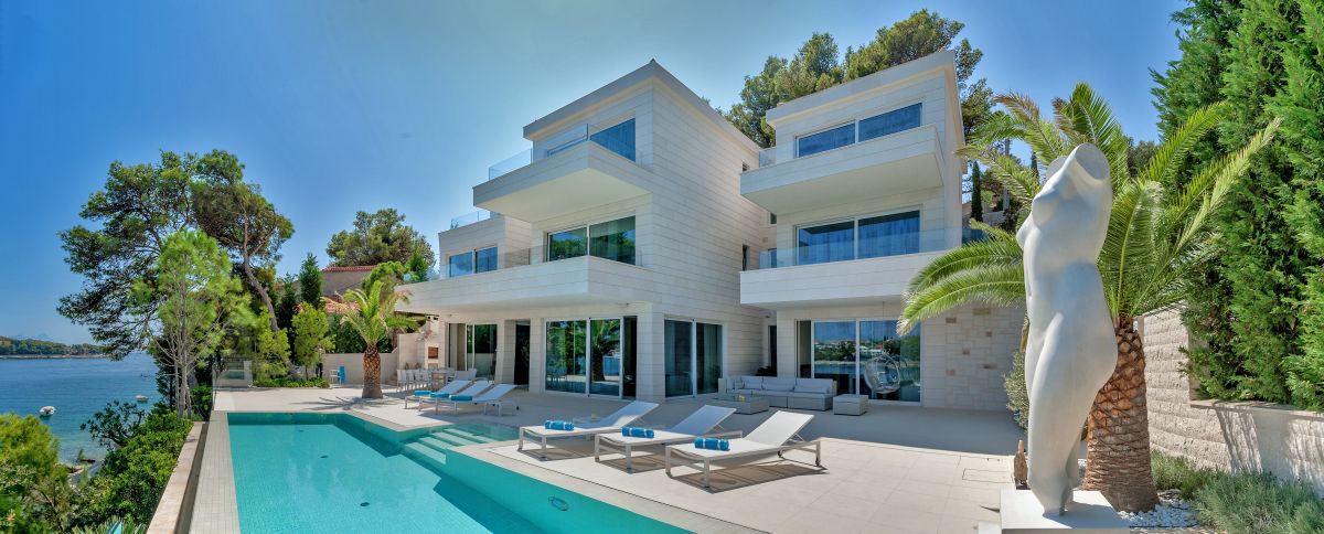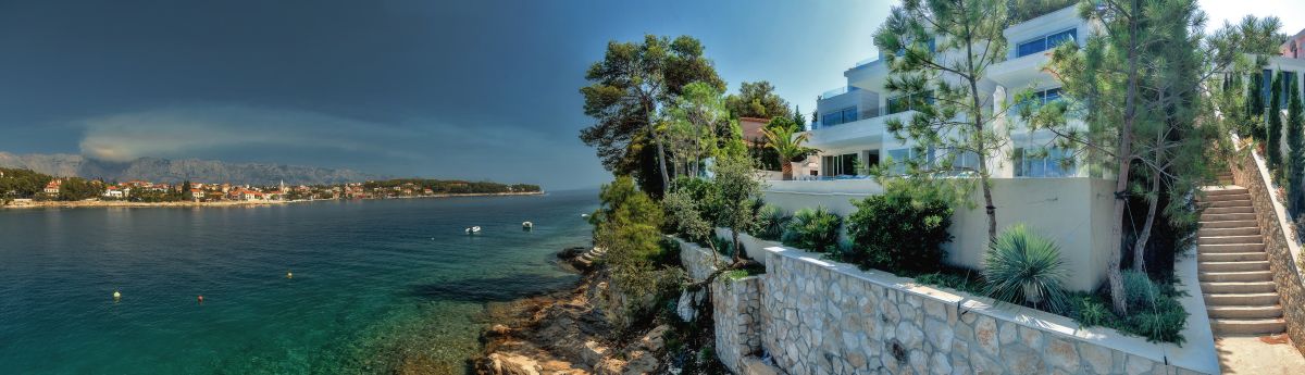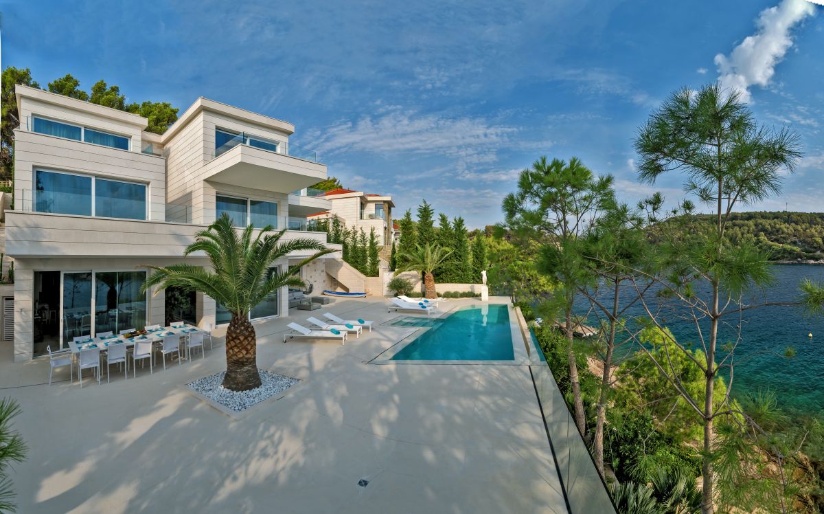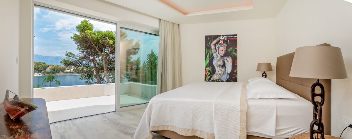 Villa Piedra is a newly built modern waterfront villa with a living area of 550 square meters. It is built on an 820 square meter plot, facing the stupendous scenery of the traditional fishing village of Sumartin. With Sumartin in front and Biokovo mountains in the background its view is priceless. With 6 bedrooms and 7 bathrooms, this 5-star villa can accommodate up to 12 guests. Amongst others the villa offers an infinity edge swimming pool, a gym room, a sauna and a floating dock with moorings. The villa is also equipped with an elevator (Thyssen Krupp) and has one bedroom which specifically fits for disabled people.