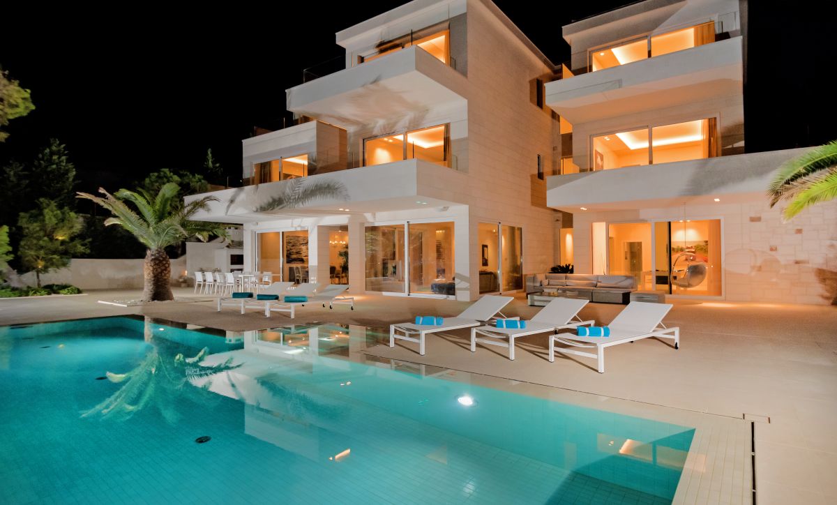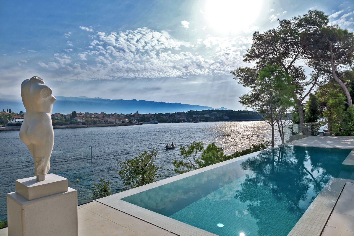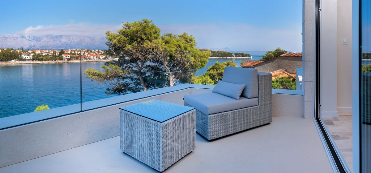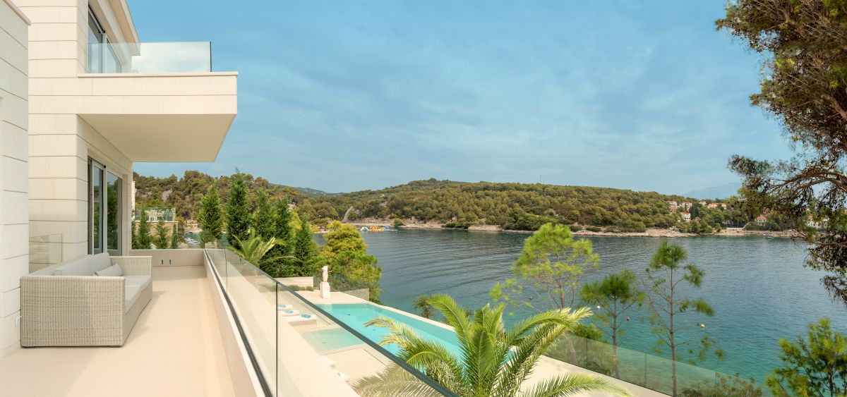 Villa Piedra is a newly built modern waterfront villa with a living area of 550 square meters. It is built on an 820 square meter plot, facing the stupendous scenery of the traditional fishing village of Sumartin. With Sumartin in front and Biokovo mountains in the background its view is priceless. With 6 bedrooms and 7 bathrooms, this 5-star villa can accommodate up to 12 guests. Amongst others the villa offers an infinity edge swimming pool, a gym room, a sauna and a floating dock with moorings. The villa is also equipped with an elevator (Thyssen Krupp) and has one bedroom which specifically fits for disabled people.