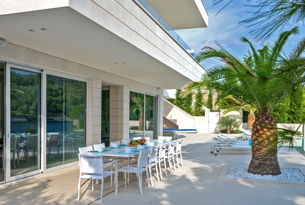 The layout is perfect for families or large groups. Designed with great attention to detail by a Croatian architect, Villa Piedra combines local materials, like the famous Brač stone and top-quality furniture from all over the world in order to create a nice ambience for its guests. The generous use of glass and sliding window doors ensure the breath-taking sea view is preserved in every room.
