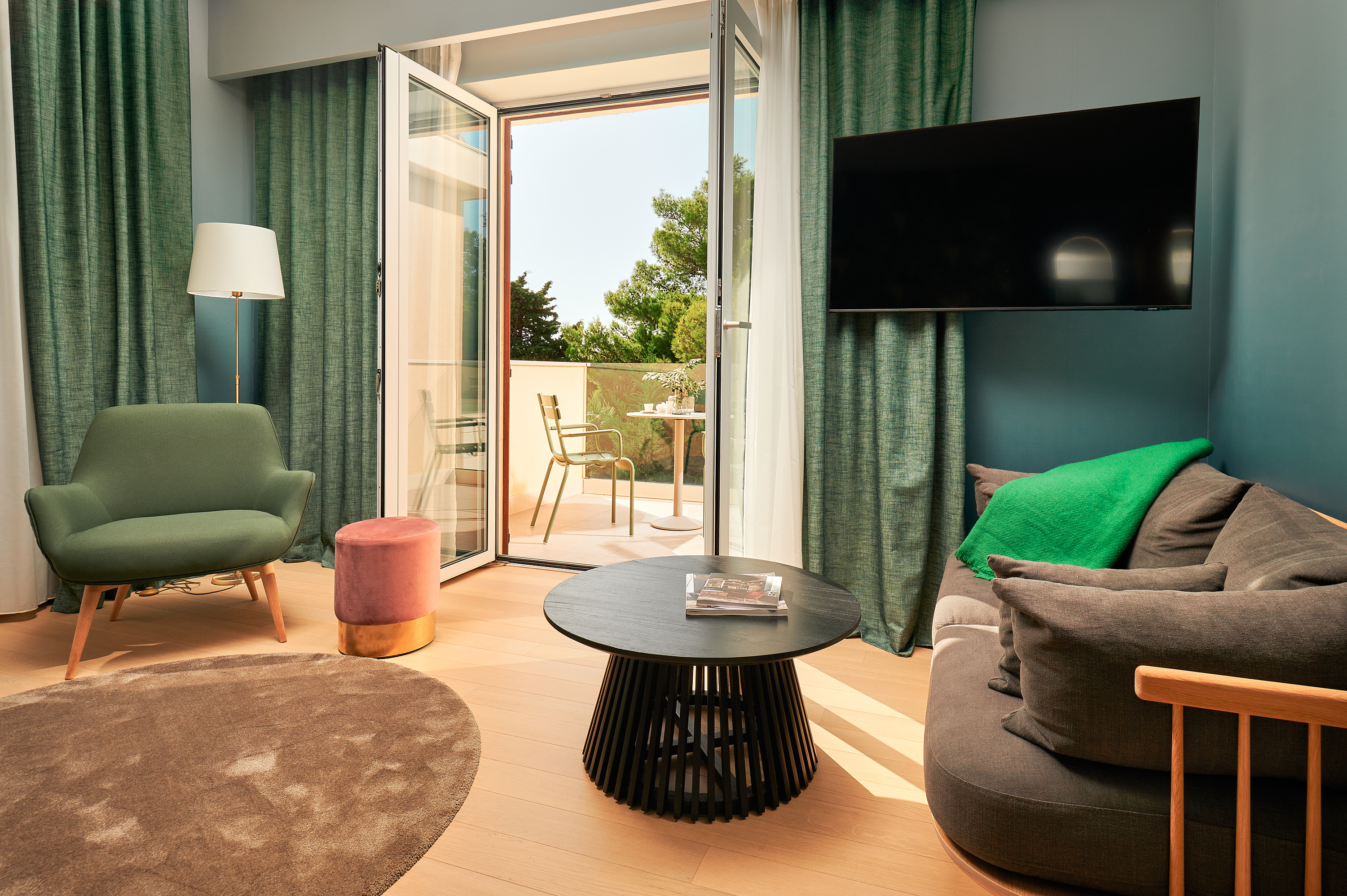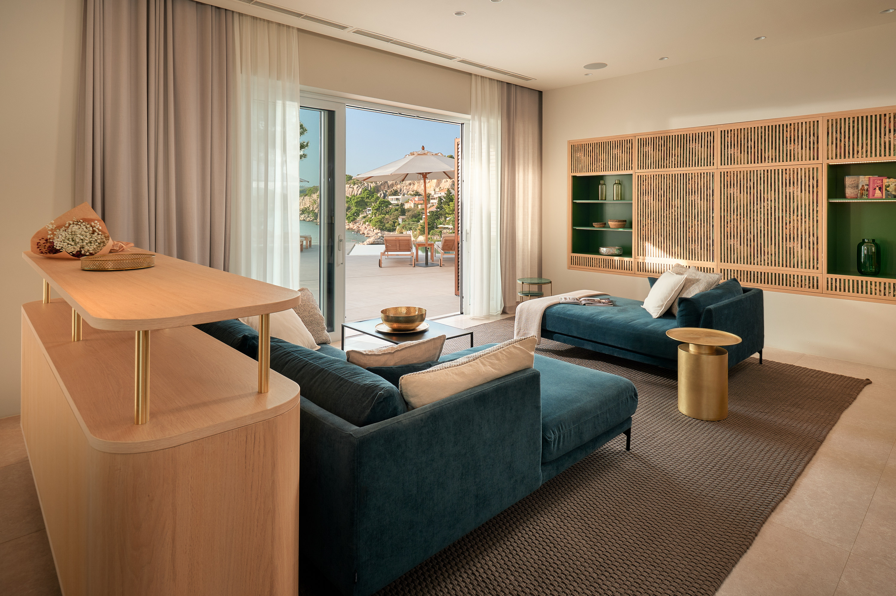 Villa Stella, located to the west, occupies an elevated position overlooking the picturesque beach of Hvar. It combines the high standard and comfort of a villa with the services of a five-star hotel. This elegantly furnished villa comes with an infinity pool and a garden with a panoramic view of the sparkling blue Adriatic Sea. From the carpet to the wallpaper, from the curtains to the designer furniture: the five bedrooms with coordinated floral motifs contain only the very highest quality and most carefully selected interior decoration over two floors. The ground floor of the holiday home in southern Dalmatia accommodating 10 people has a spacious living and dining area, a professionally equipped kitchen as well as a guest restroom and a bedroom with ensuite bathroom. The remaining four bedrooms are on the first floor, each with ensuite bathroom and a balcony with a view of the breath taking southern Dalmatian coast.