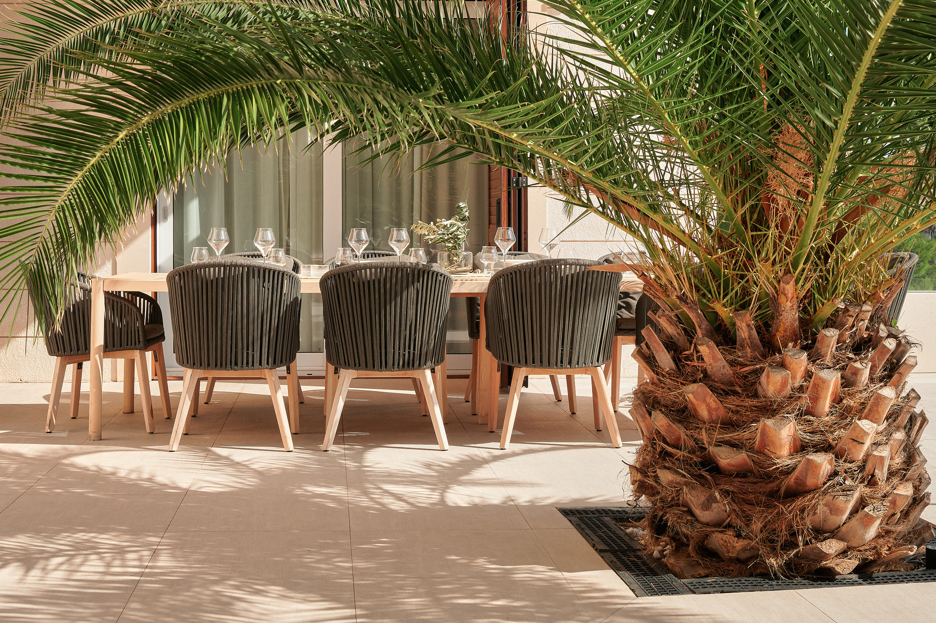 The outdoor area is equipped with sun loungers and parasols, an outdoor shower and an open-air gym. The outdoor lounge is the perfect spot to soak up the sun with a refreshing cocktail as you gaze out over the glittering, vast blue sea. You also have the option to hire a butler serve and pamper you. Last but not least: the rental villa has three private parking spaces.