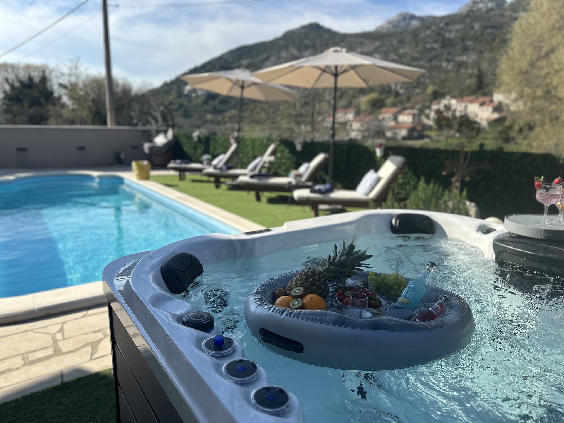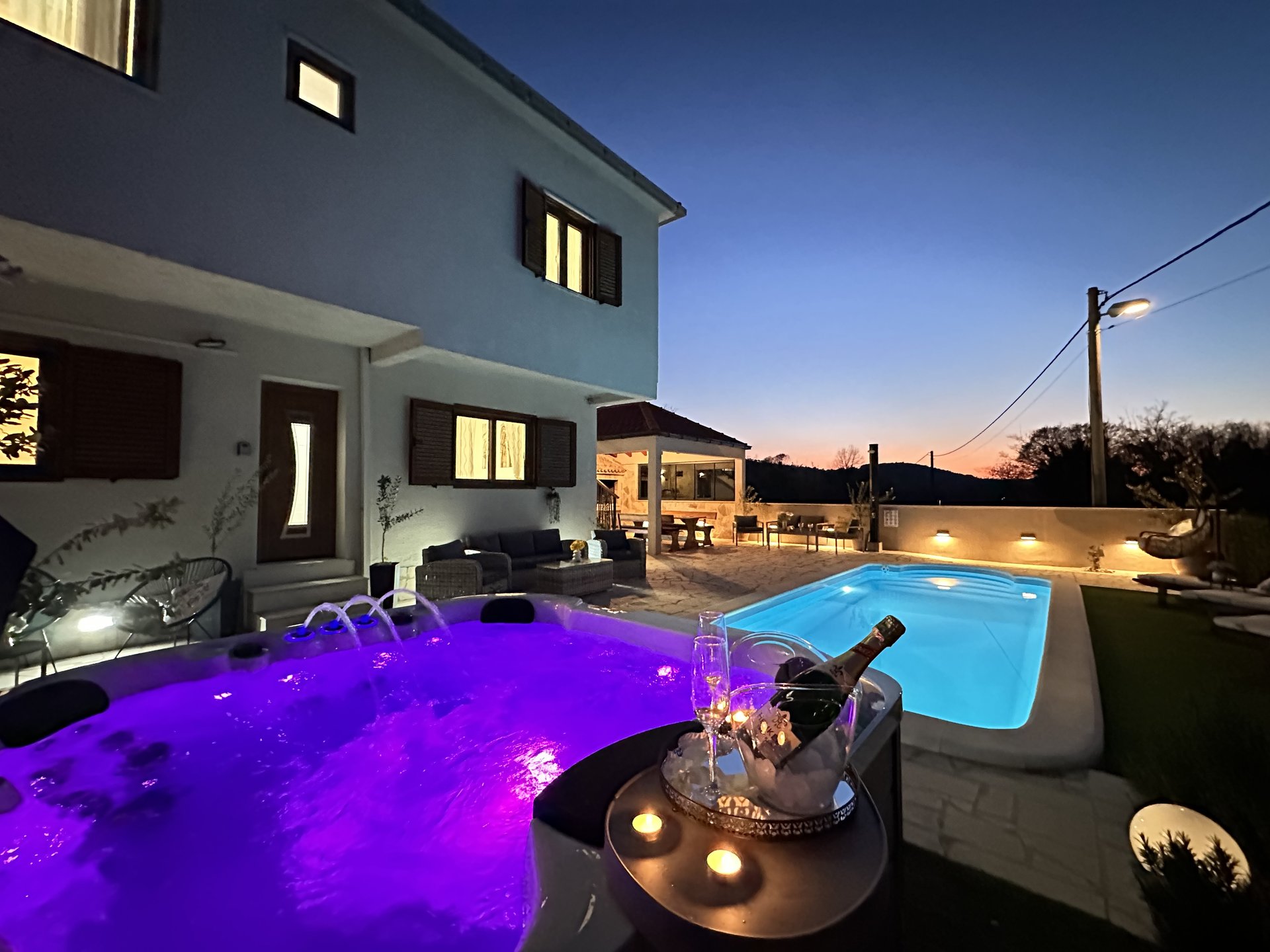 Relax and unwind in your private sauna, swimming pool, or jacuzzi, or enjoy the outdoors in the lounge area and on the terrace with BBQ – ideal for summer evenings.
